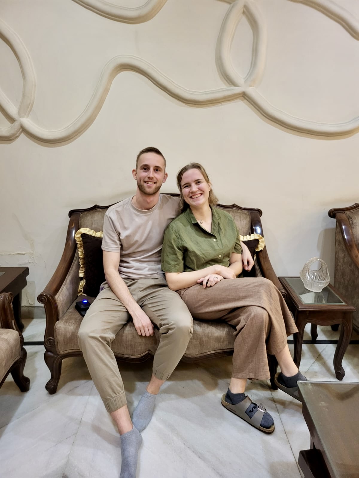 Der Flug von München über Jeddah nach Delhi verlief ohne große Schwierigkeiten. Für mich (Jessi) war es der erste Langstreckenflug überhaupt, und ich war sehr von den doch recht komfortablen Sitzen überrascht. Mit Kissen, Decke, Schlafmaske und Ohrenstöpseln stand meinem Schlafen nicht mehr viel im Weg – außer dem Film Dune 2, den ich auf dem Bildschirm anschaute und der allein fast drei Stunden des fünfstündigen Fluges einnahm.