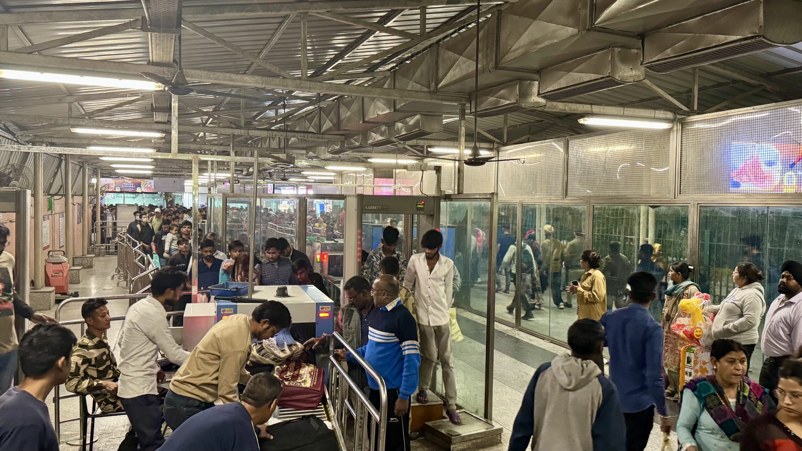Die Bahnen waren sehr voll, und Sascha und ich waren die einzigen Europäer in der gesamten Bahn. Die auffallenden Blicke der umstehenden Leute sind doch recht ungewohnt und man fühlt sich wie eine kleine Berühmtheit – teilweise ist das doch recht unangenehm. Das sollte sich auch in den nächsten Tagen nicht ändern. Mindestens zwei indische Männer waren sichtlich fasziniert von der Länge meiner Beine und diskutierten angeregt darüber, wo sie wohl anfangen und aufhören. Allgemein ist Sascha hier ein „großes“ Highlight, da er mit seinen 1,90 m fast alle Inder überragt und sich regelmäßig den Kopf in der Metro anschlagen würde, wenn er sich nicht duckt. 😄