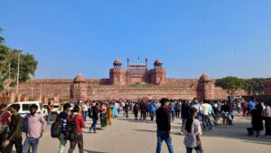 Das Red Fort hat nur einen sehr schmalen Eingang, der vom indischen Militär überwacht wird. Als die Security auf uns aufmerksam wurde, wurden wir direkt an der langen Schlange von Einheimischen vorbeigeführt und zum Kassenwart gebracht. Der Eintritt kostet für Einheimische ca. 35 Rupien (ca. 0,40 €) und für Ausländer 550 Rupien (ca. 5,50 €).