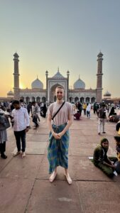 Indien ist zwar überwiegend (ca. 80%) hinduistisch geprägt, doch es gibt auch eine große muslimische Gemeinde (ca. 13% der Bevölkerung). Um den nötigen Respekt zu zeigen, zogen wir unsere Socken und Schuhe aus. Ich erhielt einen Umhang, der meinen ganzen Körper bedeckte, und Sascha bekam ein Tuch, um seine nackten Beine zu verdecken.