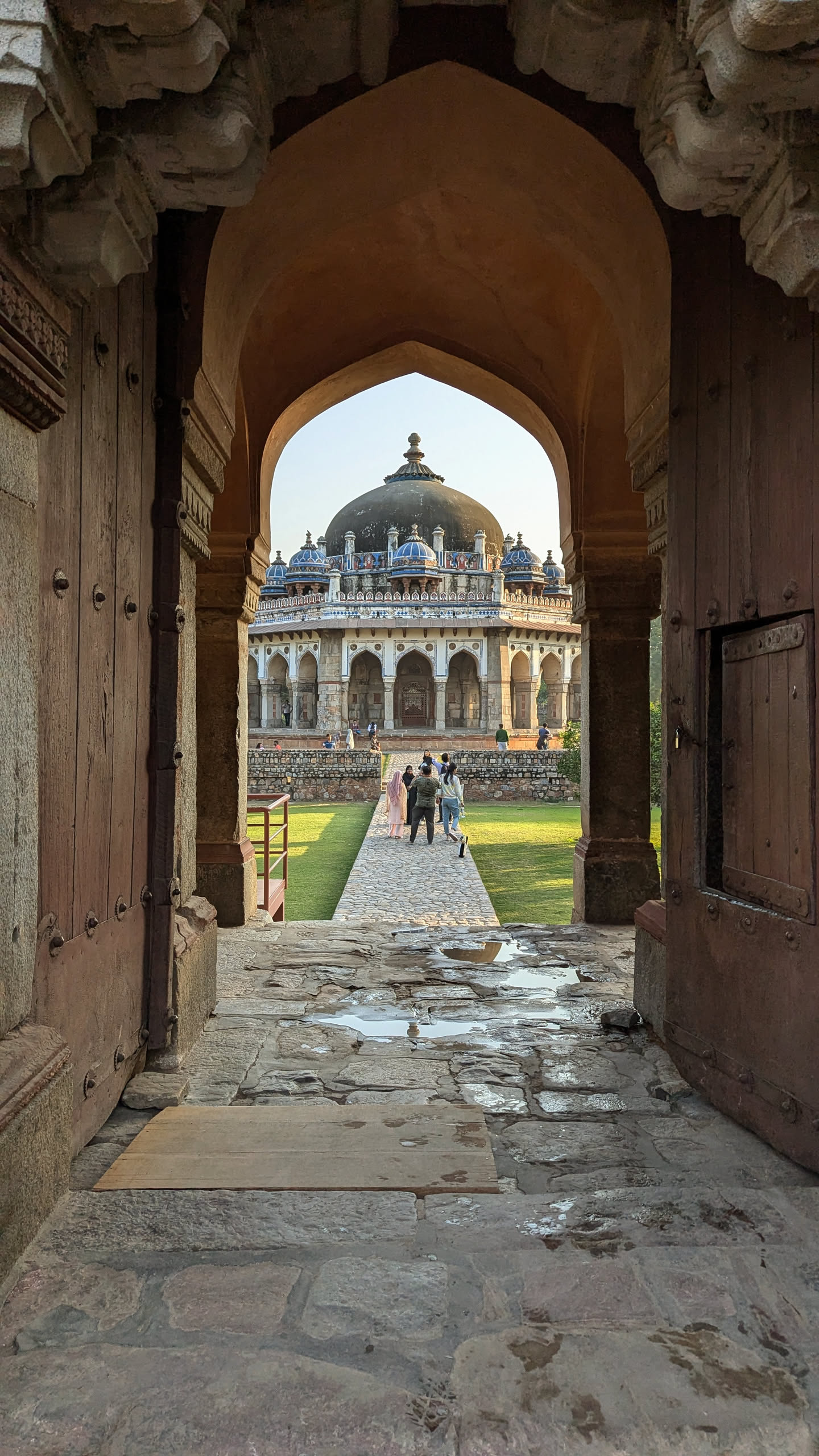 Knapp einen Kilometer entfernt (den wir entspannt zu Fuß zurücklegten) liegen die Lodi-Gärten. Die 360.000 m² große Parkanlage hat mehrere Mausoleen auf der Fläche verteilt und scheint ein beliebter Ort für die Einheimischen zu sein. Der Garten war mäßig gut besucht zu der uns aufgesuchten Uhrzeit, und wir liefen einfach mal querfeldein drauf los – mal gucken, wo wir am Ende rauskommen würden. Dabei entdeckten wir ein paar der weit über 100 größeren Grabbauten von Herrscherpersönlichkeiten, deren Familienangehörigen sowie von höheren Staatsbeamten und Militärs, die bis heute für das Stadtbild prägend sind. Die Gebäude wirken immer noch sehr imposant, obwohl wir auch hier sagen müssen, je weiter du abseits der großen Mausoleen läufst, desto weniger wird hier instandgehalten. In unseren Augen ist das doch sehr schade.