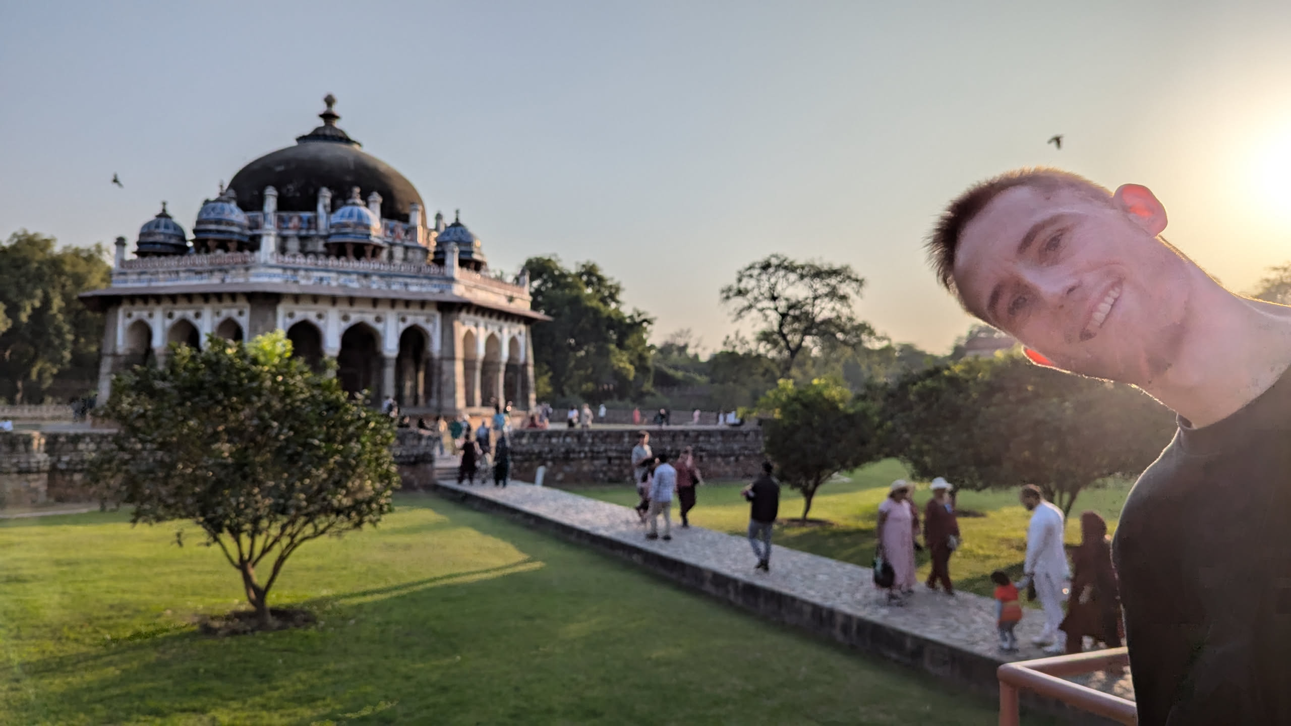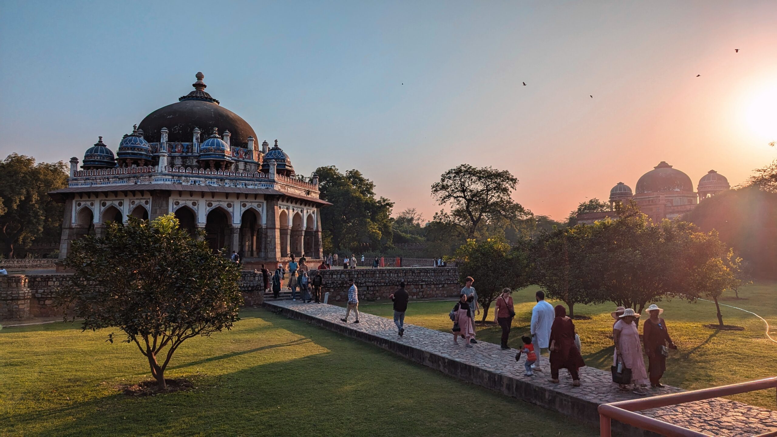 Danach ging es weiter in Richtung „Safdarjung Tomb“. Hier verabschiedete sich Shiva von uns, und wir genossen den wunderschönen Sonnenuntergang über dem Mausoleum. Überraschenderweise war hier wirklich wenig los. Wir durchquerten die Grünfläche hinter den Mauern und machten viele schöne Fotos im tollen Licht, das sich abends über Delhi legt.