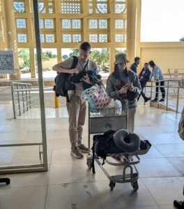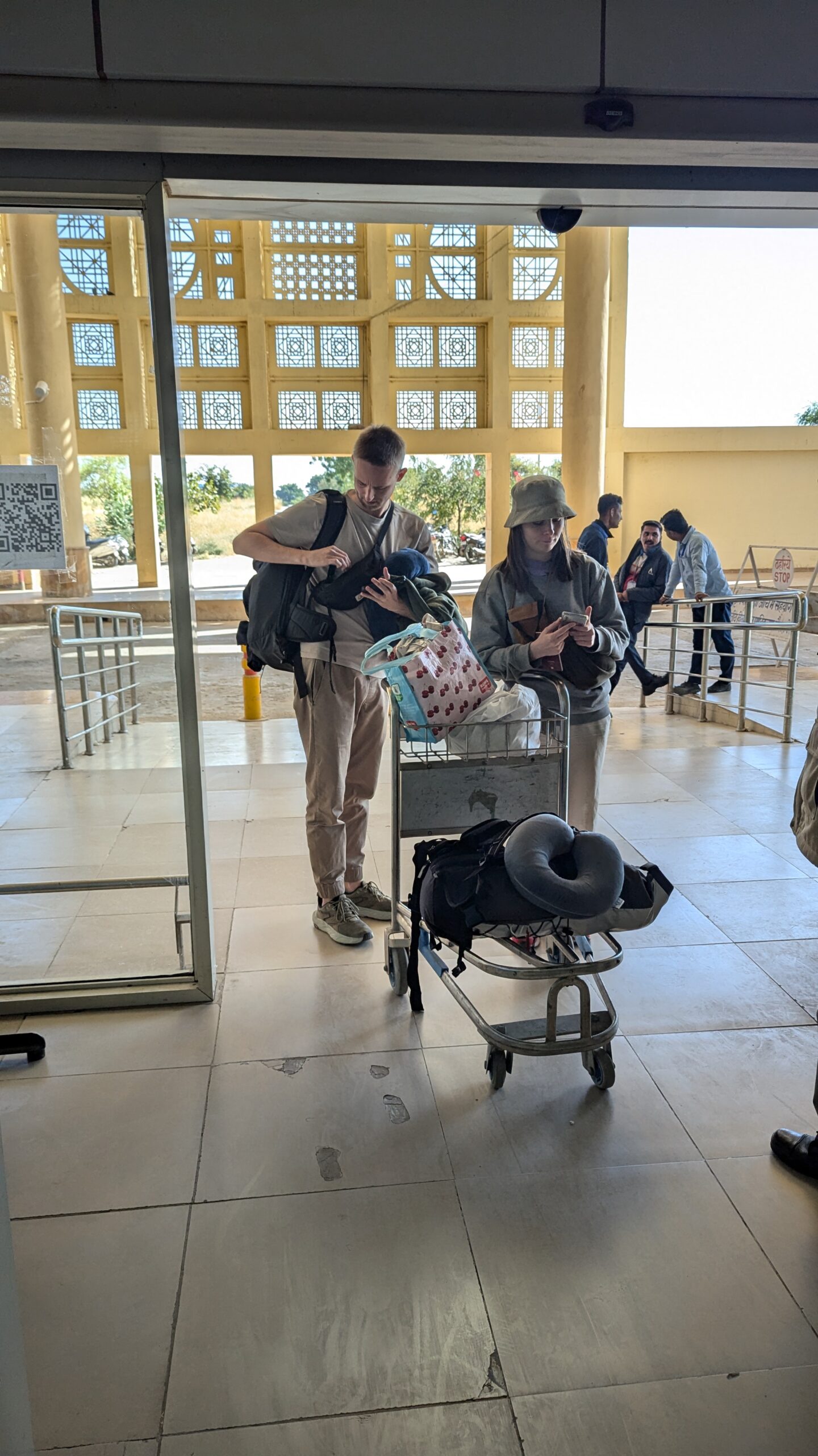 Wir verabschiedeten uns von Ashish und fuhren mit Carmen zusammen ca. 25 Minuten im TukTuk zum sehr kleinen Flughafen in Jaisalmer, wo wir etwa fünfmal auf Pass und Boardingpass kontrolliert wurden. Von hier gehen am Tag exakt zwei Flüge: einer nach Mumbai und einer nach Delhi. Ansonsten wird der Flughafen rein militärisch genutzt, weshalb man dort auch keinerlei Fotos machen darf.