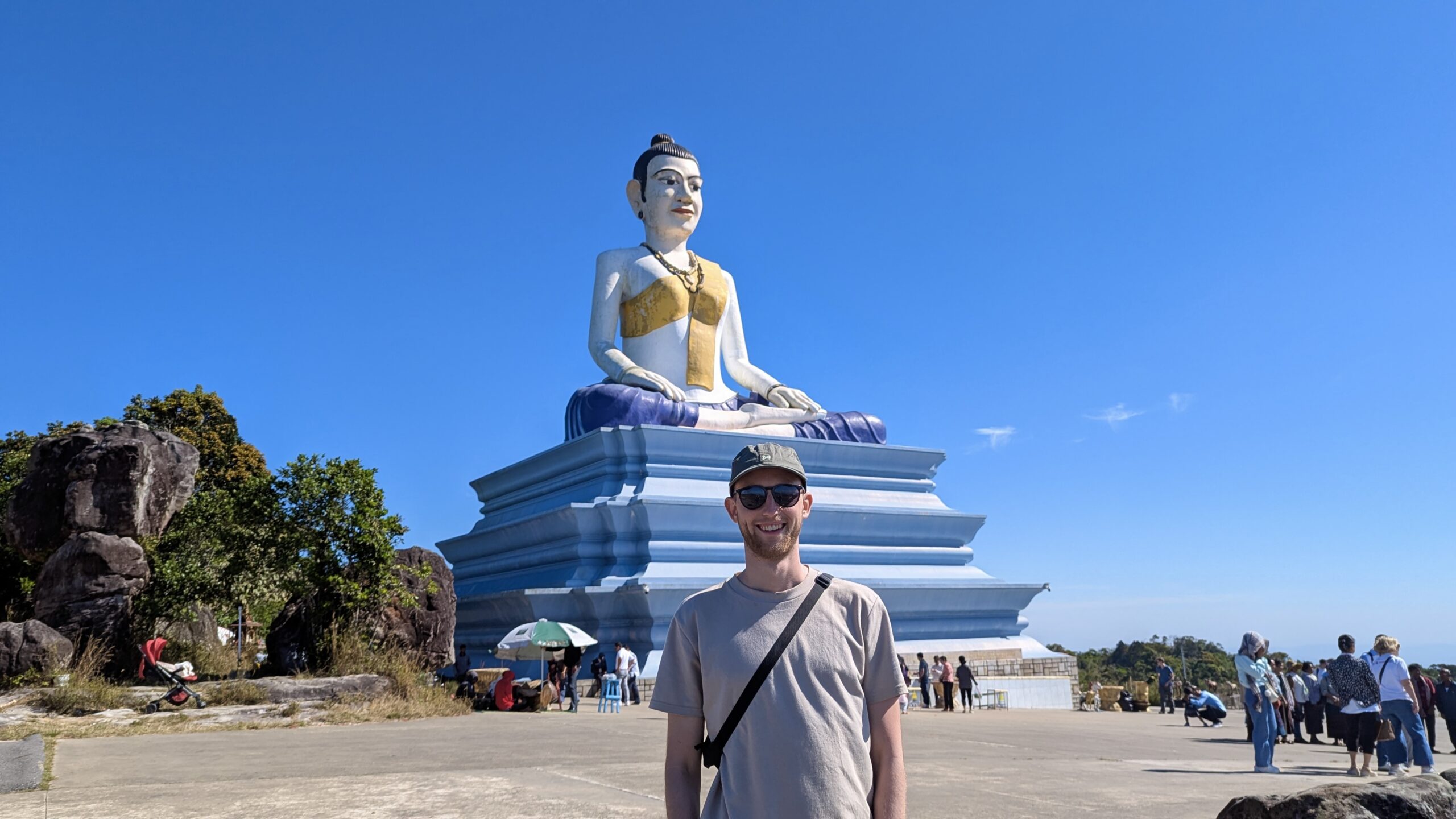Landschaftlich und von der Vegetation her war der Weg den Berg hinauf wirklich schön, und wir hatten zwischendurch herrliche Ausblicke auf Kep, Kampot und das Meer. Allerdings waren wir überrascht, wie viele Baustellen es in einem Nationalpark geben kann. Dazu kamen große Wohnkomplexe, Hotels und sogar ein Casino, die dort hochgezogen werden. Ah, die Chinesen … Es ist kaum zu glauben, wie viel Einfluss chinesische Investoren in diesem Land haben und wie sie ganze Siedlungen aus dem Boden stampfen – mitten im Nirgendwo, ohne bestehende Infrastruktur oder Ähnliches. Wir fanden das Ganze ziemlich befremdlich und bedauerten, dass so viel Vegetation dem Bau zum Opfer fiel.