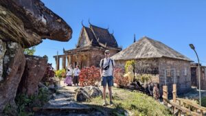 Trotzdem gab es hier auch eine alte Khmer-Siedlung mit einem Tempel zu besichtigen, was wir uns natürlich nicht entgehen ließen. Den Abschluss bildete eine alte katholische Kirche, die während der Kolonialzeit der Franzosen erbaut wurde. Seit deren Abzug in den 1950er Jahren verfällt die Kirche und wird nicht mehr genutzt.