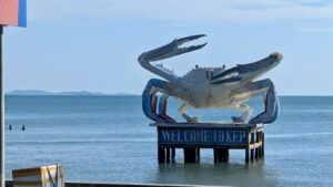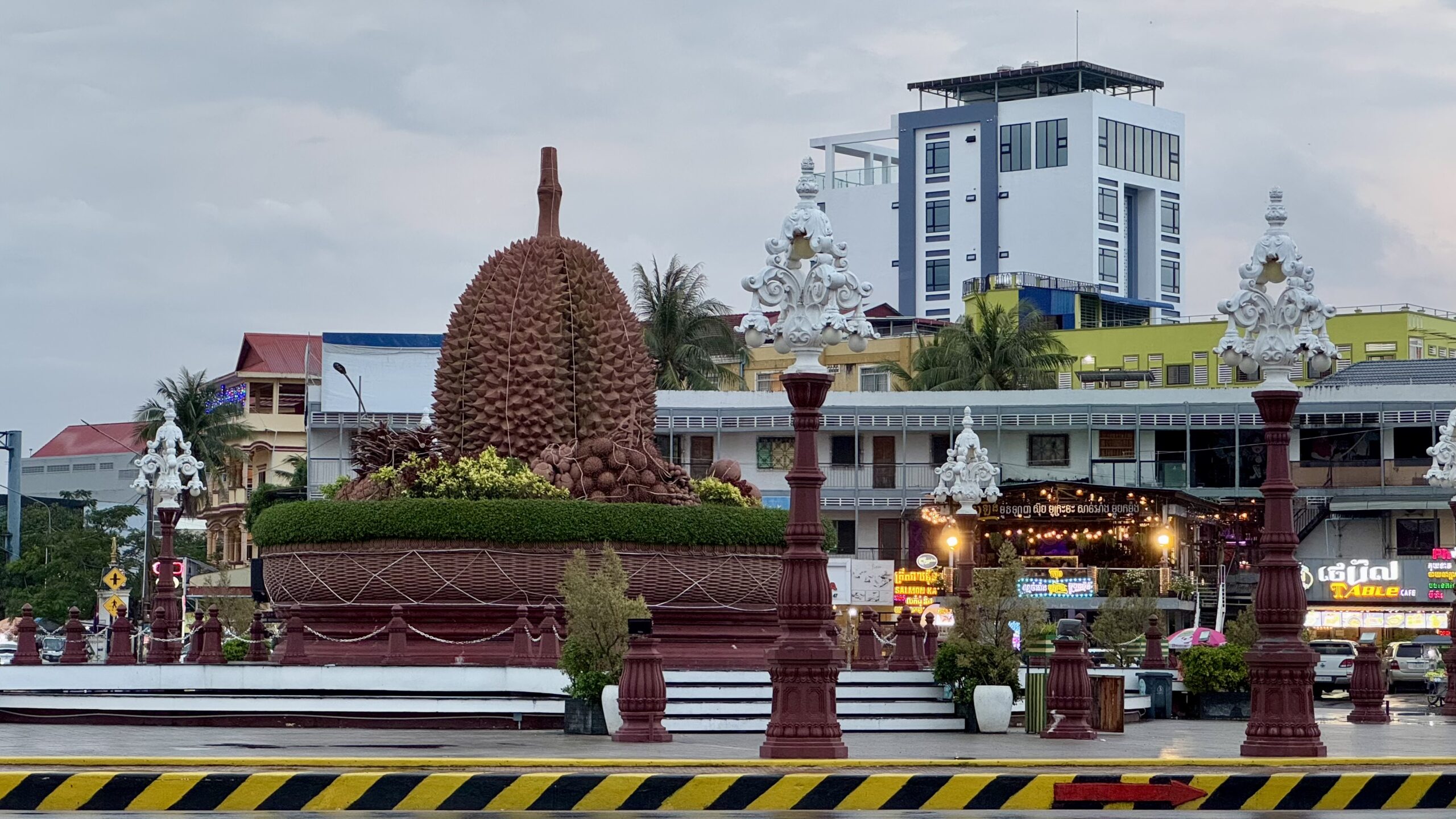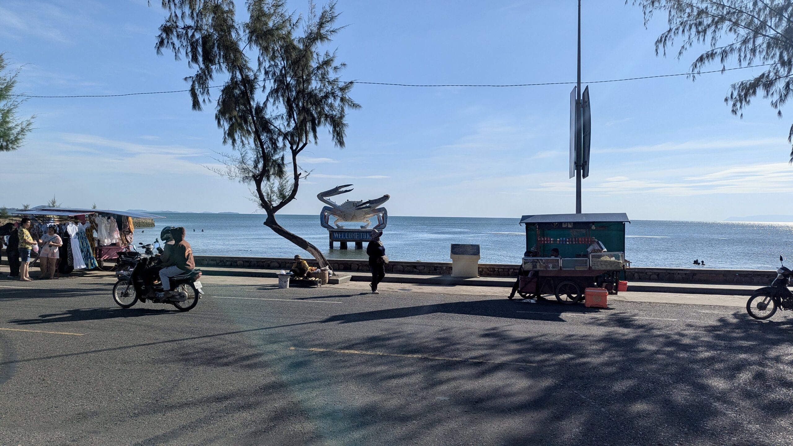 Anschließend machten wir uns auf den Rückweg und legten einen kurzen Stopp in der Stadt Kep ein, die für ihren Krabbenmarkt bekannt ist. Allerdings hielten wir nur, um die berühmte Statue zu fotografieren, bevor wir nach Kampot zurückkehrten.