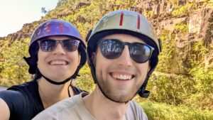 Am nächsten Morgen liehen wir uns im Hostel einen Roller. Zum Glück hatte Sascha bereits in Stuttgart erste Erfahrungen mit den Leihrollern der Stadt gesammelt und konnte daher sicher fahren. Ich schwang mich mutig als Beifahrerin hinten drauf, übernahm die Navigation per Google Maps und sorgte für ausreichend Fotos während der Fahrt.