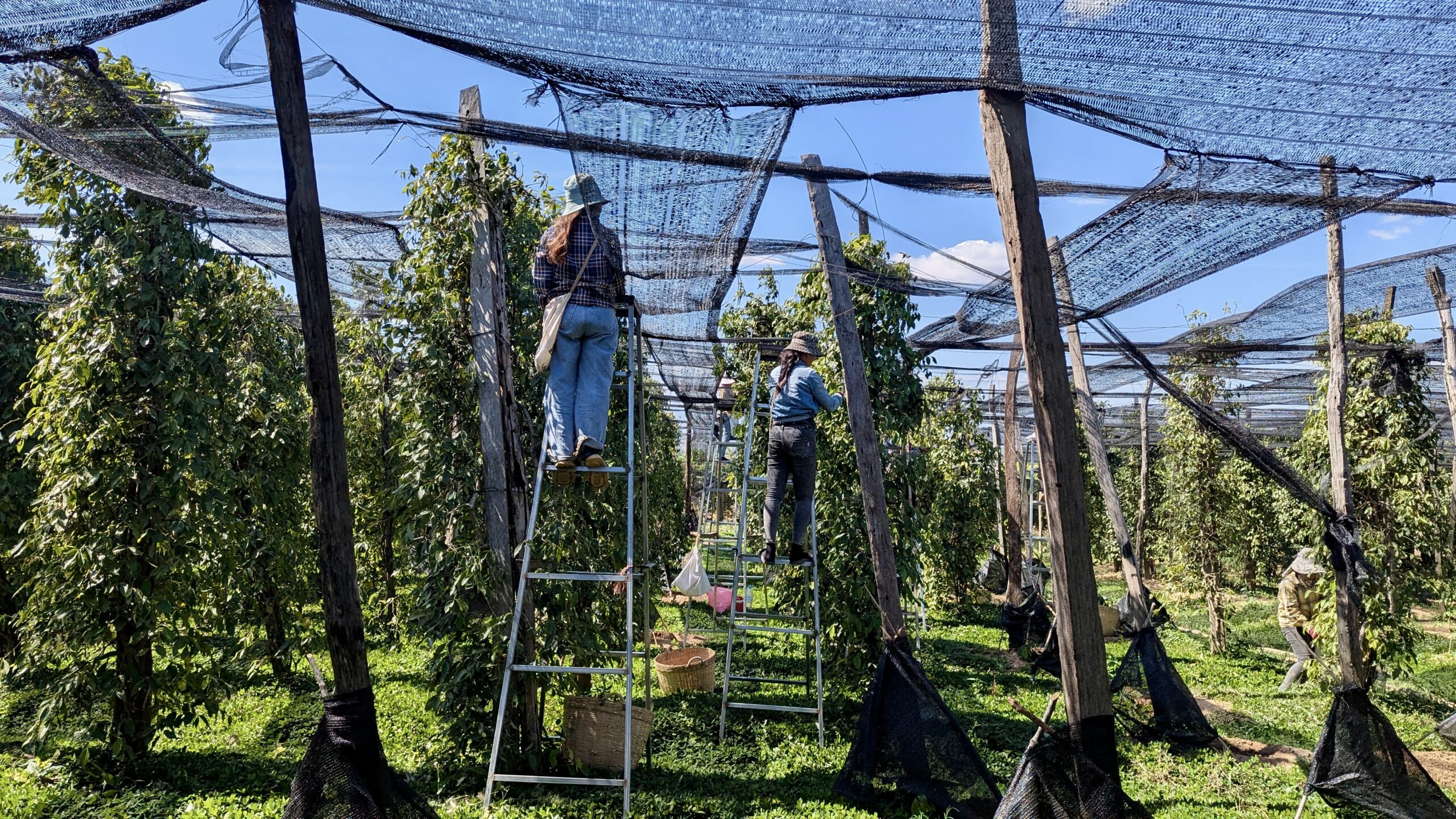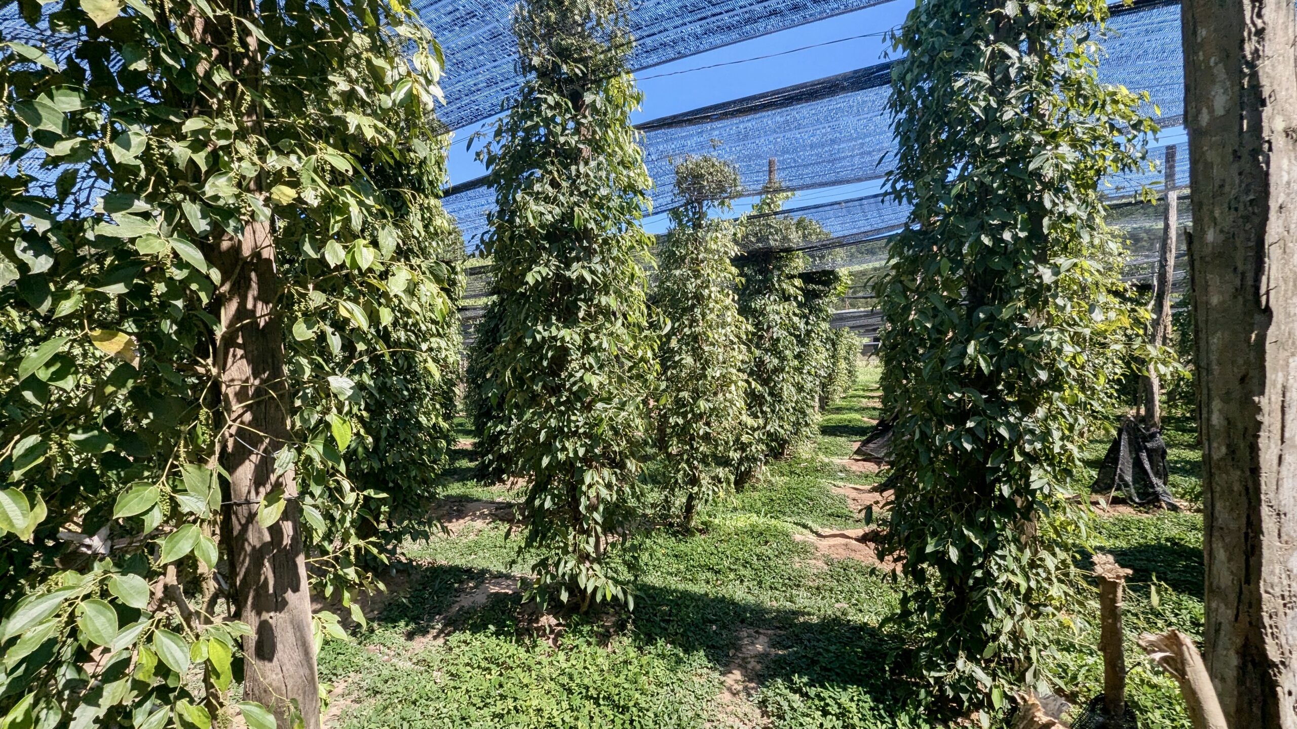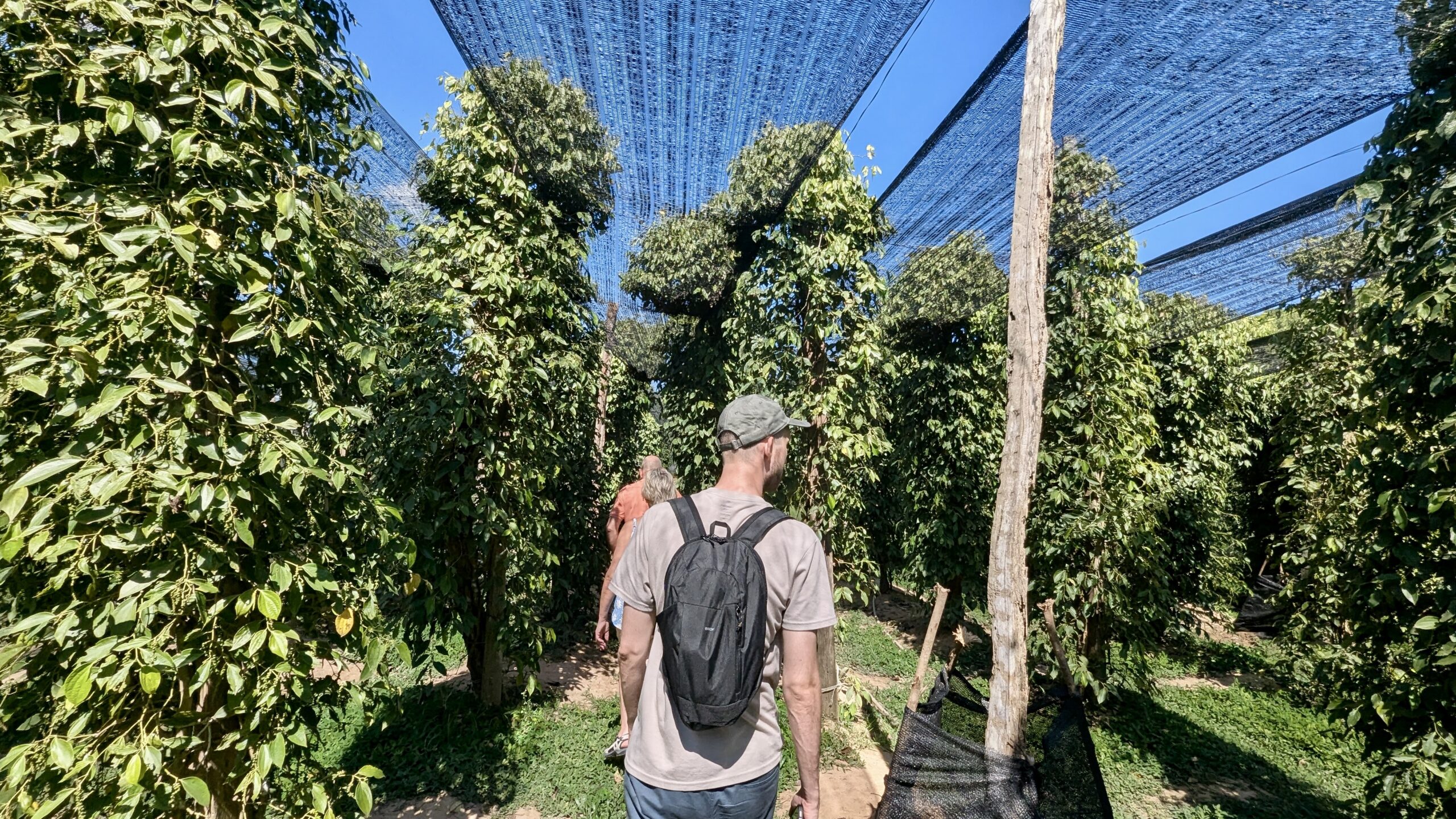 Wir nahmen an einer kostenlosen Führung über die Farm teil und konnten den Mitarbeitern bei der Ernte von grünem Pfeffer zuschauen. Ehrlich gesagt hatten wir uns vorher nie Gedanken darüber gemacht, wie Pfeffer eigentlich wächst oder geerntet wird – umso spannender war diese Erfahrung! Am Ende durften wir verschiedene Pfeffersorten verkosten. Allerdings müssen wir zugeben, dass wir in Deutschland bisher nie bewusst Pfeffer probiert haben, weshalb es uns schwerfiel, die feinen Unterschiede herauszuschmecken. Dennoch wissen wir jetzt, wie sich grüner, schwarzer, roter und weißer Pfeffer voneinander unterscheiden – toll, oder?