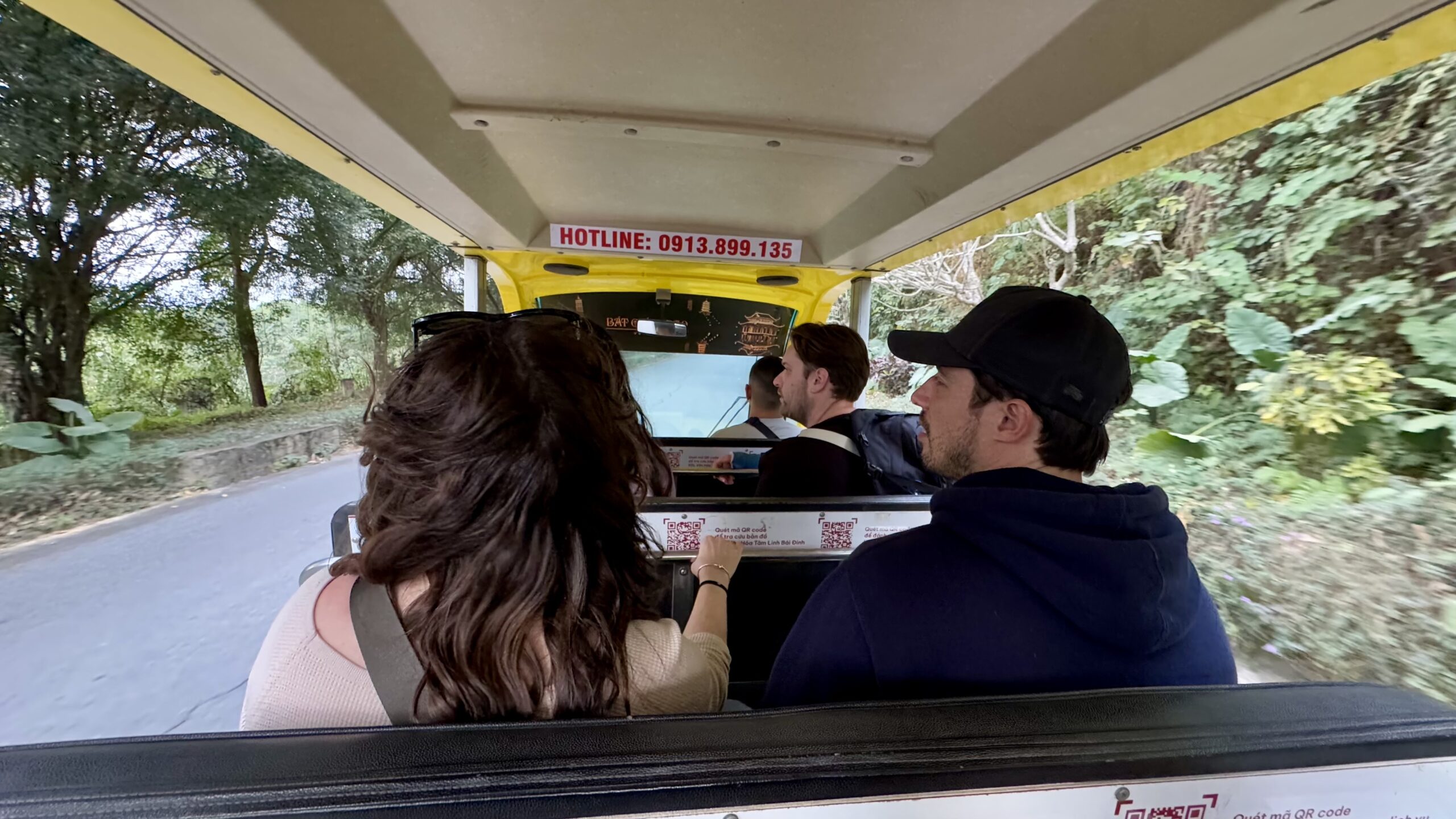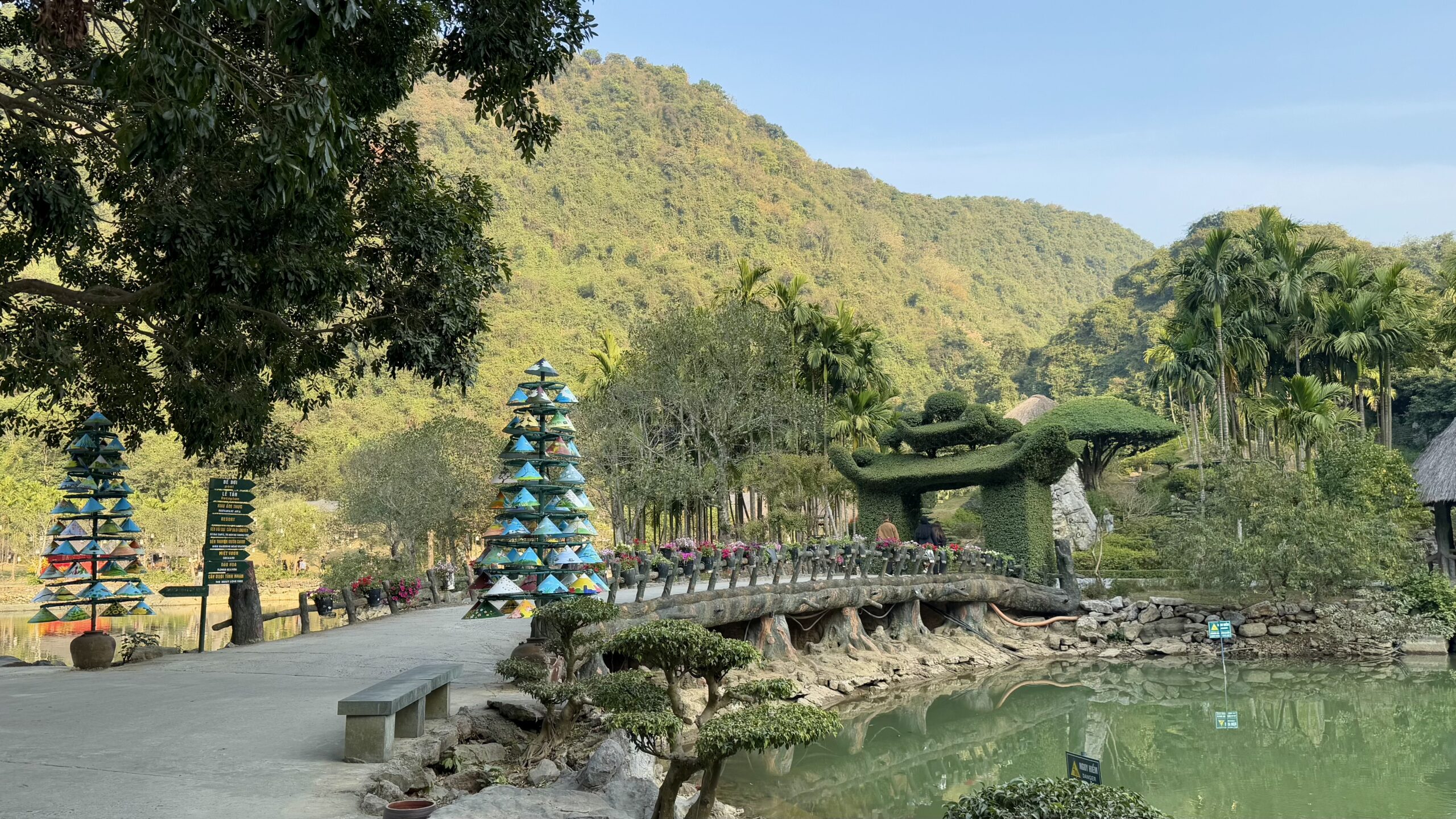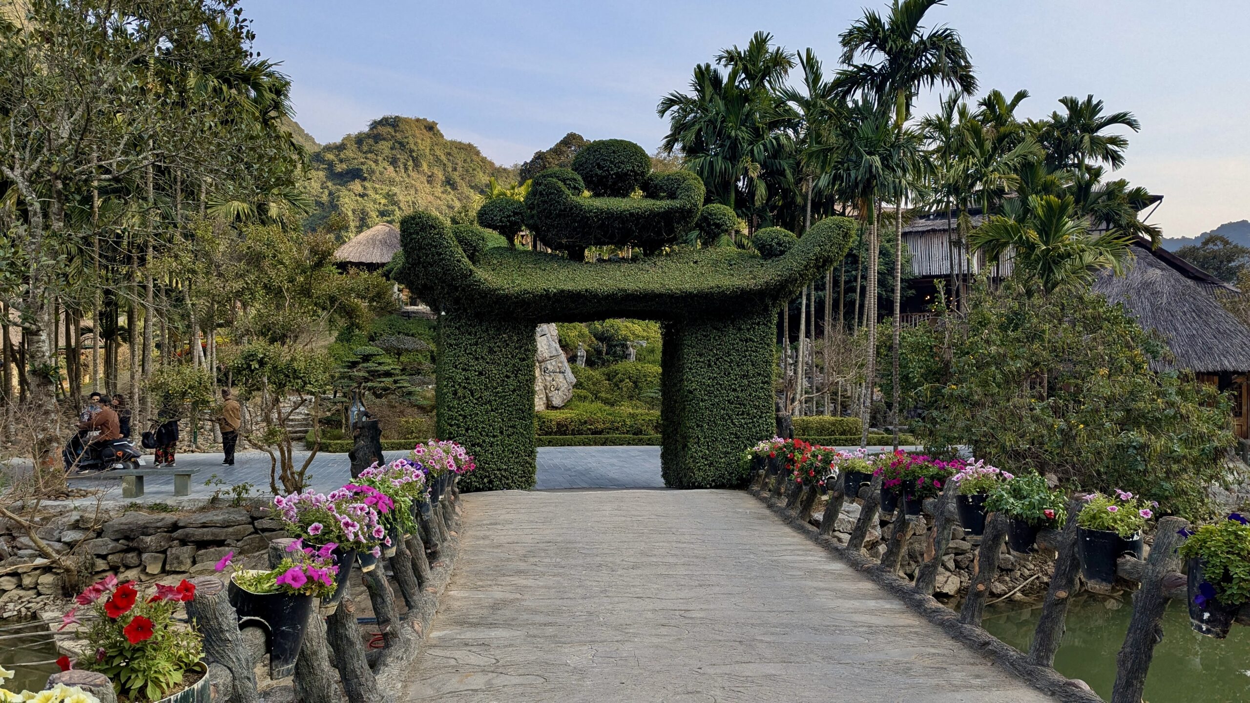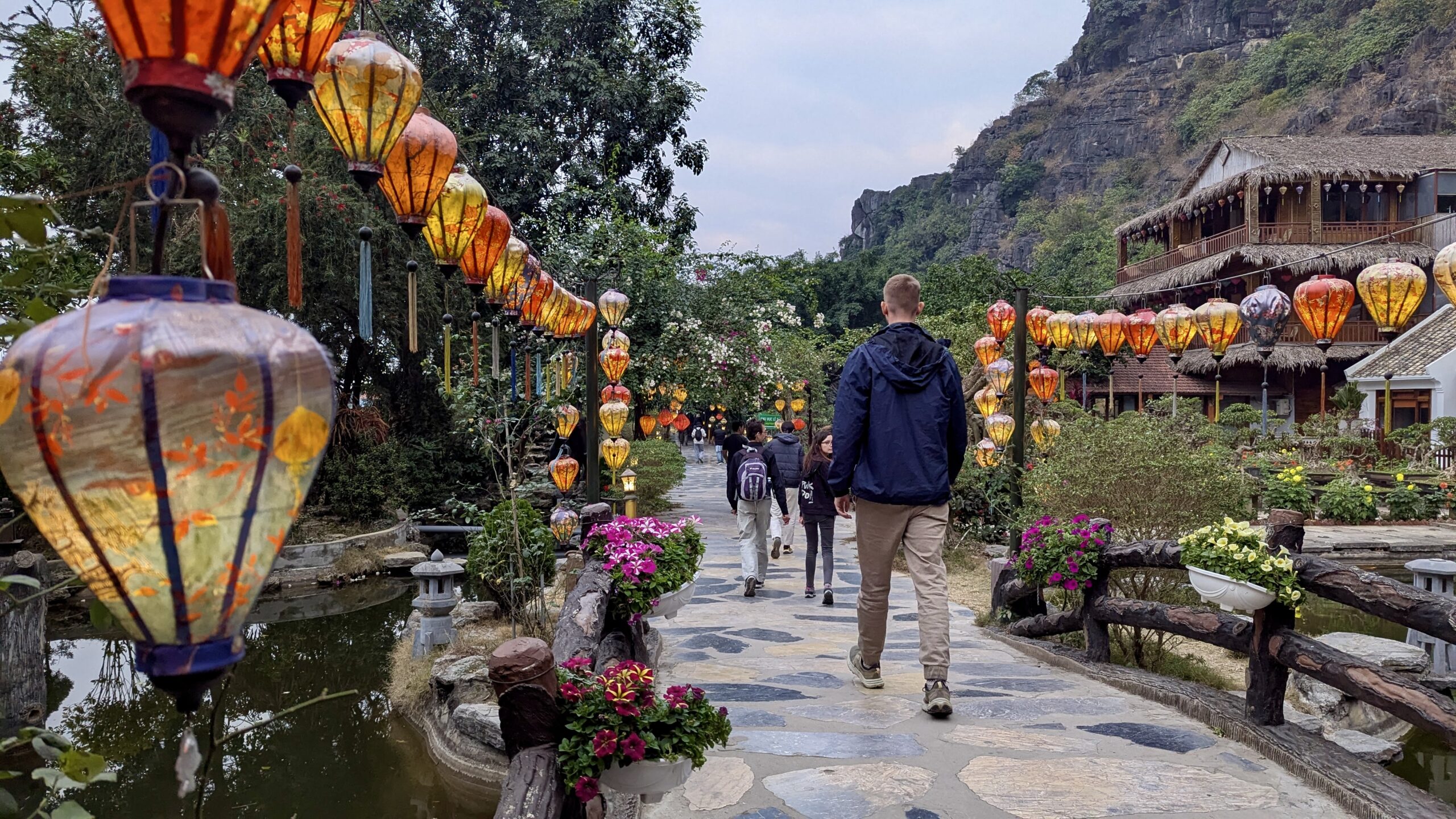 Vor der Halle unterhielten wir uns mit einem amerikanischen Pärchen in unserem Alter, Jordan und Patrice, die sich gerade Eintrittskarten für die sogenannte „Happy Tour“ gekauft hatten. Ohne lange nachzudenken, taten wir es ihnen gleich. Das Angebot versprach ein antikes vietnamesisches Dorf, dazu Tempel und eine wunderschöne Gartenanlage.