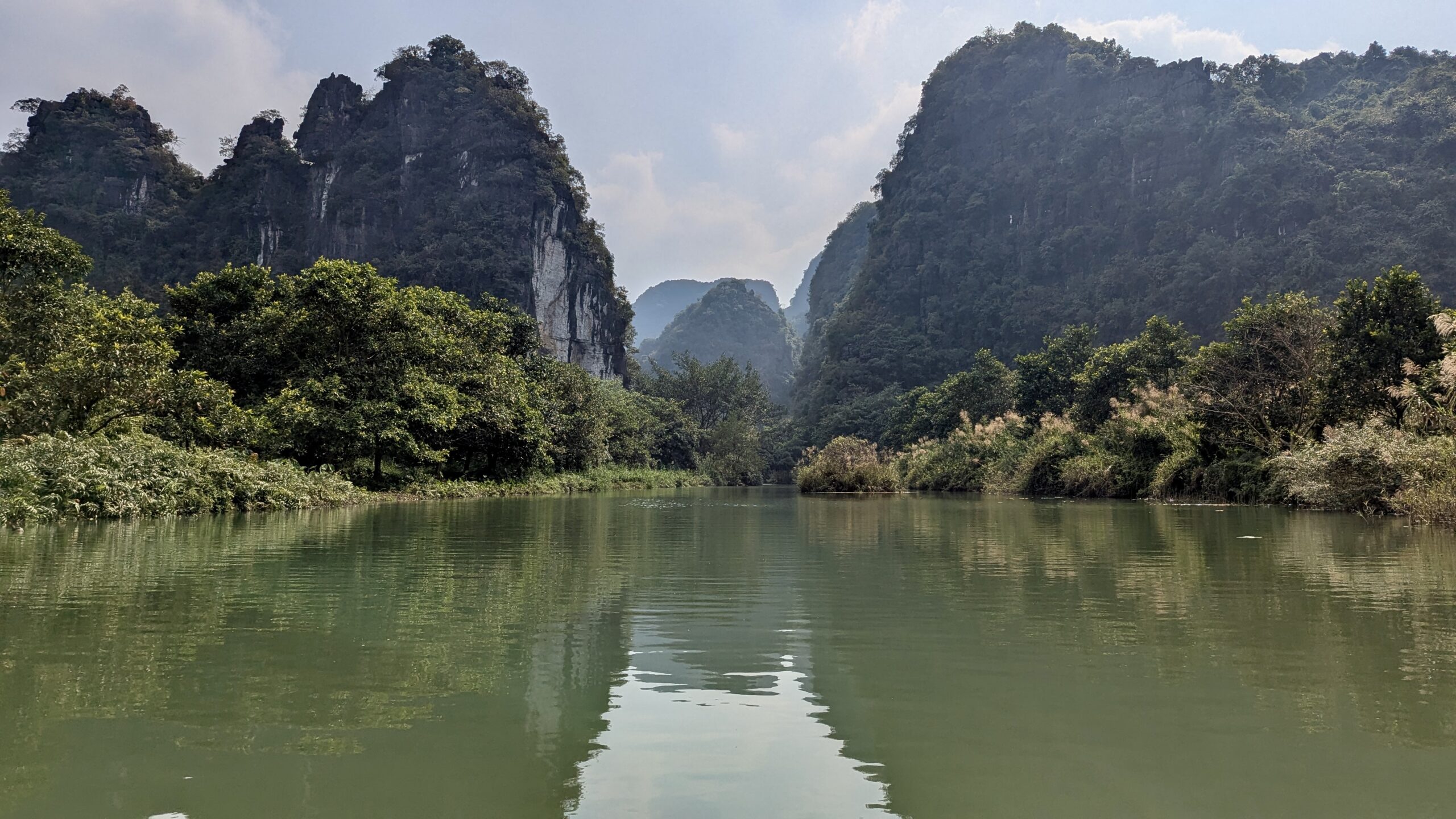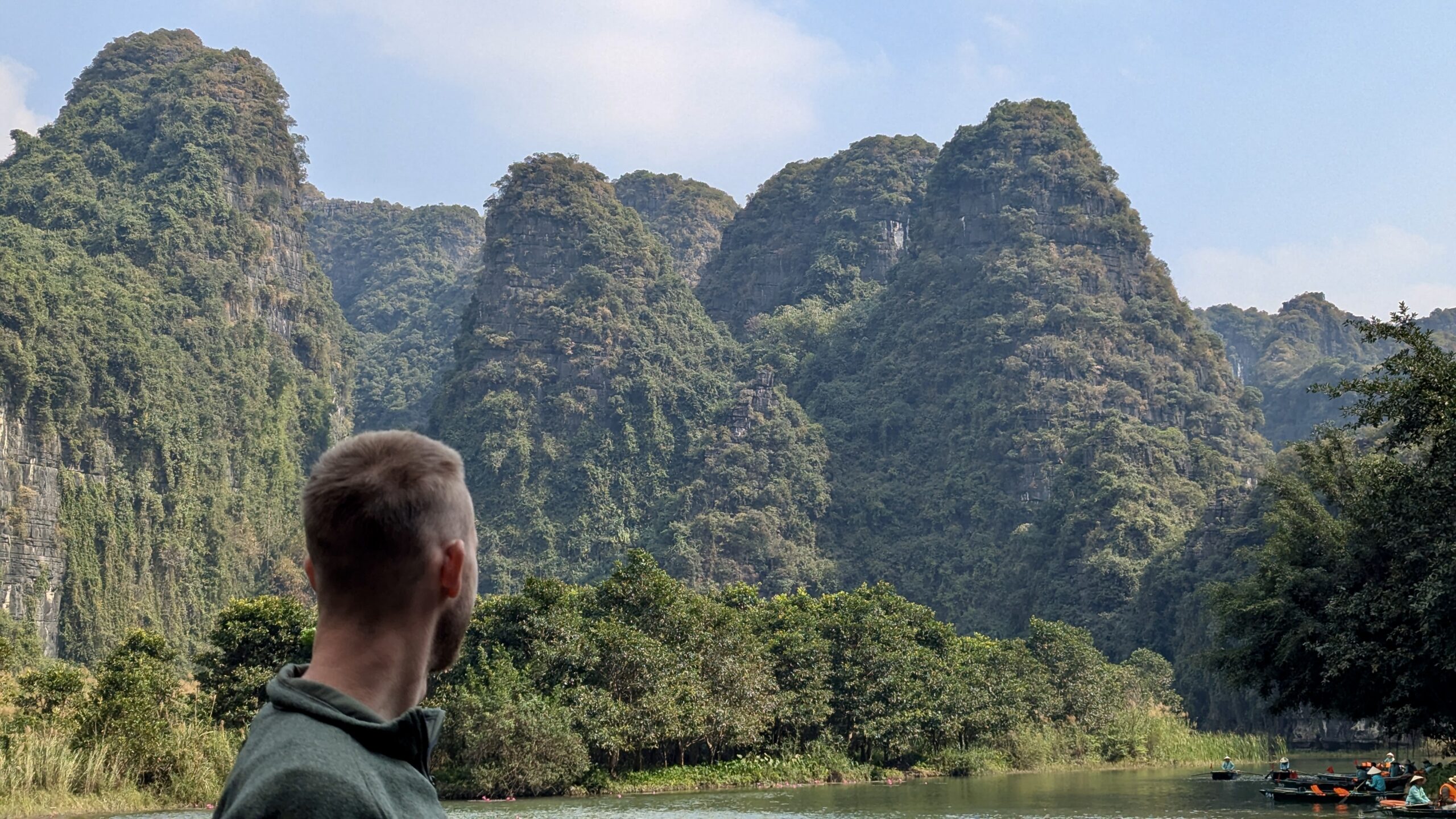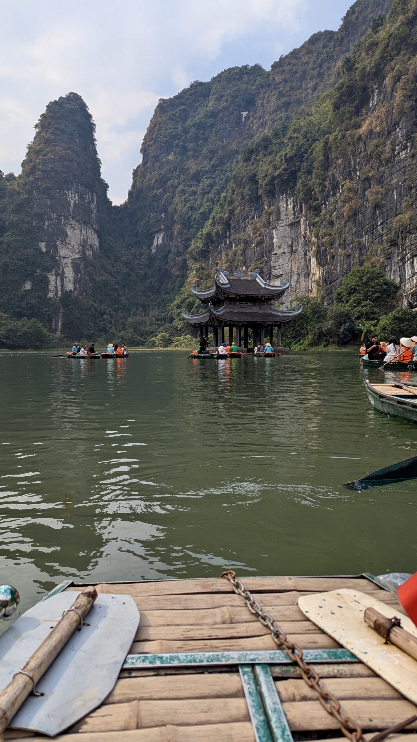 Am nächsten Morgen ging es für uns nach einem schnellen Frühstück in die Region Tràng An. Der Landschaftskomplex (anders kann ich es irgendwie nicht in Worte fassen) ist seit 2014 ein malerisches Natur- und Kulturdenkmal. Die gesamte Gegend zeichnet sich durch hohe Karstberge, Täler mit wunderschönen Wasserlandschaften und teilweise überflutete Höhlen aus. Besonders erwähnenswert ist, dass hier nachhaltiger Ökotourismus betrieben wird, da alle Strecken ausschließlich mit Ruderbooten zurückgelegt werden.