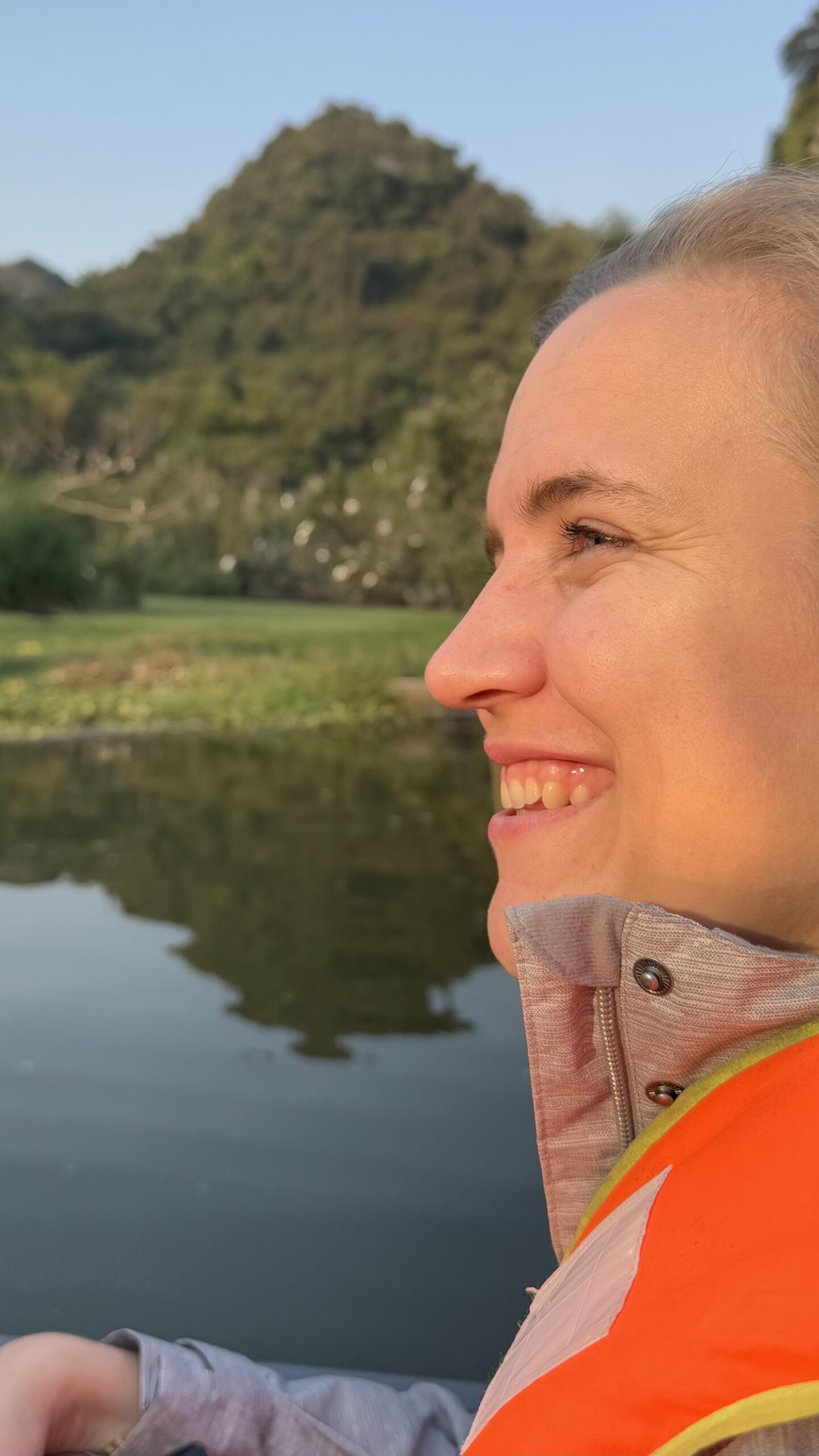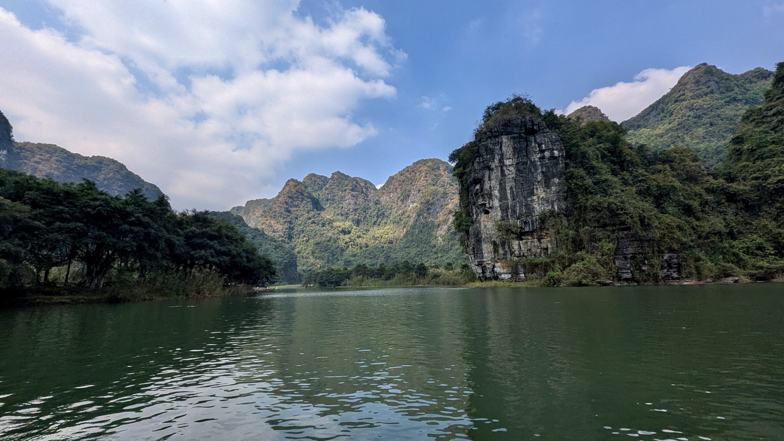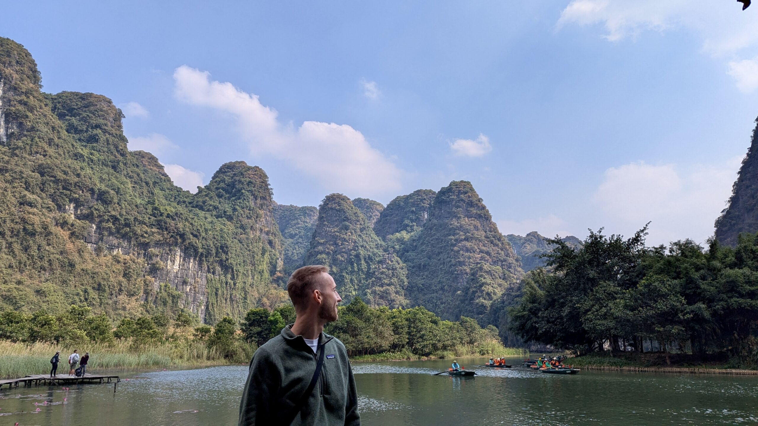 Am nächsten Morgen ging es für uns nach einem schnellen Frühstück in die Region Tràng An. Der Landschaftskomplex (anders kann ich es irgendwie nicht in Worte fassen) ist seit 2014 ein malerisches Natur- und Kulturdenkmal. Die gesamte Gegend zeichnet sich durch hohe Karstberge, Täler mit wunderschönen Wasserlandschaften und teilweise überflutete Höhlen aus. Besonders erwähnenswert ist, dass hier nachhaltiger Ökotourismus betrieben wird, da alle Strecken ausschließlich mit Ruderbooten zurückgelegt werden.