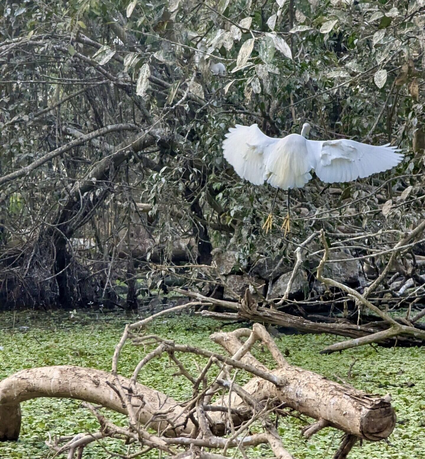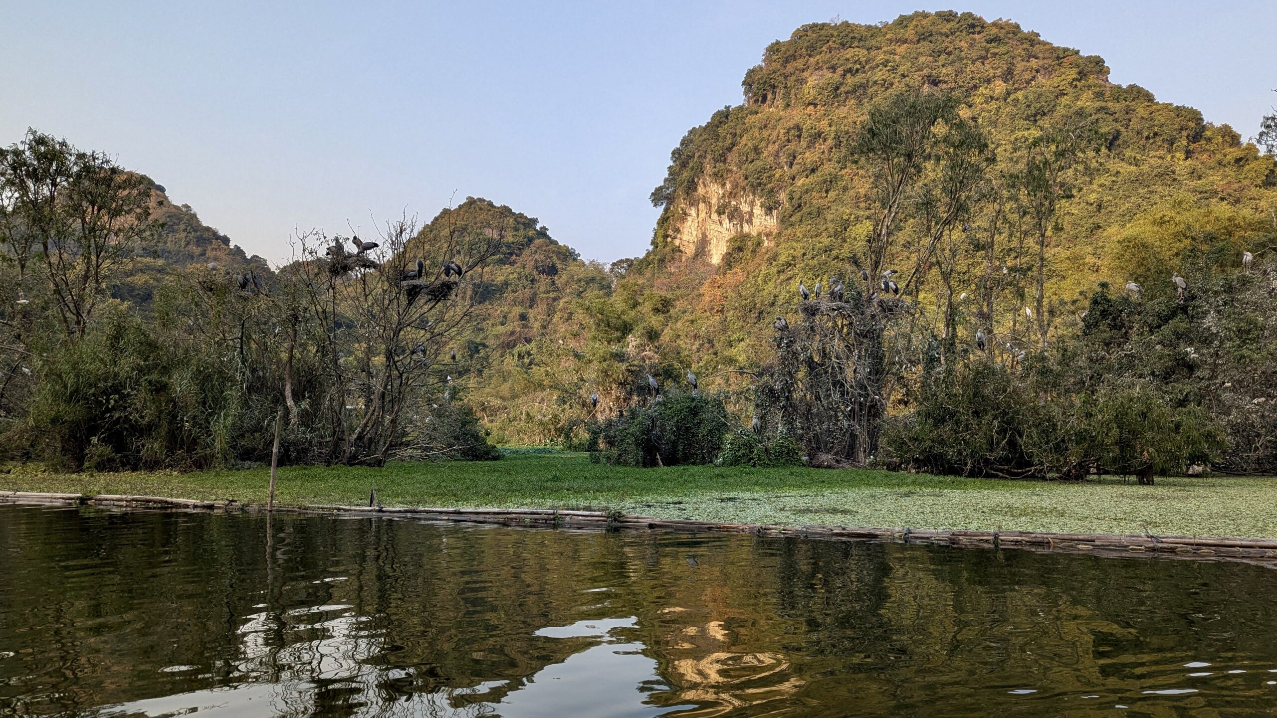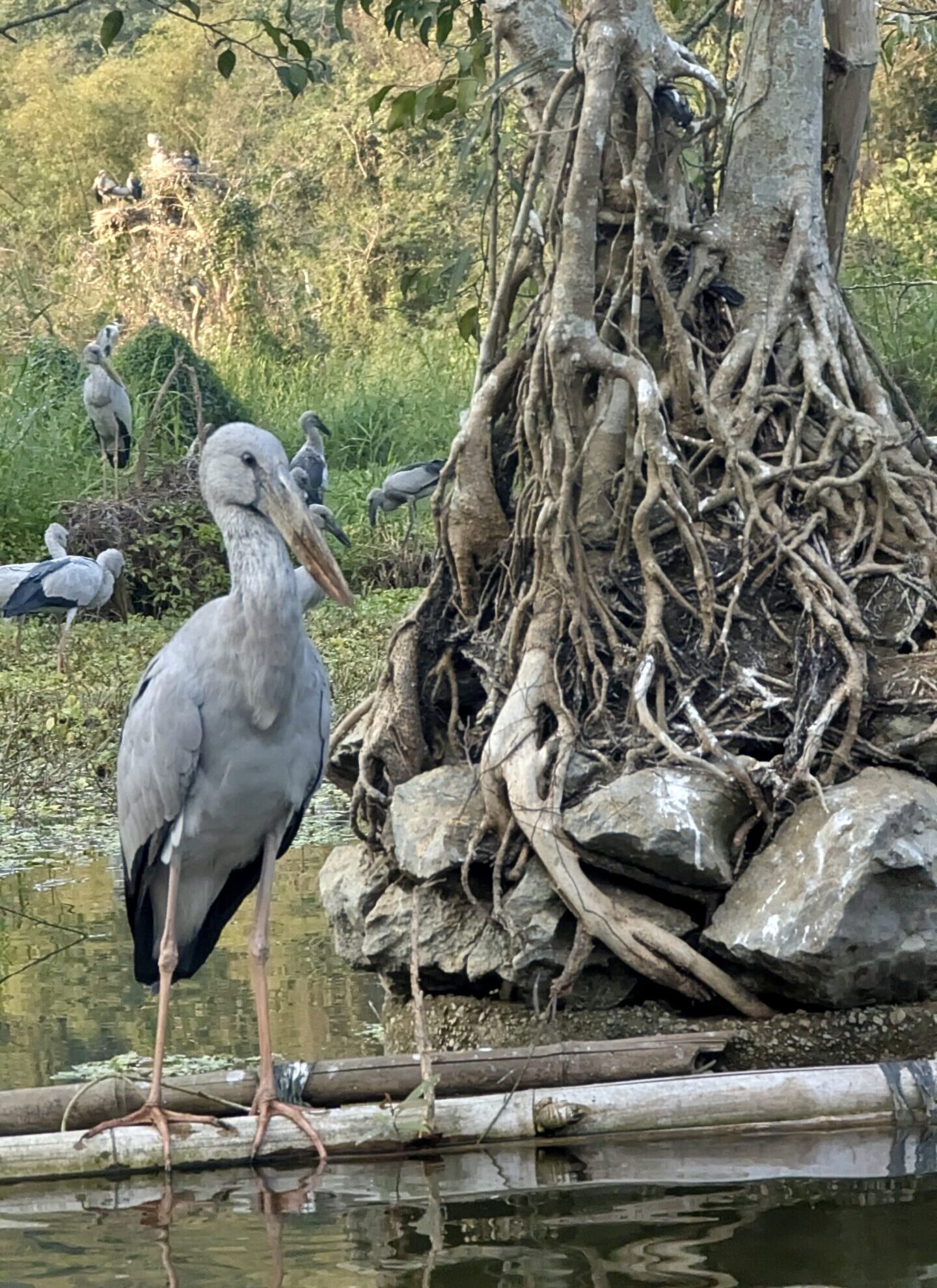 Zum Abschluss ging es dann mit einem Boot – dieses Mal wurde allerdings von Hand gerudert – in den eigentlichen Teil des Vogelreservats. Hier befinden sich die Brutstätten von über 45 verschiedenen Vogelarten, darunter Störche, Reiher und Eisvögel. Ich bin zwar keine erfahrene Vogelbeobachterin, aber ich habe zumindest Reiher, weiße Vögel und einige andere mit schwarz-weißen Federspitzen gesehen.