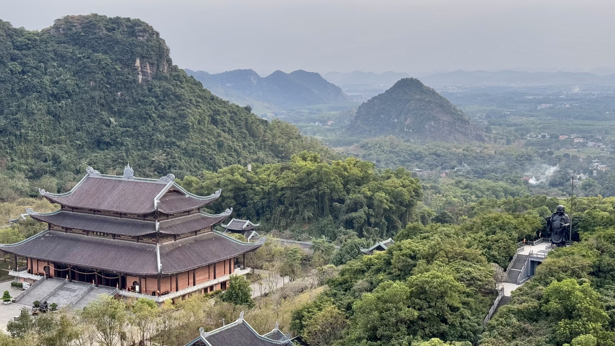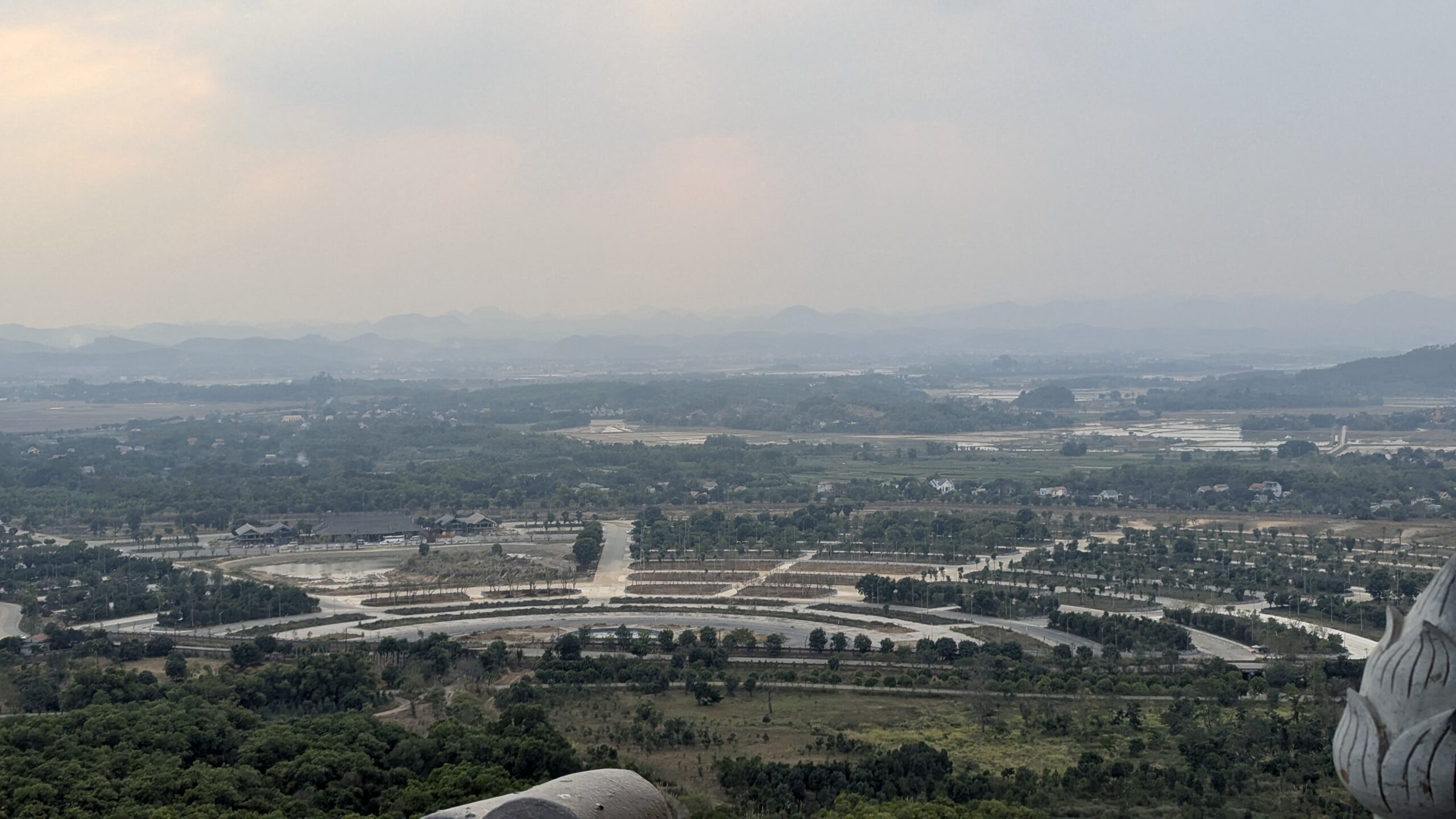 Anschließend schwangen wir uns wieder auf unseren Roller und fuhren weiter entlang der Berge. Bei Google Maps hatten wir eine faszinierend aussehende Pagode entdeckt, also übernahm ich als Rücksitz-Navi die Navigation und führte Sascha mit meinen hervorragenden Fähigkeiten direkt zum Ziel. Online hieß es, die Bai-Dinh-Pagode sei einer der größten spirituellen und kulturellen Komplexe Vietnams.