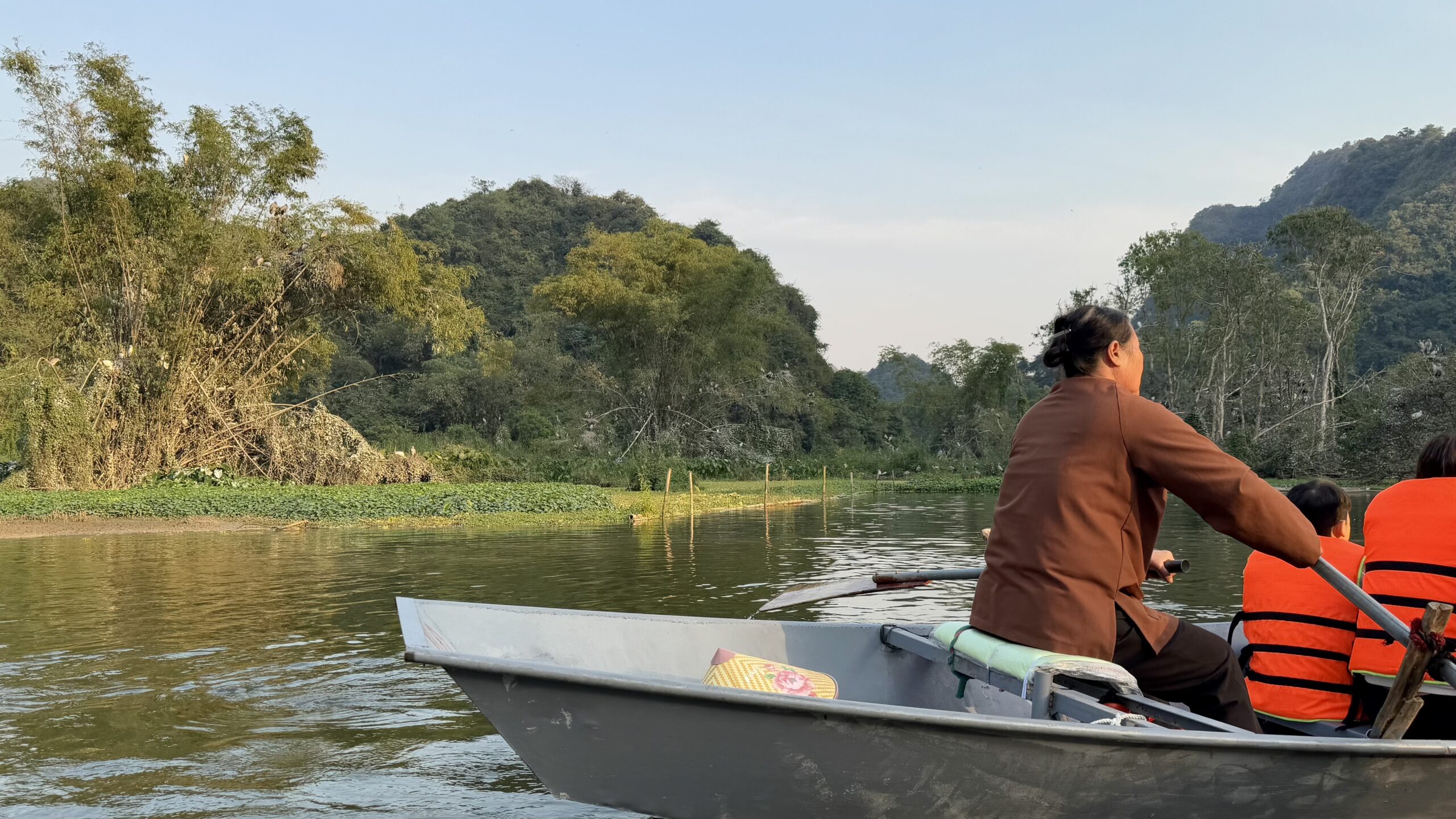 Kurz nach 9 Uhr kamen wir in Ninh Bình an. Die Stadt diente uns jedoch nur als Ankunftsbahnhof, denn unser eigentliches Ziel war Tam Cốc. Tam Cốc wird oft als die „trockene Halong-Bucht“ bezeichnet – hier erheben sich hohe, grün bewachsene Karstberge, und zwischen ihnen schlängeln sich wunderschöne Flüsse.