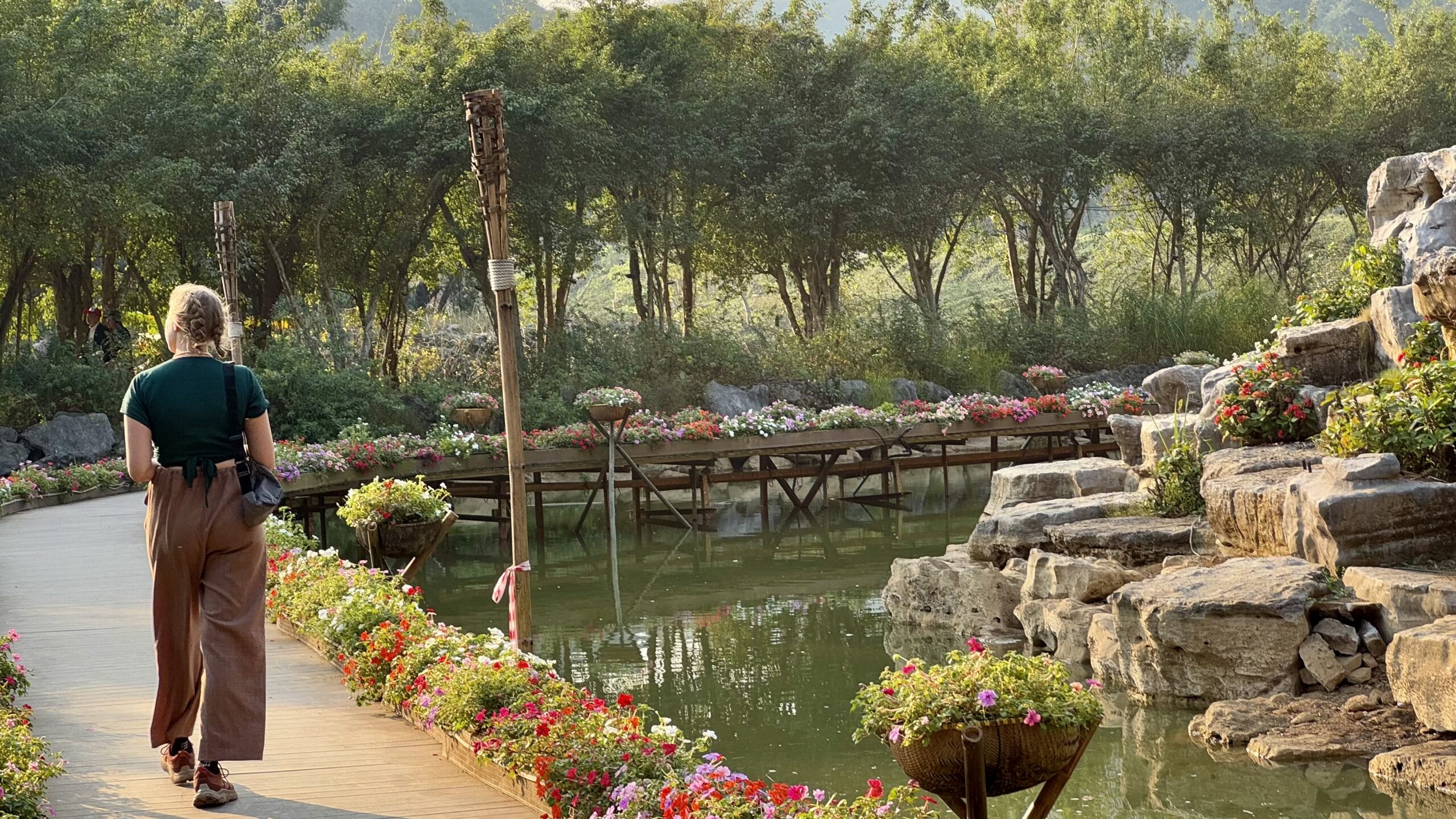 Mit der untergehenden Sonne im Rücken schlenderten Sascha und ich durch die wunderschön begrünte und bunt bepflanzte Anlage. Überall entdeckten wir neue, liebevoll in Szene gesetzte Details.