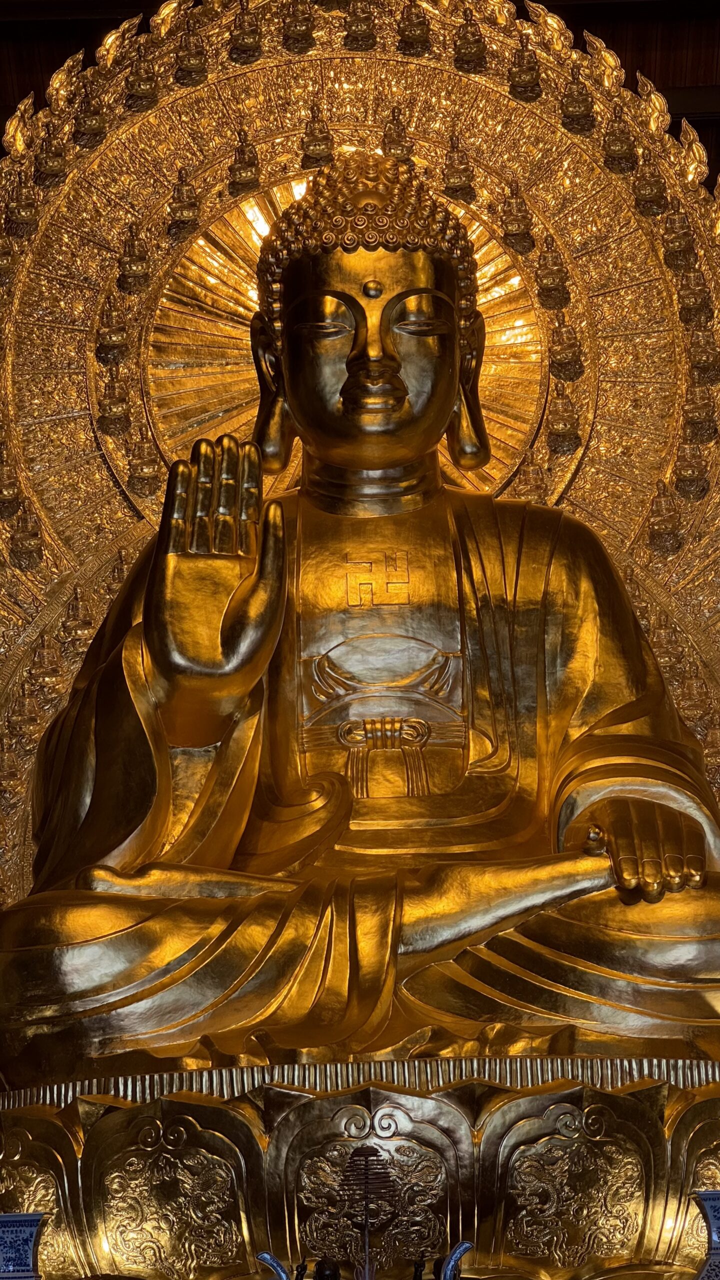 Was uns oben erwartete, war zugleich beeindruckend und verwirrend: Drei riesige Buddha-Statuen thronten in der Halle – eindrucksvoll, aber der gesamte Ort wirkte merkwürdig künstlich. Irgendwie sah alles alt aus, doch gleichzeitig auch neu. Der Tempelkomplex hatte insgesamt einen extrem touristischen Charakter, was uns spätestens dann auffiel, als wir überall den Schriftzug „Tourism Complex“ entdeckten.
