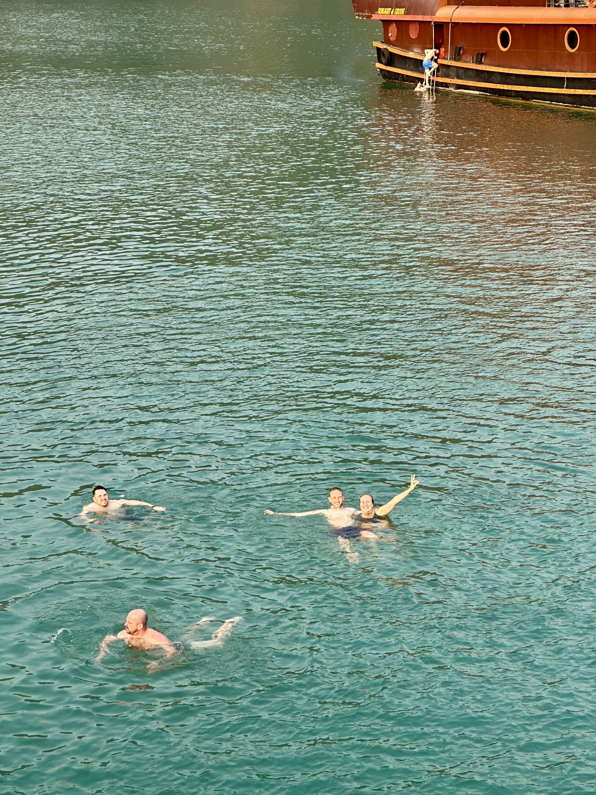 Ich bin zwar nicht gerade für meine Höhenangst bekannt, aber vom Dreimeterbrett im Schwimmbad bin ich nie gern gesprungen. Doch hey – man ist nur einmal in Vietnam, auf einem Boot, und kann direkt ins offene Meer springen, right?