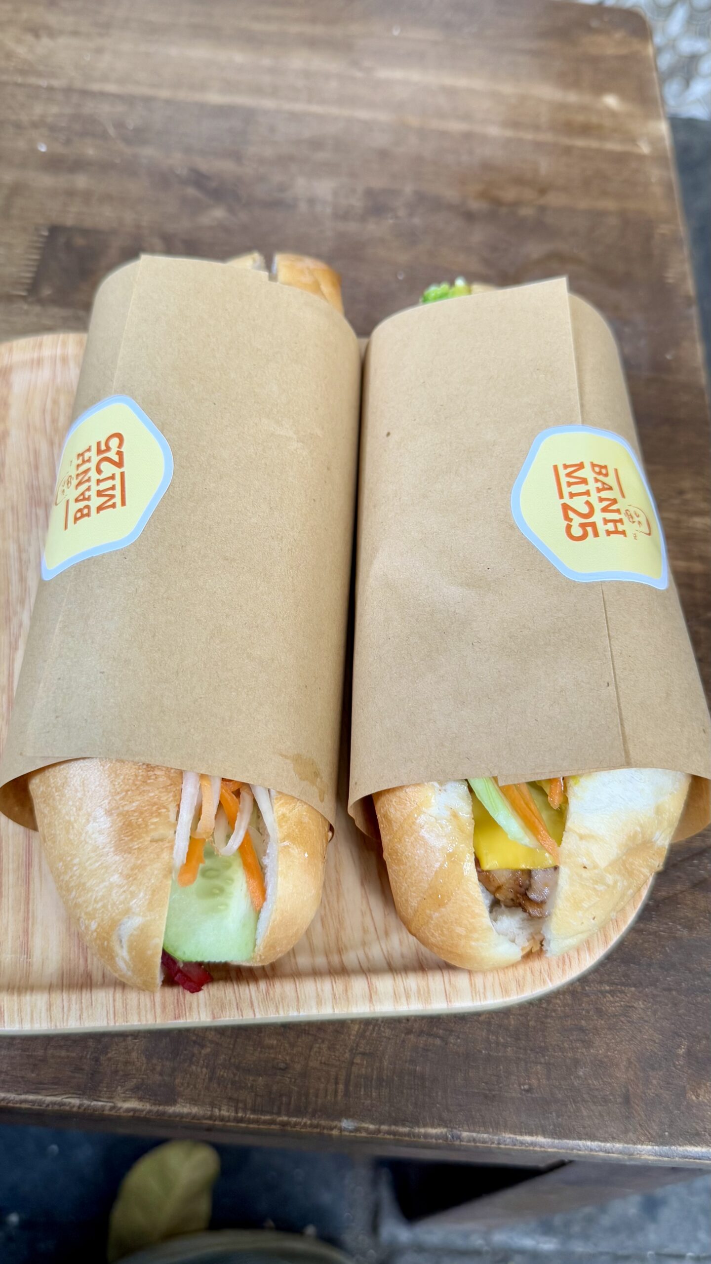 Dafür fanden wir dank Nathans Empfehlung einen richtig, richtig, richtig guten Bánh Mì-Laden. Ihr erinnert euch bestimmt – diese leckeren, mit verschiedenen Zutaten belegten Baguettes, die wir in Vietnam so lieben gelernt haben. Ich glaube, in Bánh Mì 25 waren wir täglich und gönnten uns vier dieser Köstlichkeiten. Wir konnten und wollten einfach nicht darauf verzichten! Außerdem sind sie ein supergünstiger Snack, mit dem man viel Geld sparen kann. Vier Bánh Mì kosteten umgerechnet nur ca. 7 €. Da kann man wohl verstehen, warum wir uns einmal quer durch die Karte probiert haben. 😄