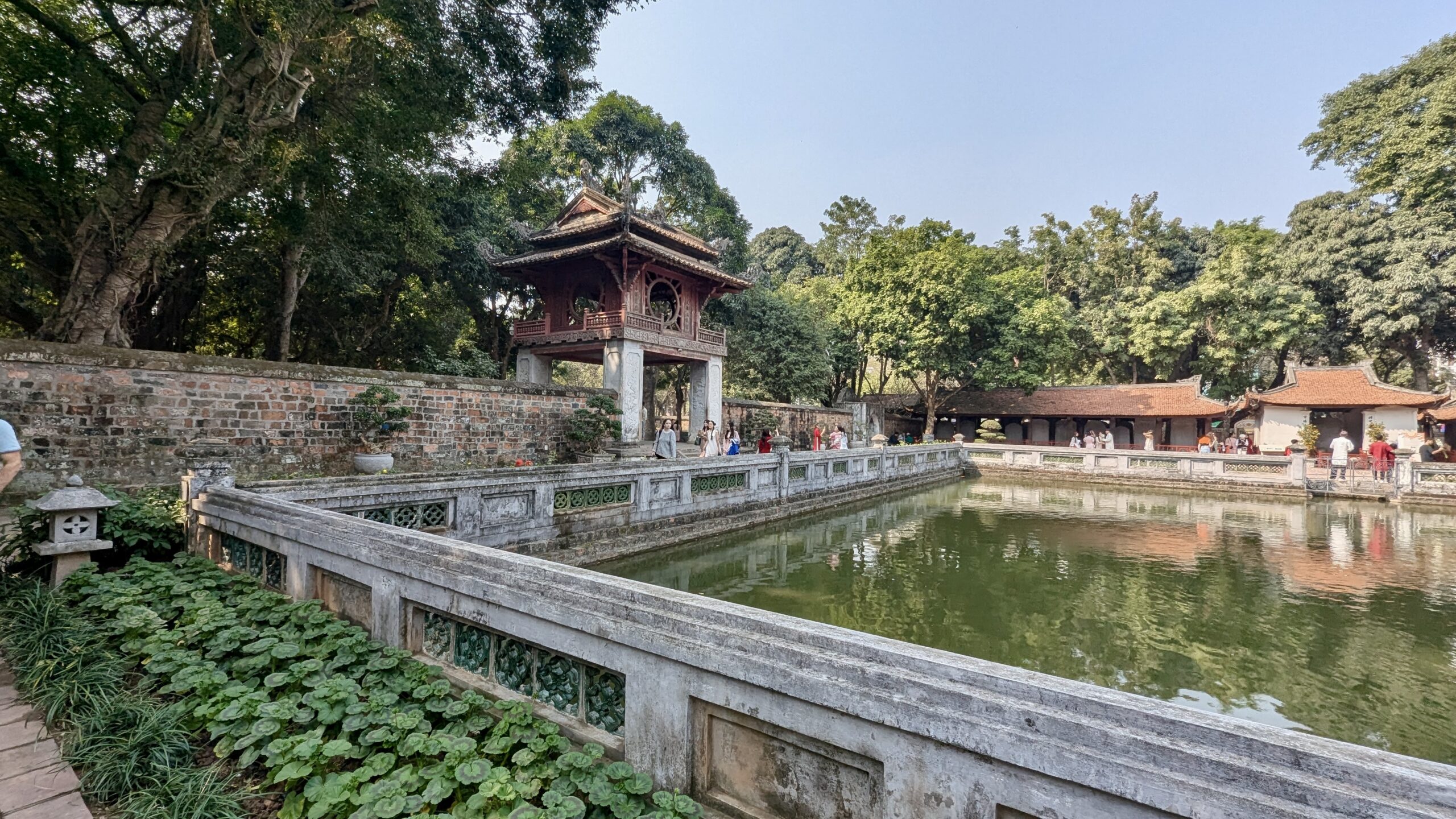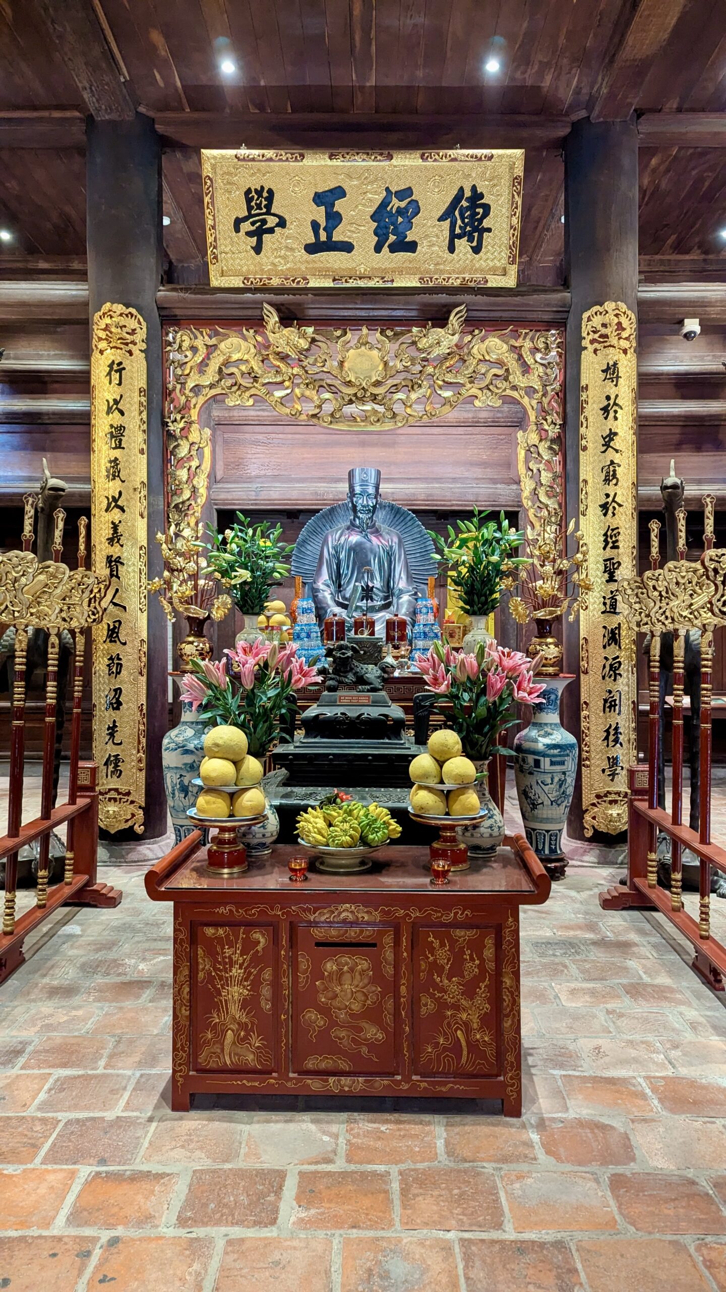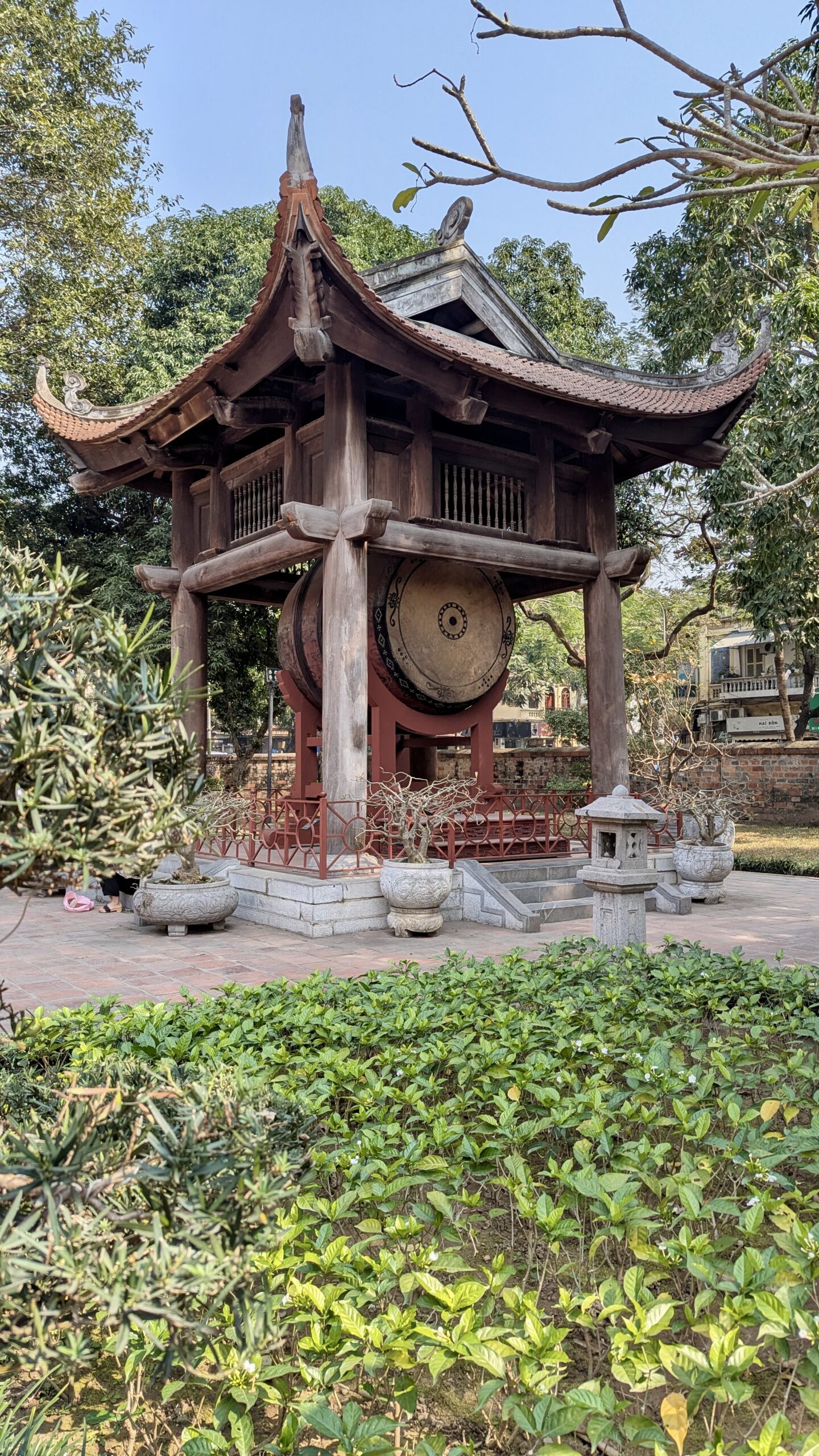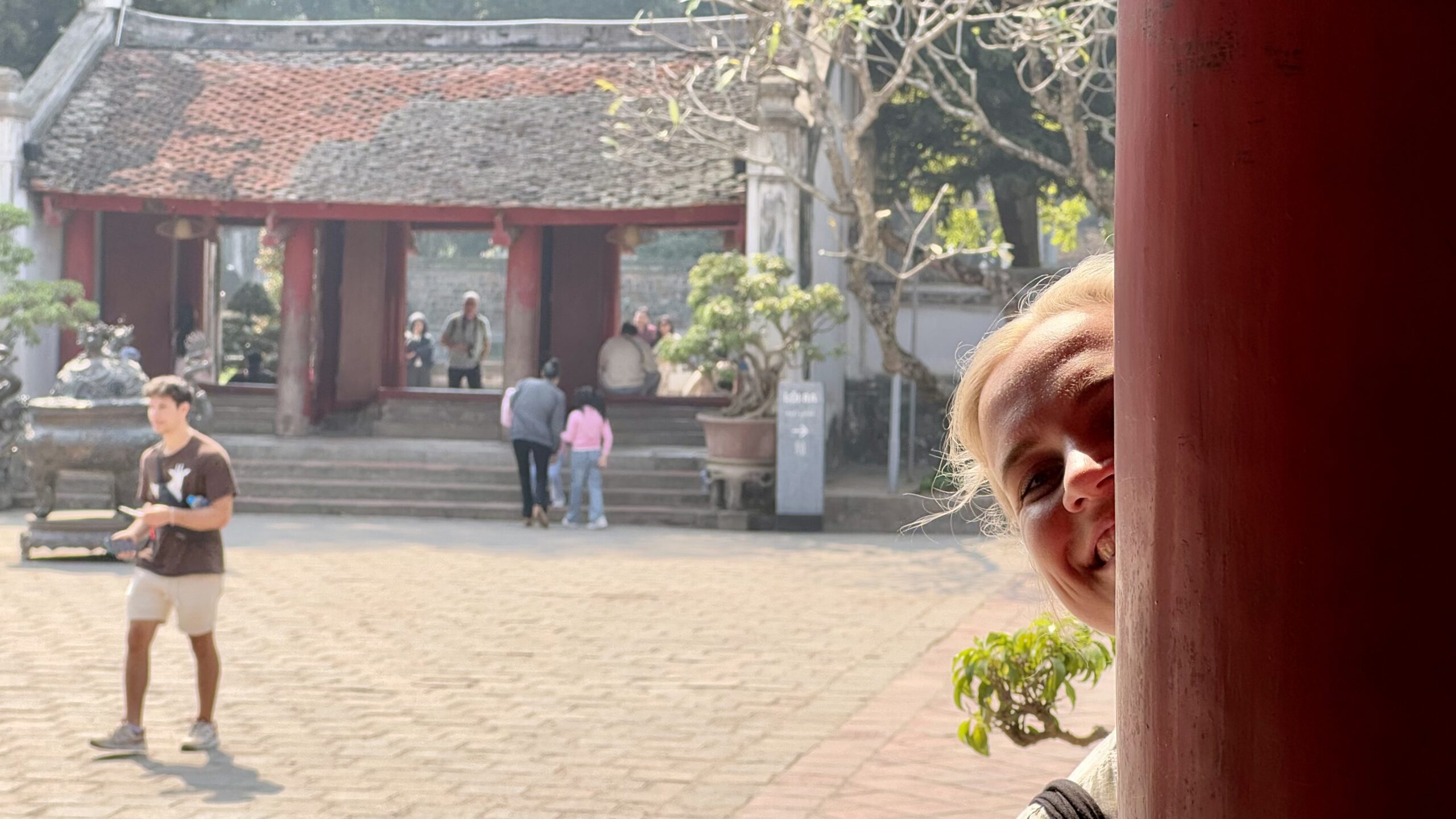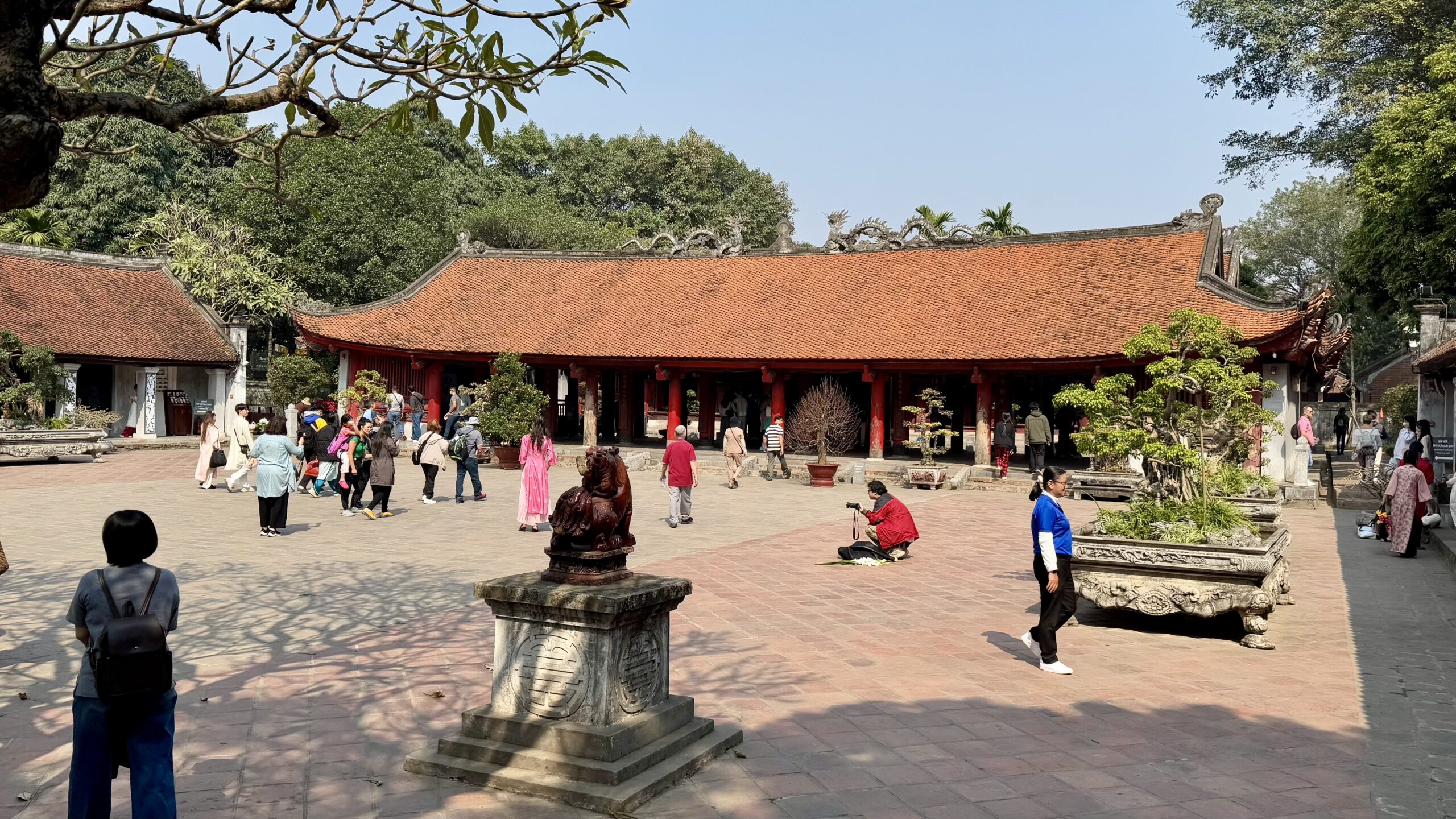 Auf Empfehlung von Bernice und Nathan besuchten wir an diesem Tag außerdem den Literaturtempel, der etwas außerhalb des Stadtzentrums liegt. Man merkte, dass sich die Vietnamesen auf das Neujahrsfest Tết vorbereiteten. Es wird zeitgleich mit dem chinesischen Neujahr gefeiert, und hier schließt dann alles für mehrere Tage. Die ganze Stadt war bereits festlich geschmückt, und viele junge Frauen und Männer liefen in traditionellen Kleidern durch den Literaturtempel, um dort Fotos zu machen. Ein wirklich schönes Bild! 😊