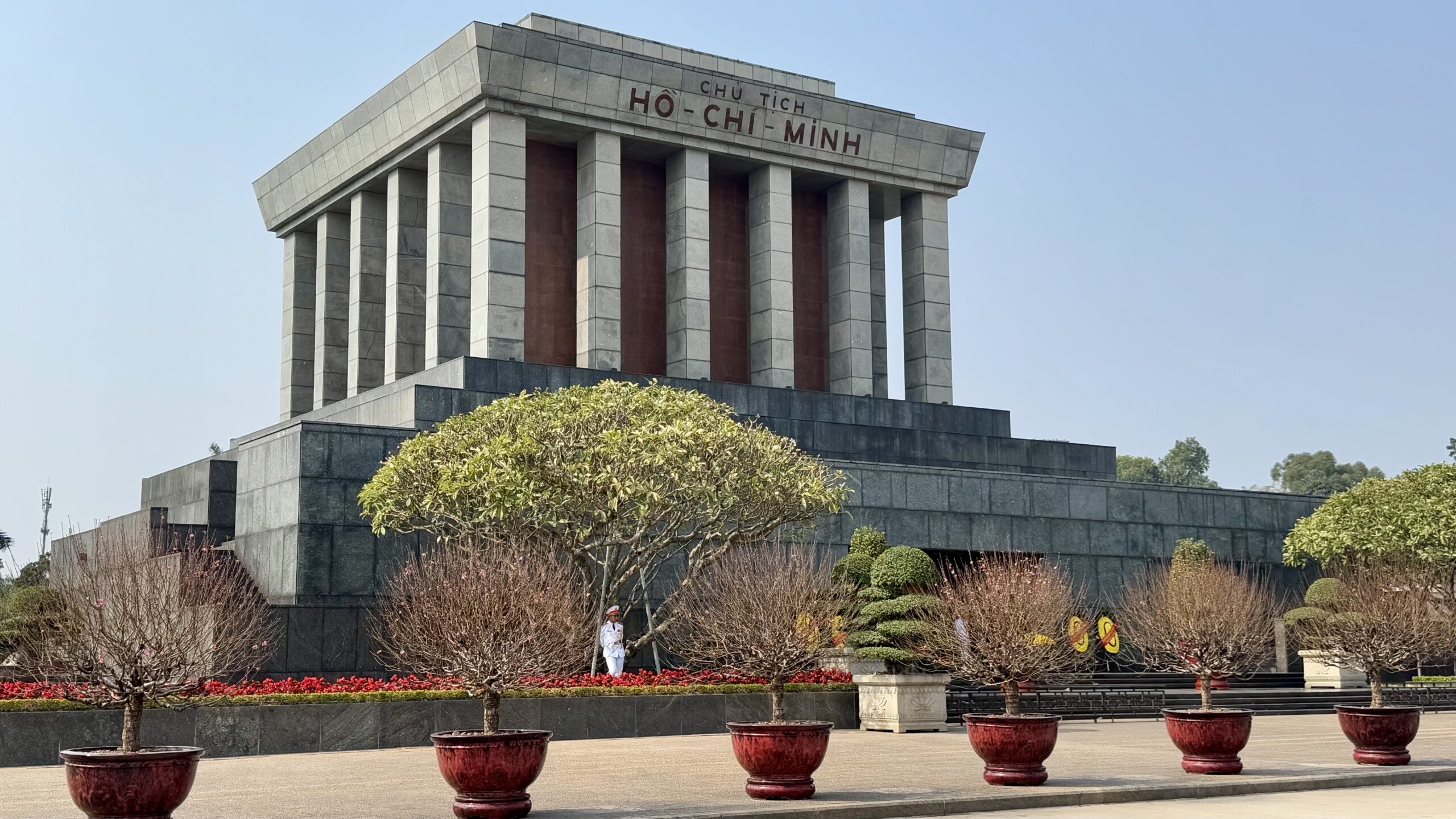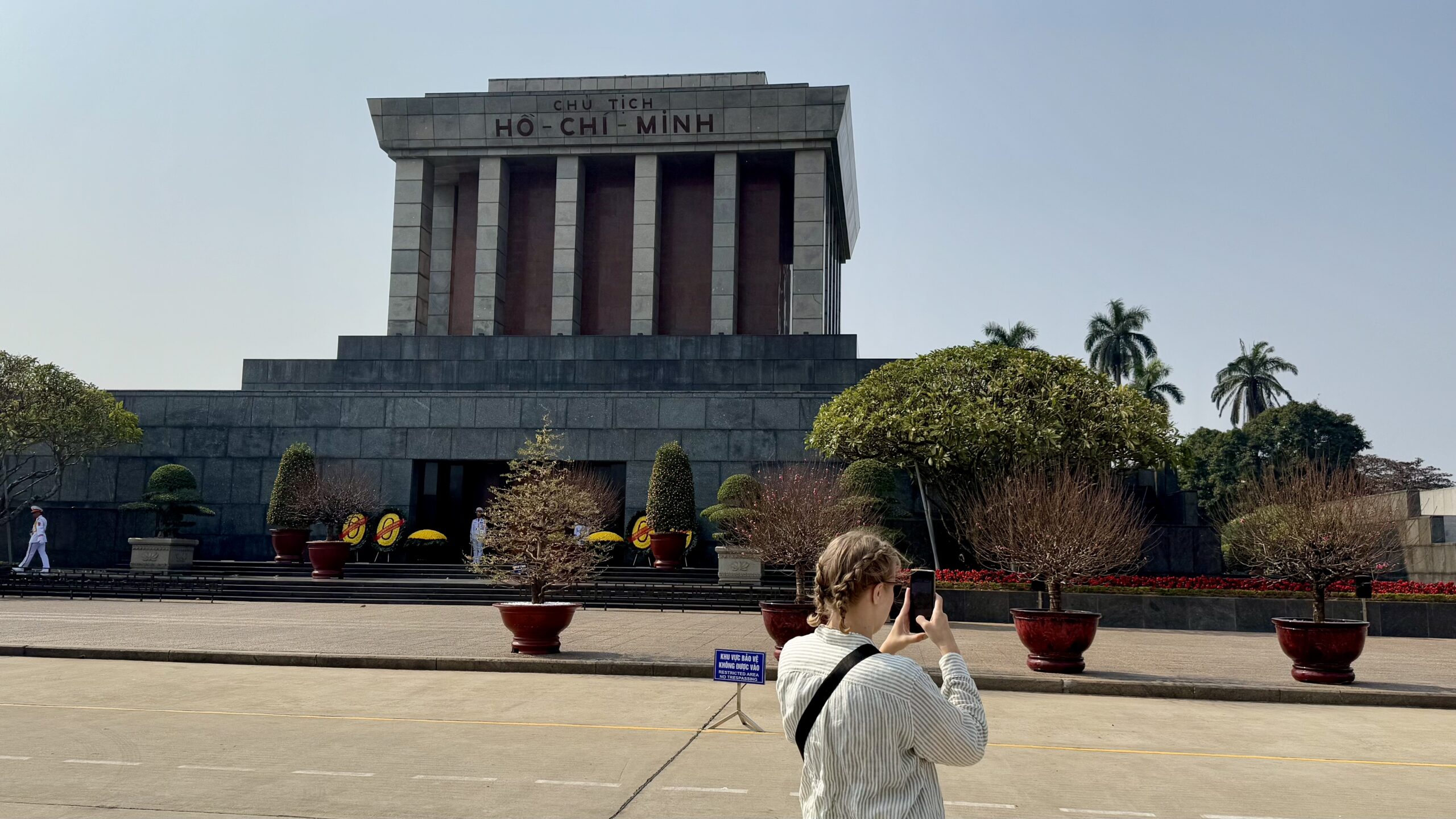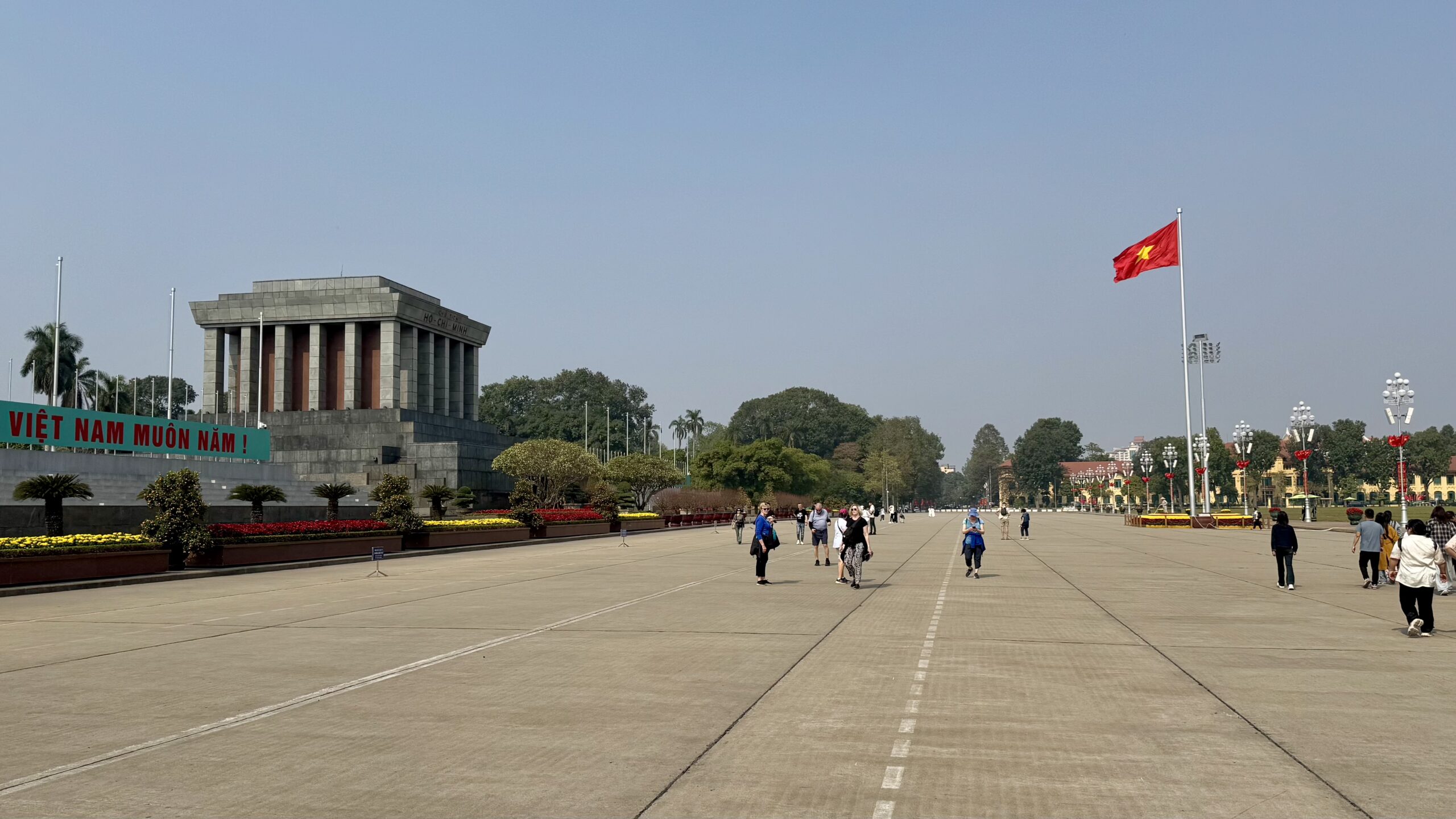 Danach ging es für uns weiter durch die Stadt zum Mausoleum von Ho Chi Minh, der im Norden Vietnams als Nationalheld und als Vereiner des Landes nach dem Krieg verehrt wird. Leider gab es hier keine englischen Beschriftungen, und Google Lens funktionierte eher schlecht als recht, sodass wir kaum Informationen über die Geschichte des Ortes erhalten konnten.
