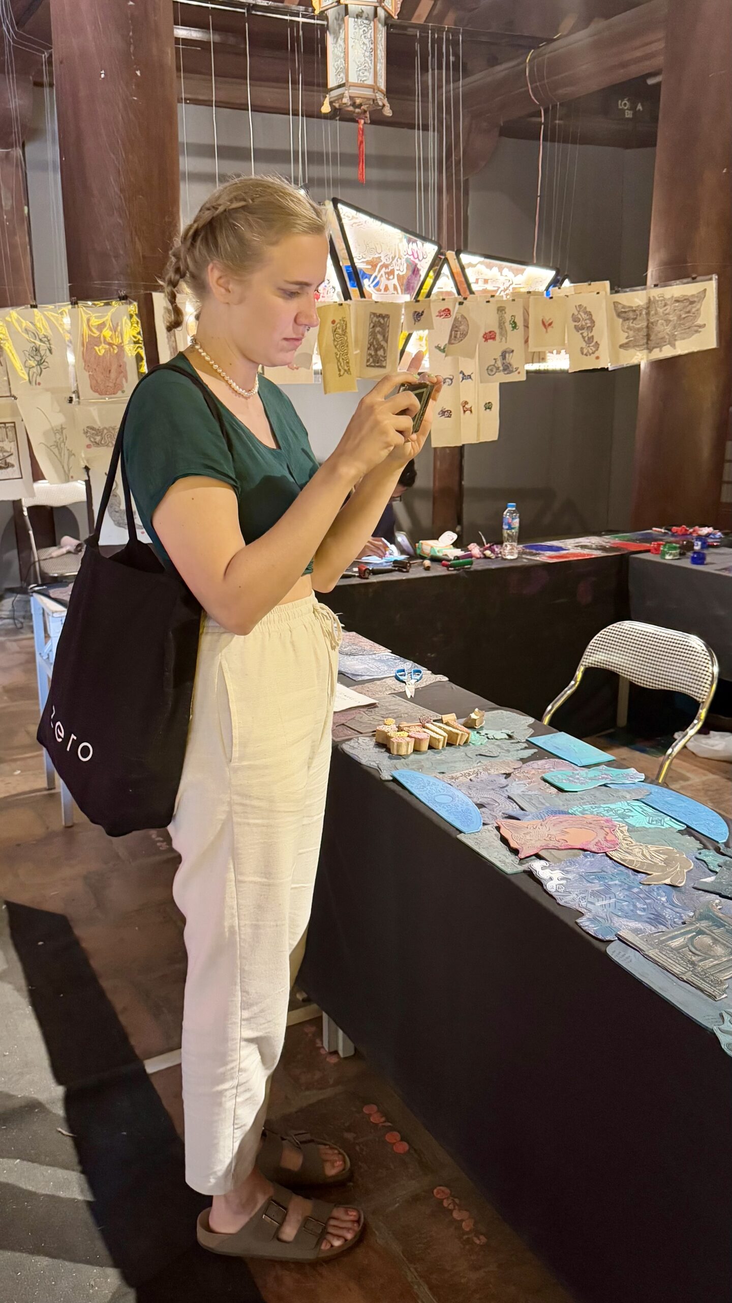 Der Literaturtempel selbst war ebenfalls beeindruckend. Mit seinen schön angelegten Gärten und den elegant geschwungenen Dächern fühlte man sich in eine andere Zeit versetzt. Auch im Inneren konnte man heilige Statuen besichtigen. Eine nette Dame verkaufte Stempeldrucke mit Motiven verschiedener Orte und Tiere – leider hatten wir kein Bargeld mehr, um eines zu kaufen.