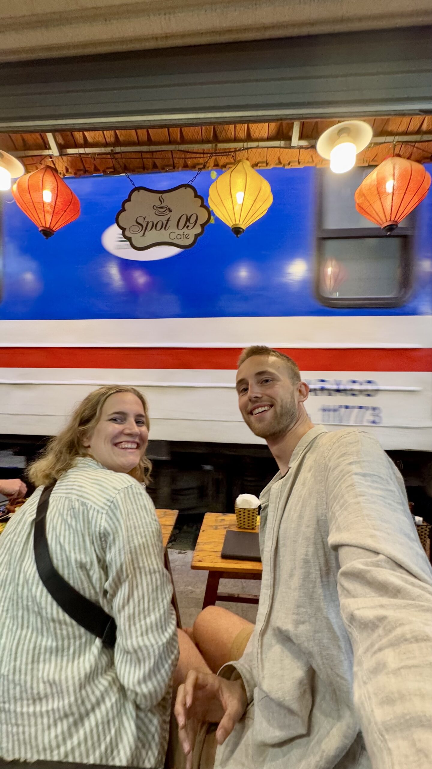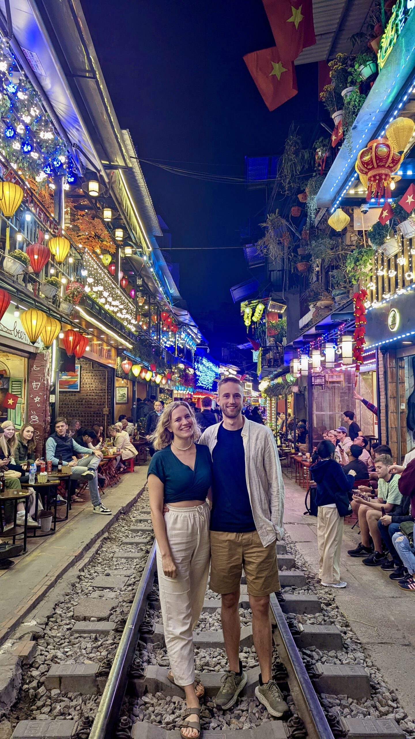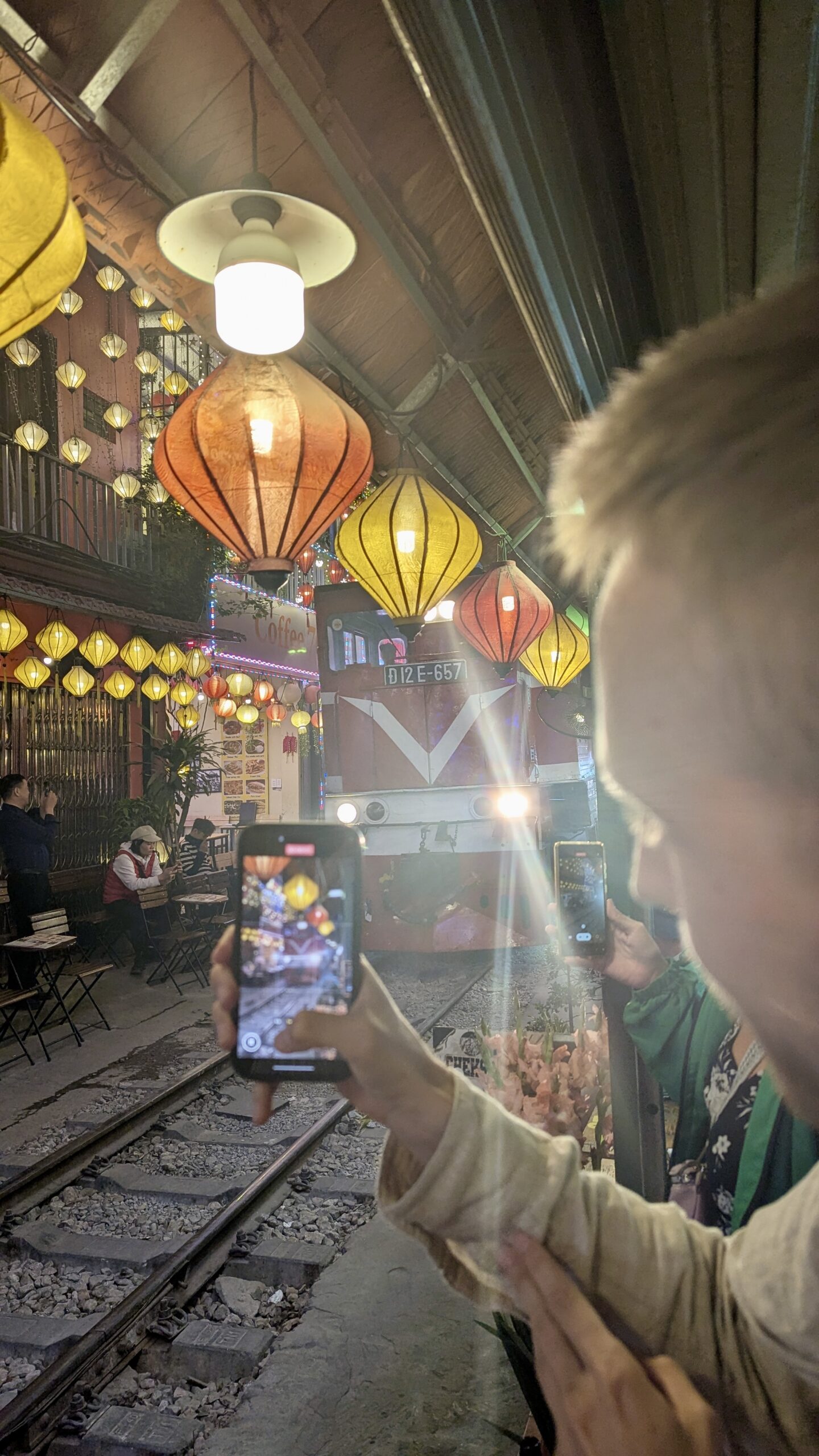 Am Abend verschlug es uns erneut zur Train Street – vielleicht würden wir ja diesmal einen Zug sehen? Wir liefen entlang der Schienen, als wir plötzlich auf Moritz und Jessica trafen, mit denen wir in Saigon die Tour zu den Tunneln gemacht hatten. Wie klein ist bitte Vietnam, dass man sich hier einfach zufällig wieder über den Weg läuft, ohne es abgemacht zu haben? 😄