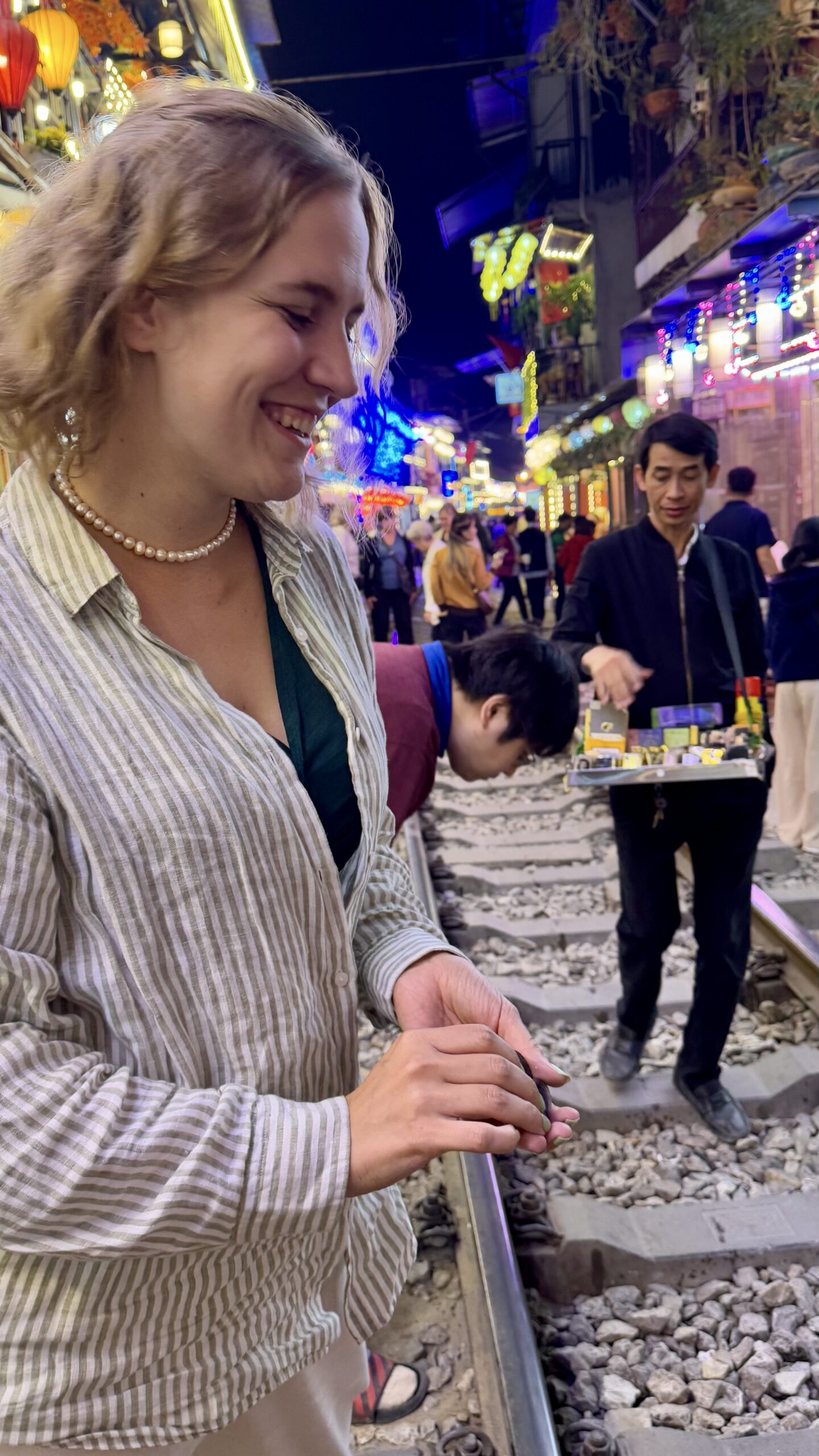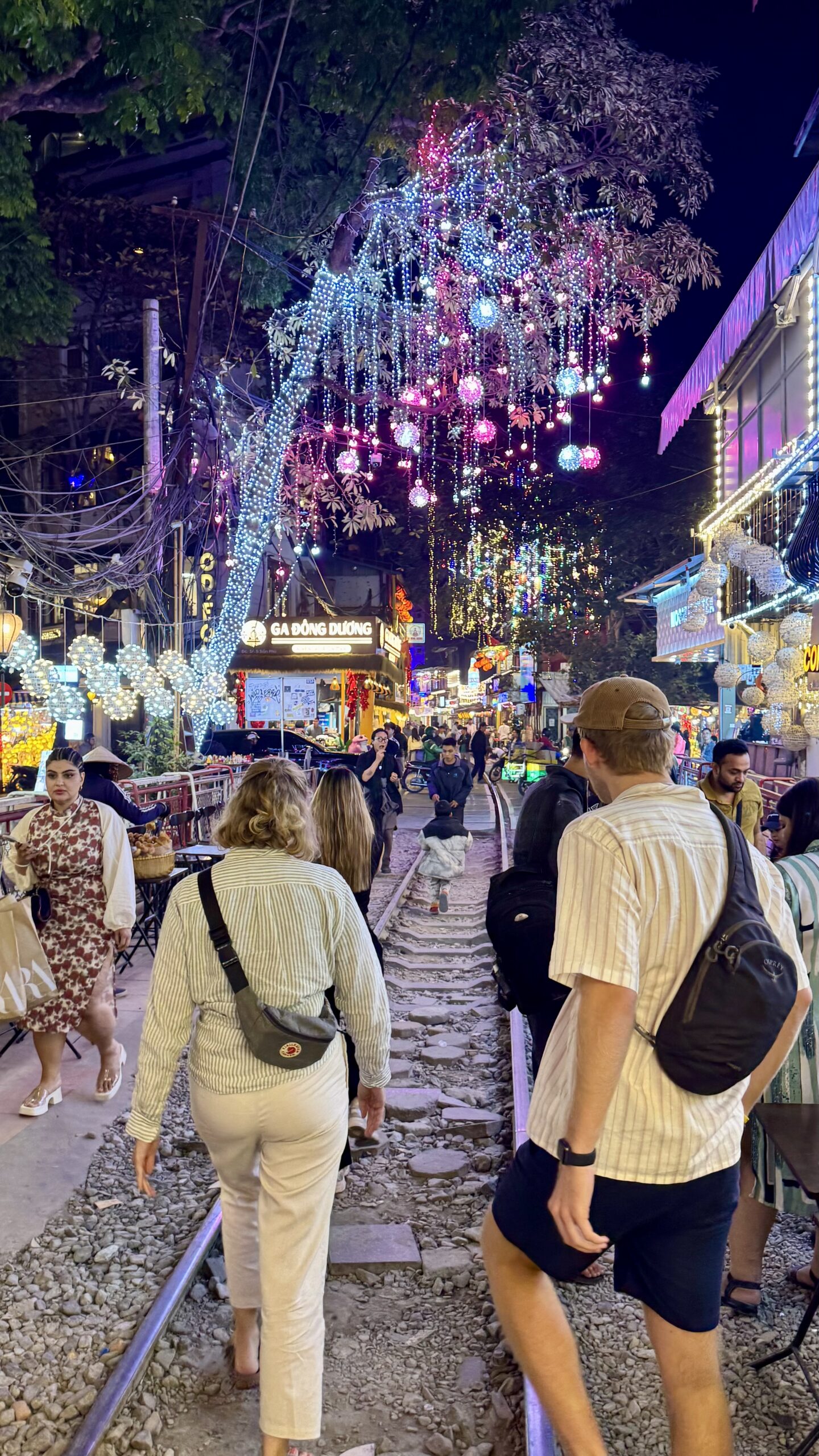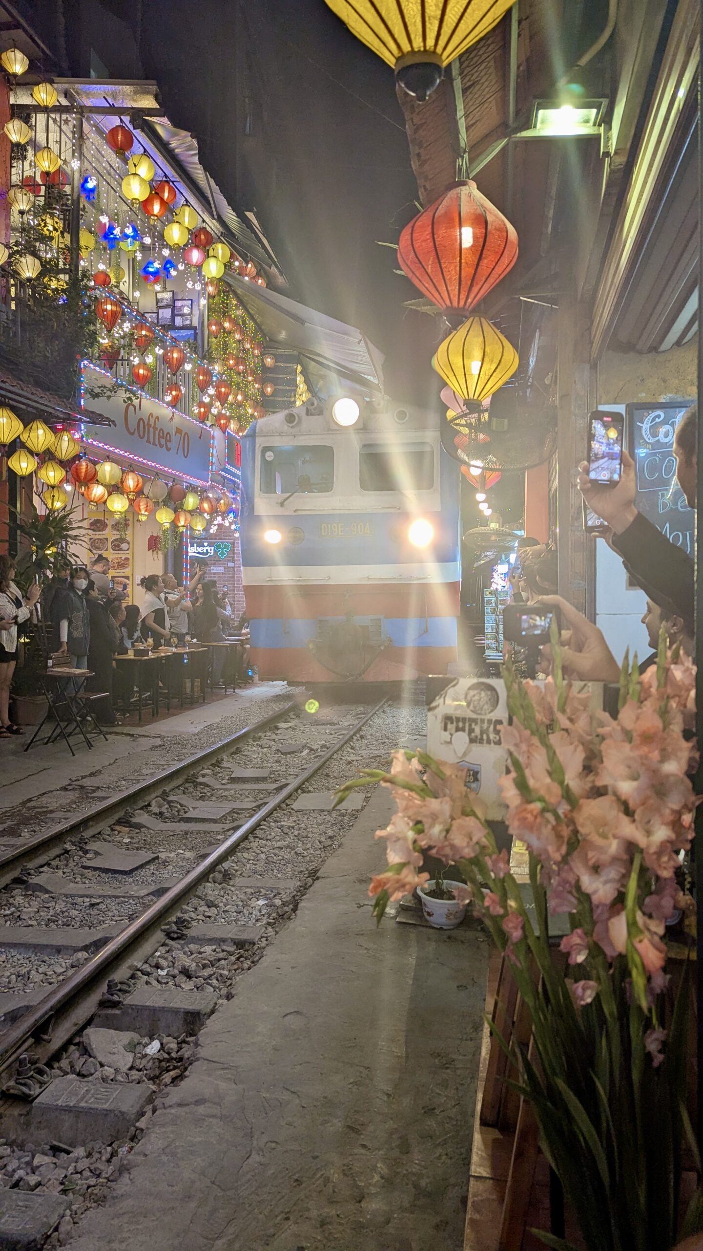 Am Abend verschlug es uns erneut zur Train Street – vielleicht würden wir ja diesmal einen Zug sehen? Wir liefen entlang der Schienen, als wir plötzlich auf Moritz und Jessica trafen, mit denen wir in Saigon die Tour zu den Tunneln gemacht hatten. Wie klein ist bitte Vietnam, dass man sich hier einfach zufällig wieder über den Weg läuft, ohne es abgemacht zu haben? 😄