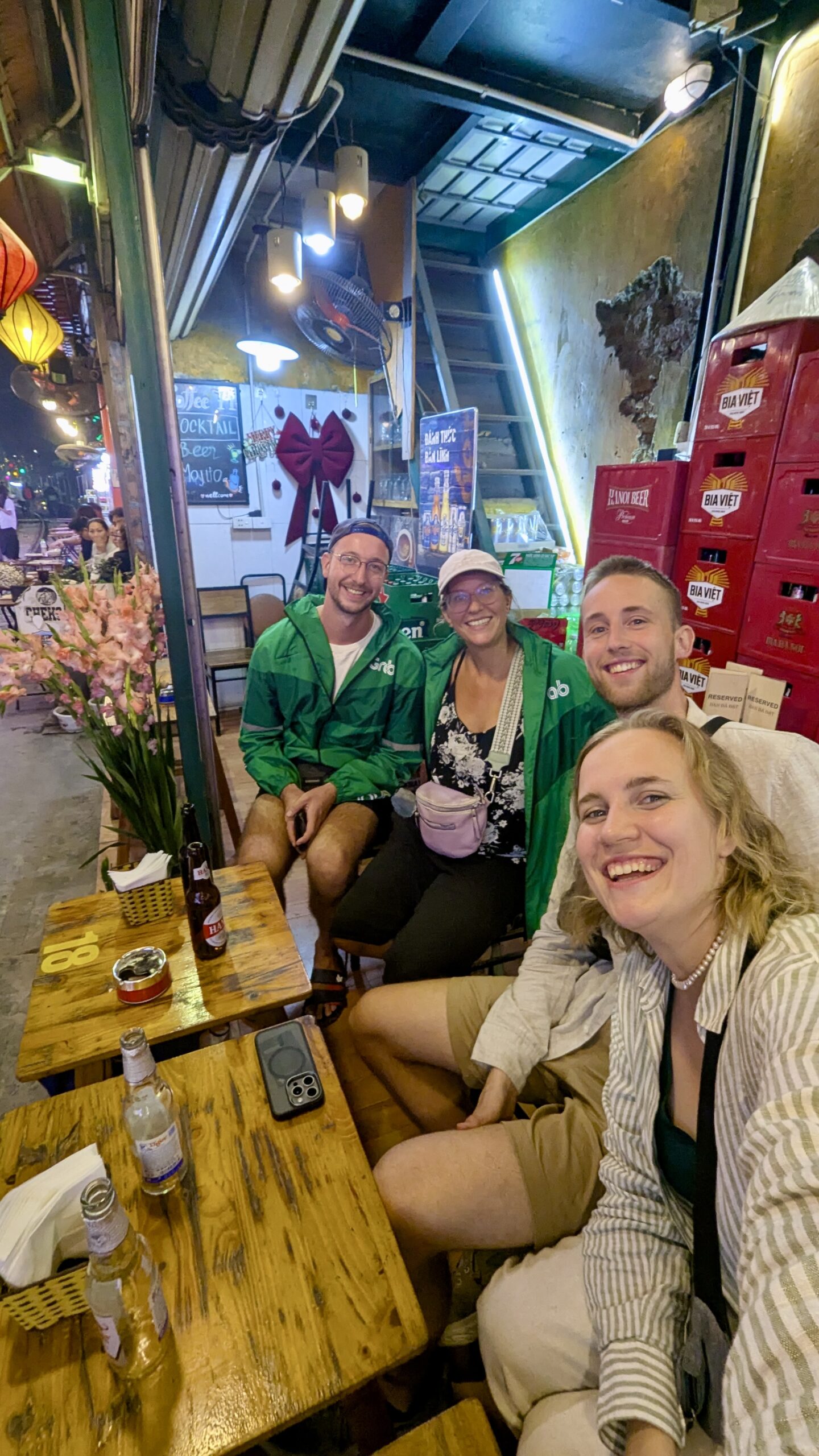 Auch wenn unser letztes Wiedersehen kaum 24 Stunden zurücklag, war es sehr schön, sie erneut zu treffen. Wir verabredeten uns an der Train Street und warteten vergeblich eine Stunde auf einen Zug. Schließlich entschieden wir, dass wir die überteuerten Preise für das Essen dort nicht zahlen wollten, und suchten uns stattdessen ein kleines, gemütliches Restaurant in einer Seitenstraße. Im Hanoi Social Club aßen wir dann gemeinsam zu Abend. Es hat uns sehr gefreut, die beiden noch einmal zu treffen – wer weiß, vielleicht kreuzen sich unsere Wege ja erneut? 😊