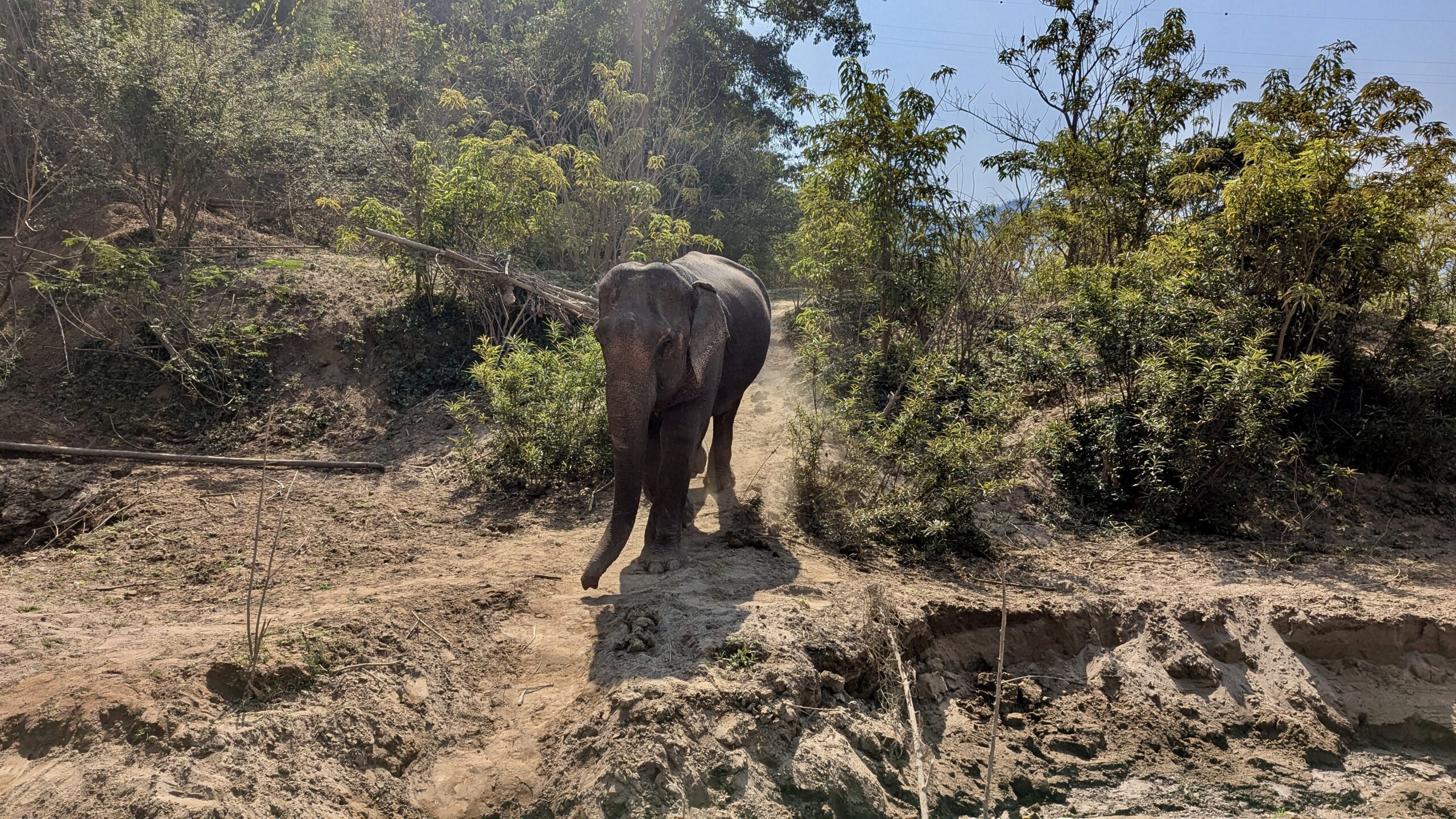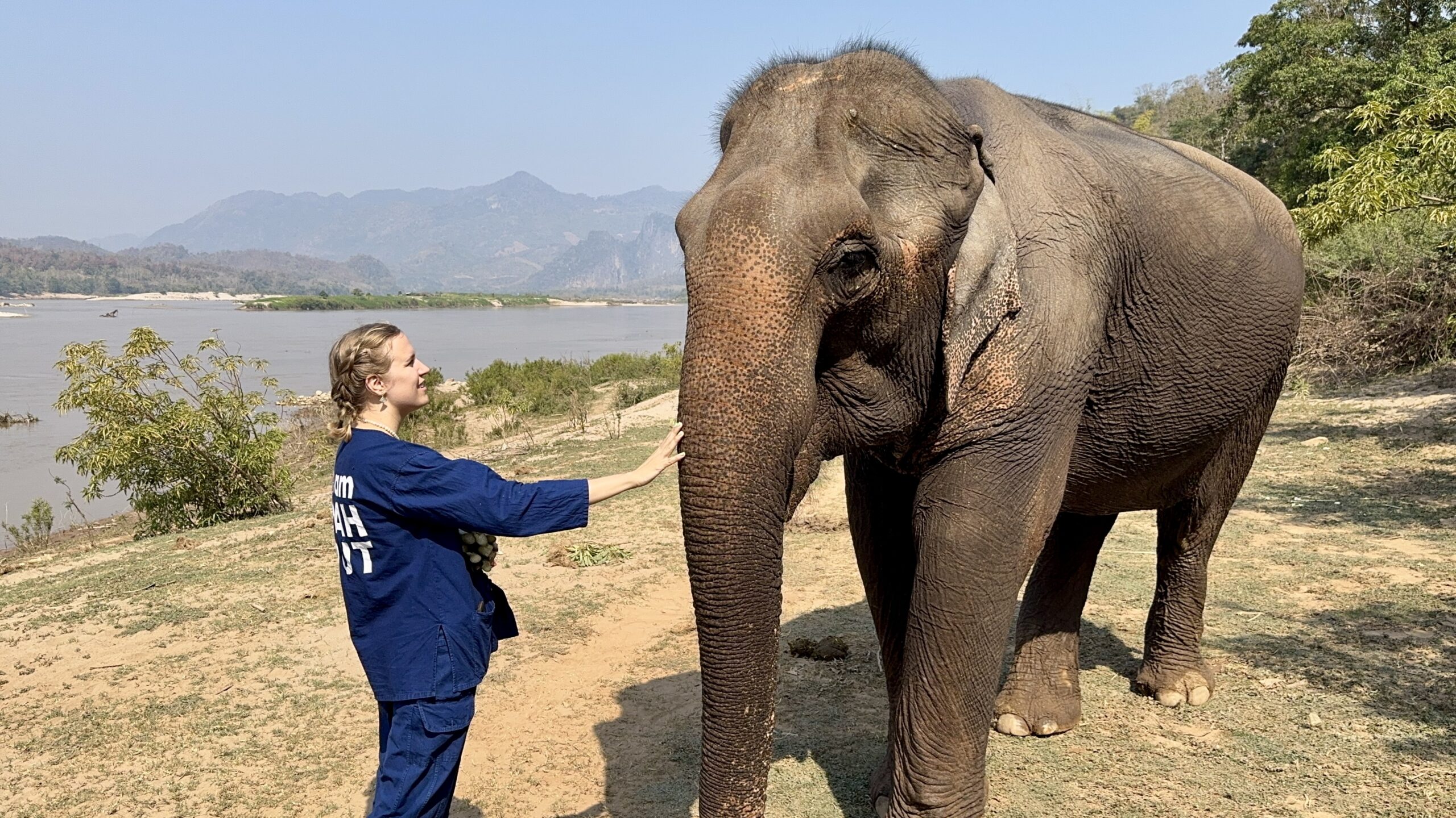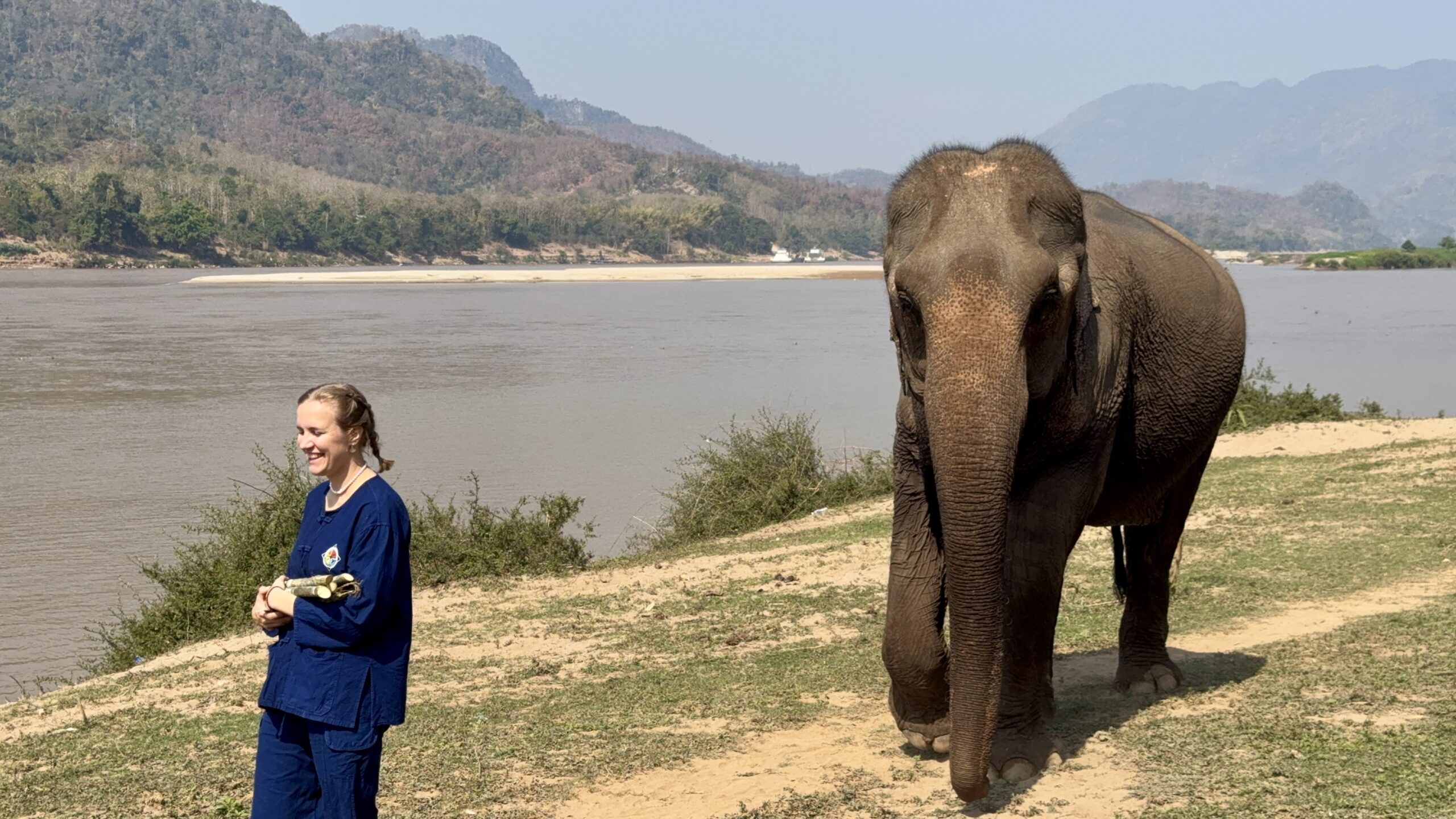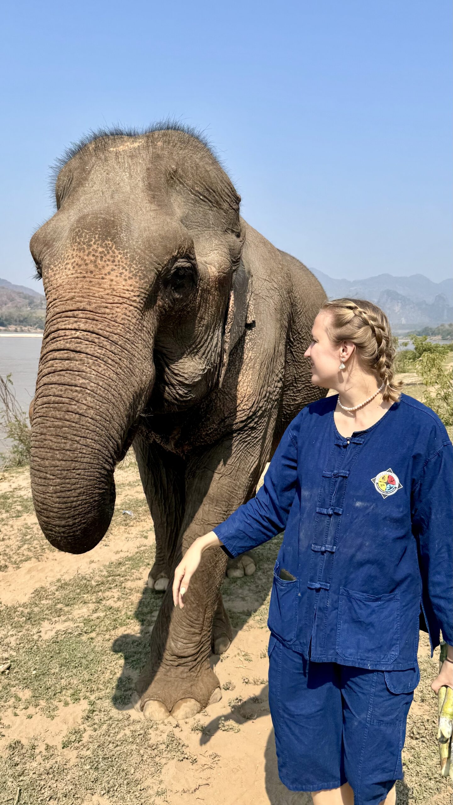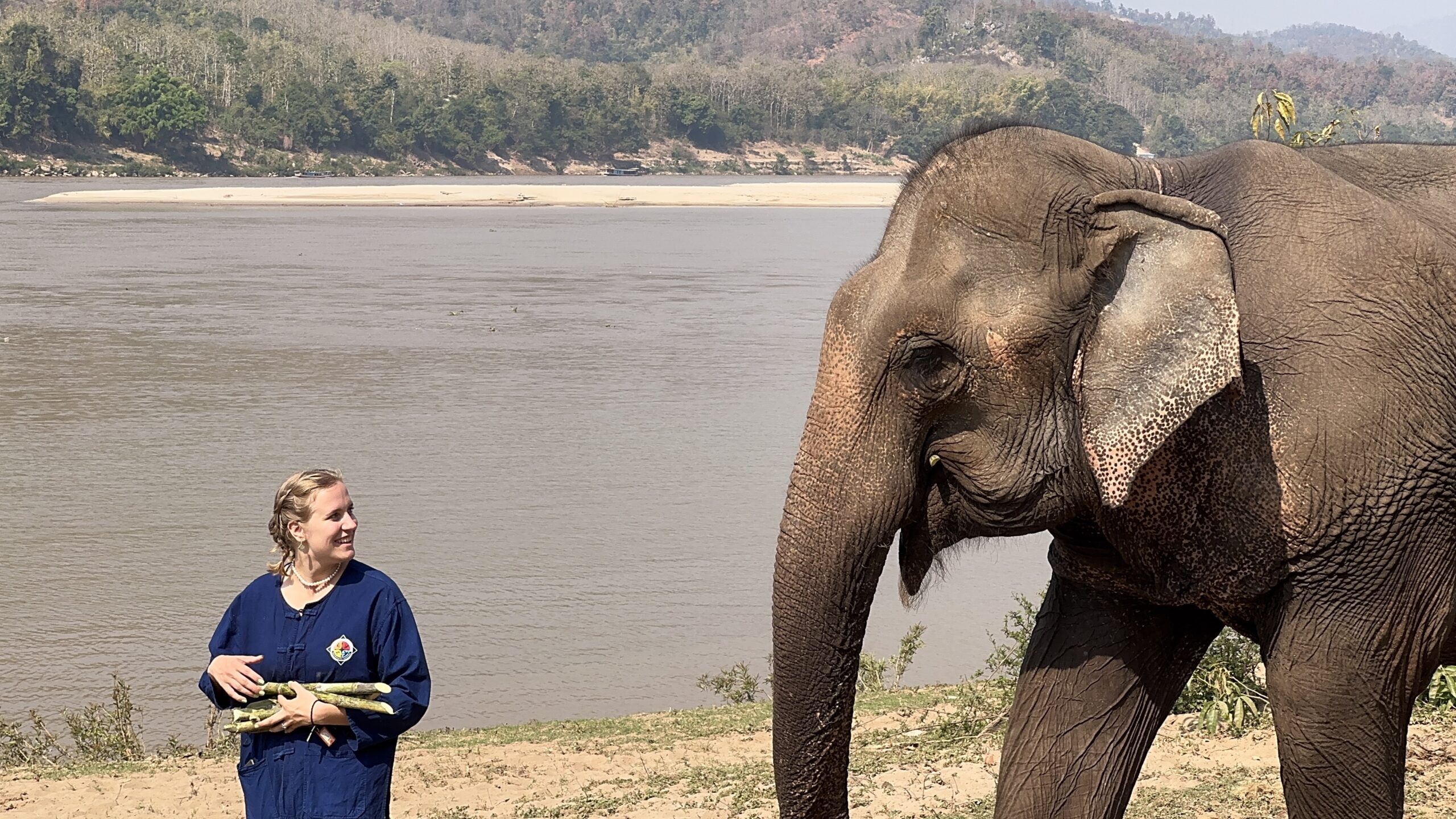 Es war eindrucksvoll, atemberaubend und wunderschön, ihr gegenüberzustehen und ihr so nahe zu sein. Nach etwa 30 Minuten drehte sie sich um und lief den gleichen Weg zurück, den sie gekommen war – zum Mekong. Dort stieg sie mit ihren Füßen ins Wasser, und ein Pfleger goss ihr mit Eimern Wasser über den Körper.