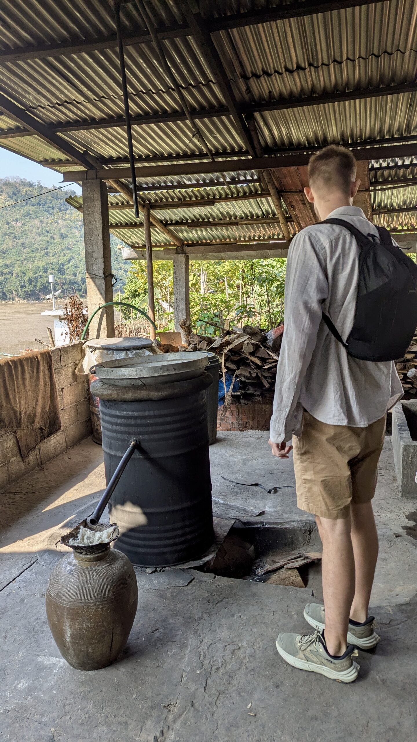 Unterwegs auf dem Mekong machten wir noch Halt bei einer Whiskybrennerei, die in einem kleinen Dorf ansässig war. Wisst ihr noch den Schnaps auf Cat Ba mit der Schlange drin? Ja, sowas gab es hier auch. Der Whisky mit der Schlange ist hier besonders für Männer geeignet, da er Stärke und Energie für den männlichen Körper verspricht. Sascha wagte sich sogar, den Whisky zu probieren, der hier mit 50 % Alkohol gebrannt wird (und das um 9 Uhr morgens!).