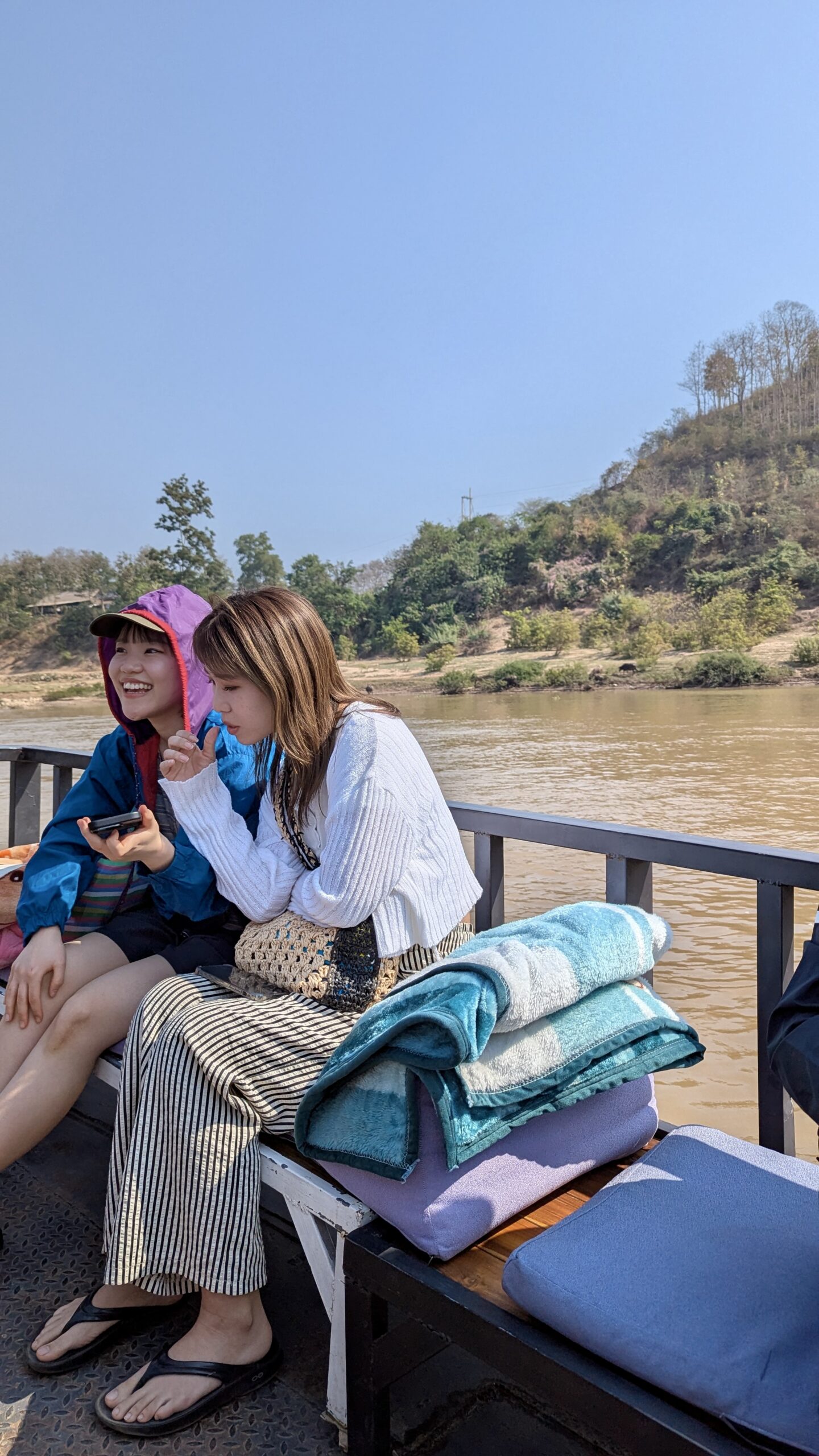 Wir buchten die Tour für den nächsten Tag und landeten mit drei Japanern und einigen Chinesen auf einem Boot, mit dem wir erstmal zwei Stunden über den Mekong schipperten. So hatten wir auch noch unsere Slowboat-Fahrt auf dem Fluss! 😉