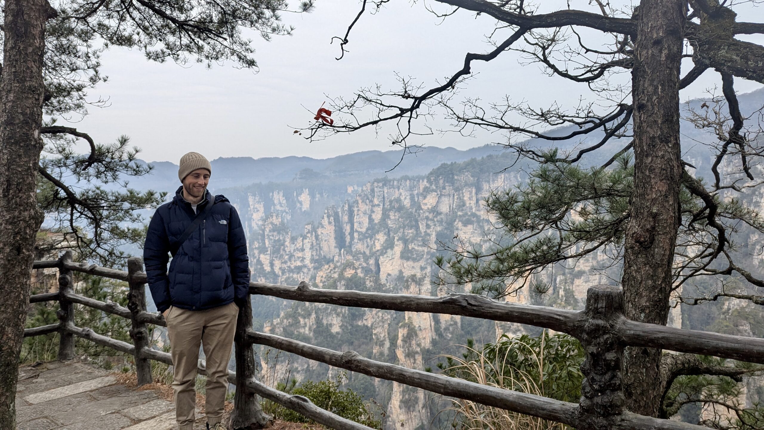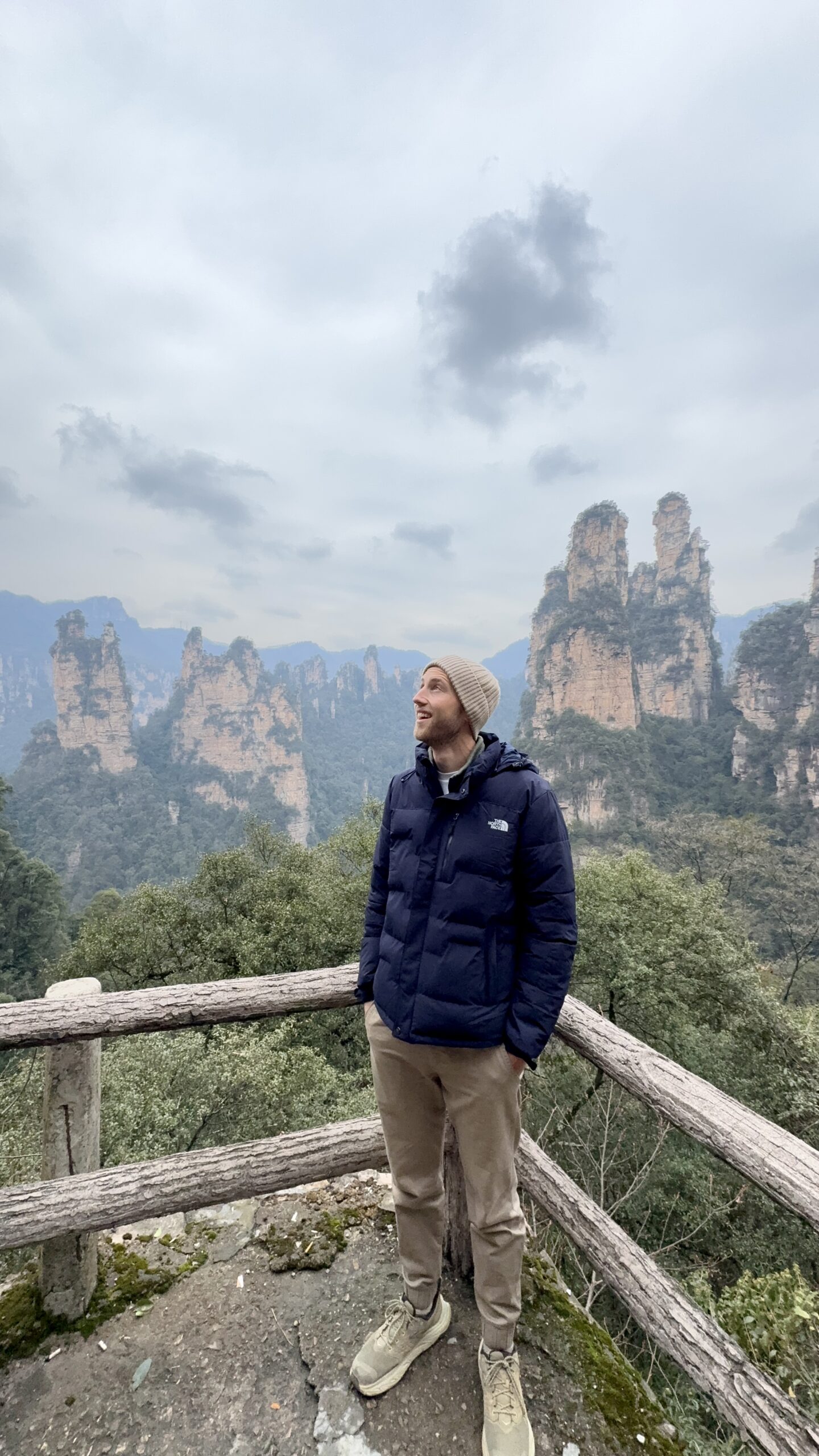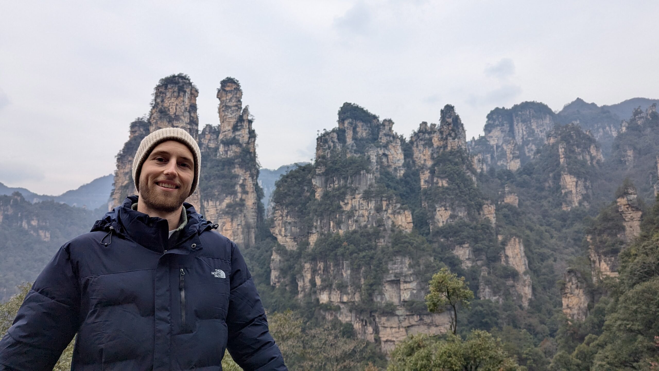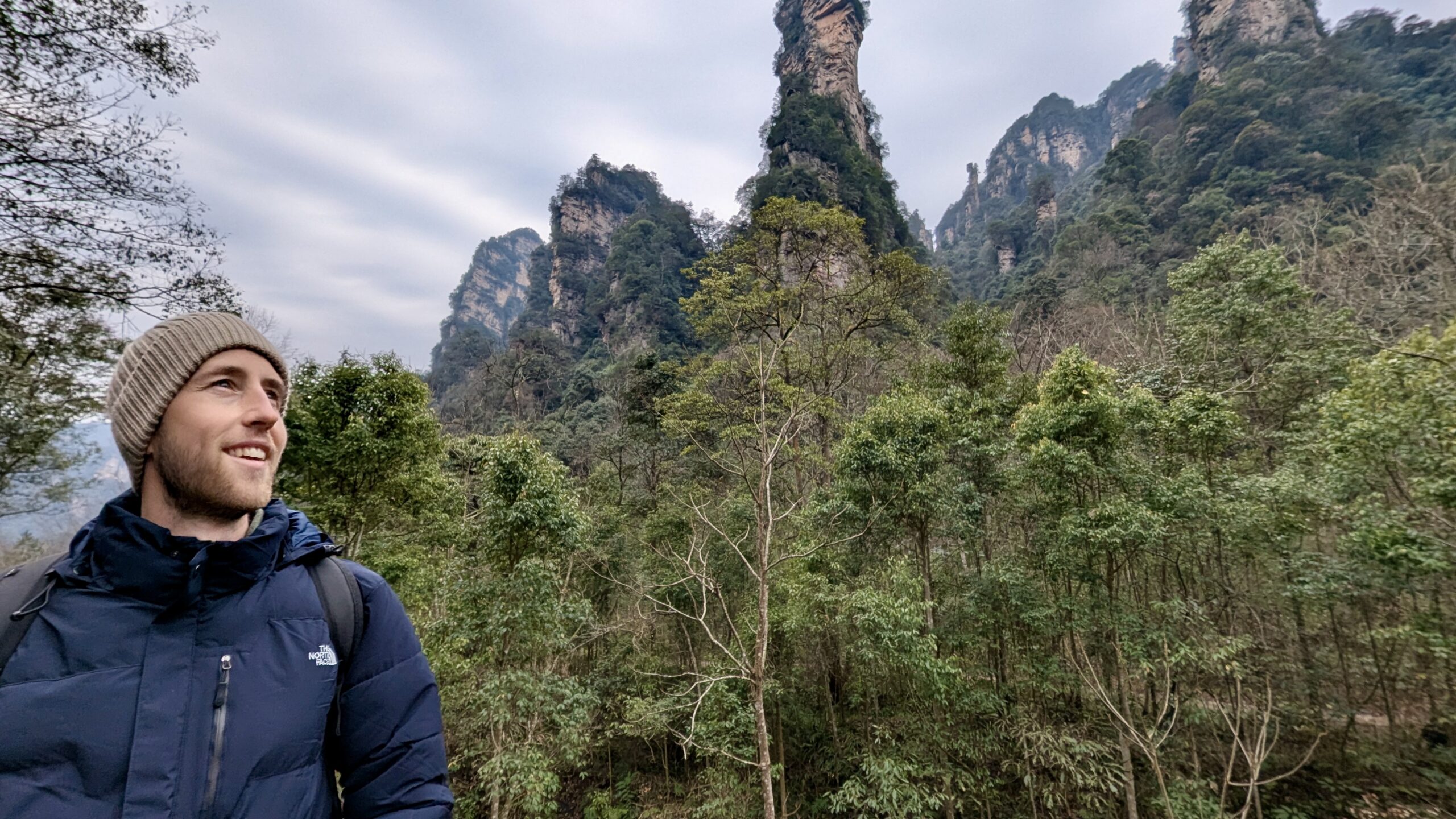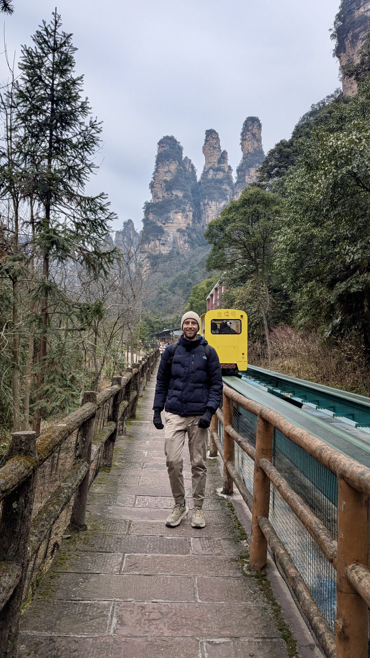 Unser Wecker klingelte an unserem ersten Morgen gegen 7 Uhr. Ich duschte kalt (das Wasser wurde einfach nicht warm 😢), und wir suchten uns im Supermarkt nebenan mit Hilfe eines Übersetzers etwas zu essen. Unser neues Lieblingsfrühstück wurden chinesische Madeleines. Außerdem deckten wir uns mit Wasserflaschen und Bananen ein und machten uns gegen 8:30 Uhr mit dem Taxi auf den Weg zum Nationalpark. Die Fahrt dauert etwa 40 Minuten und kostet mit dem Taxi ungefähr 12 €. Wir hatten bereits im Voraus einen Timeslot gebucht, mit dem wir zwischen 9 und 10 Uhr in den Nationalpark hineindurften.