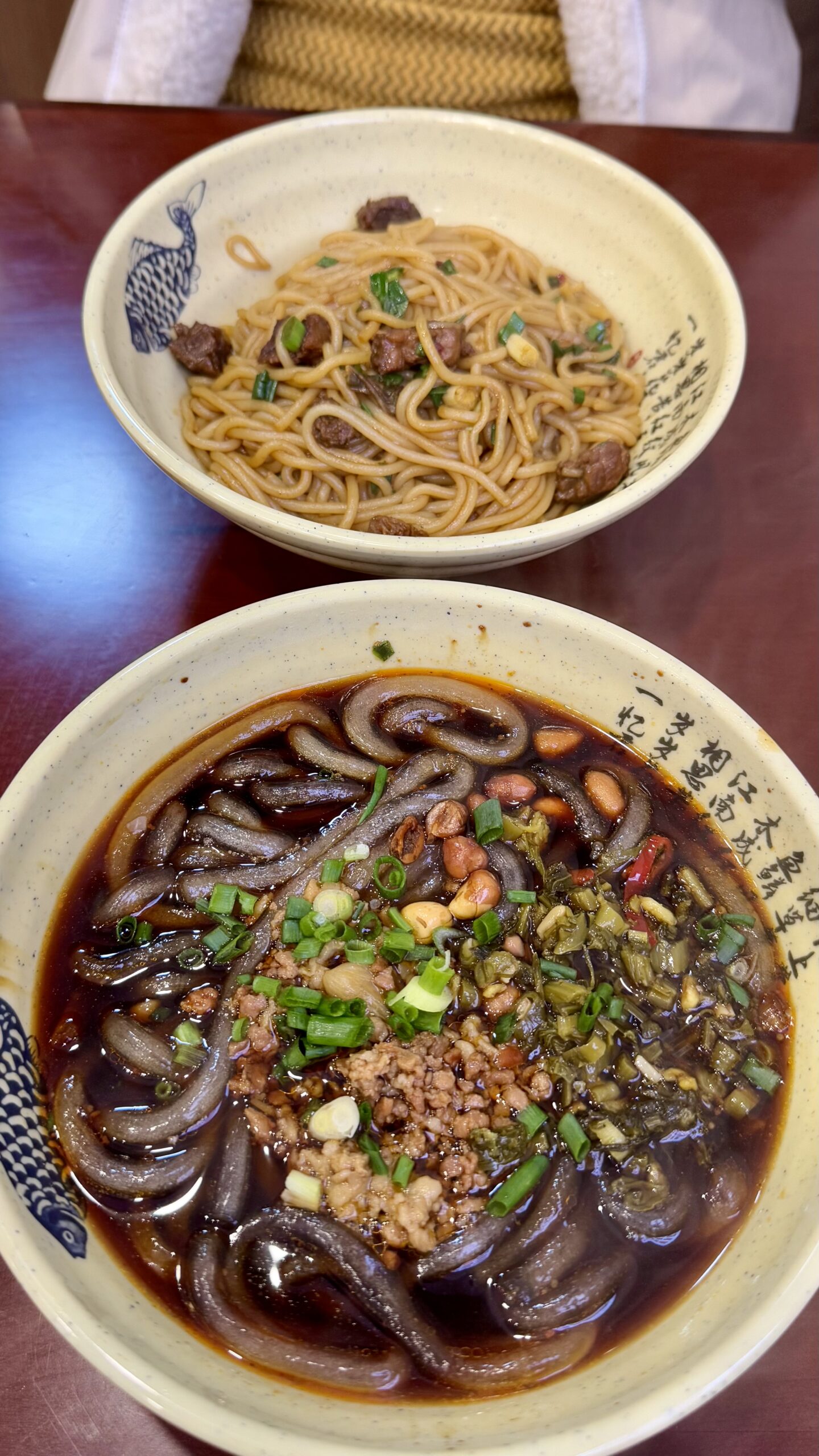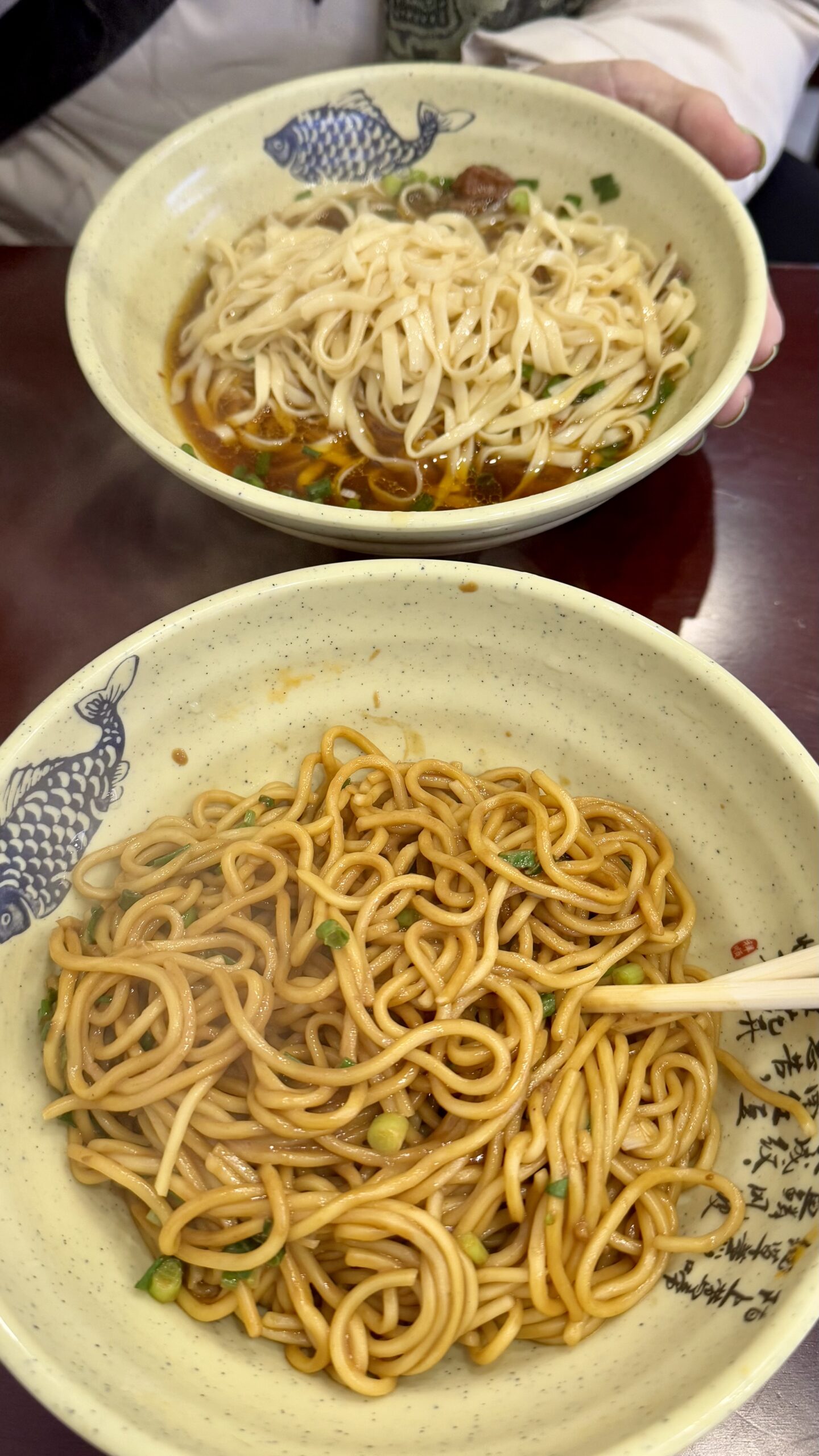 Für uns ging es anschließend nur noch in ein kleines Restaurant, wo wir Sesamnudeln und Rindfleischbrühe mit Nudeln fanden. Es war so lecker, dass wir erst mittags dort aßen – und dann abends gleich noch einmal zurückkehrten.