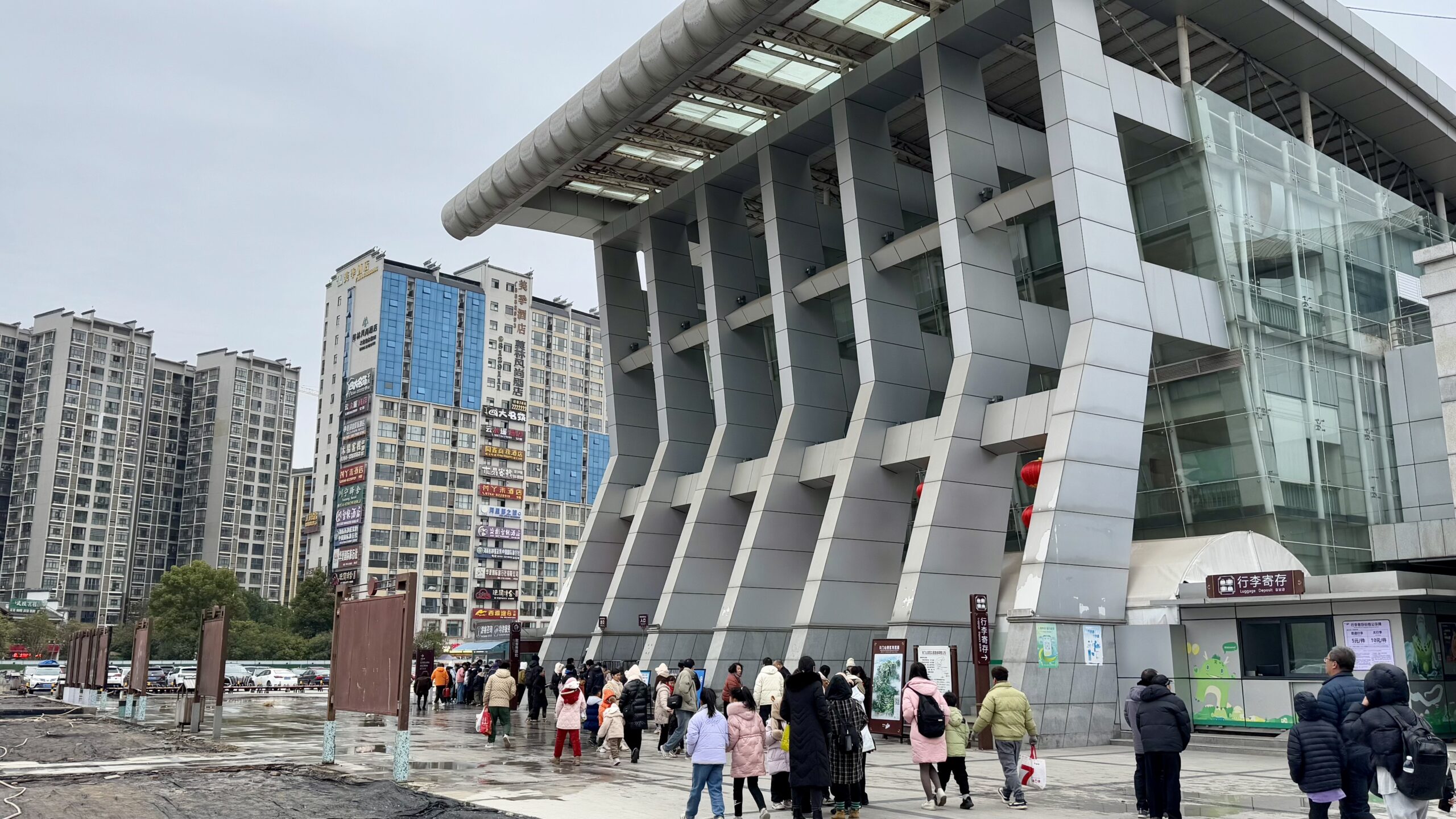 Am nächsten Morgen checkten wir bereits um 4:30 Uhr aus. Unser Ziel: der Westbahnhof der Stadt. Leider hatten wir keinen besseren Zug mehr buchen können, und so fuhr unsere Bahn bereits um 5:30 Uhr in die nächste Stadt – Chongqing.