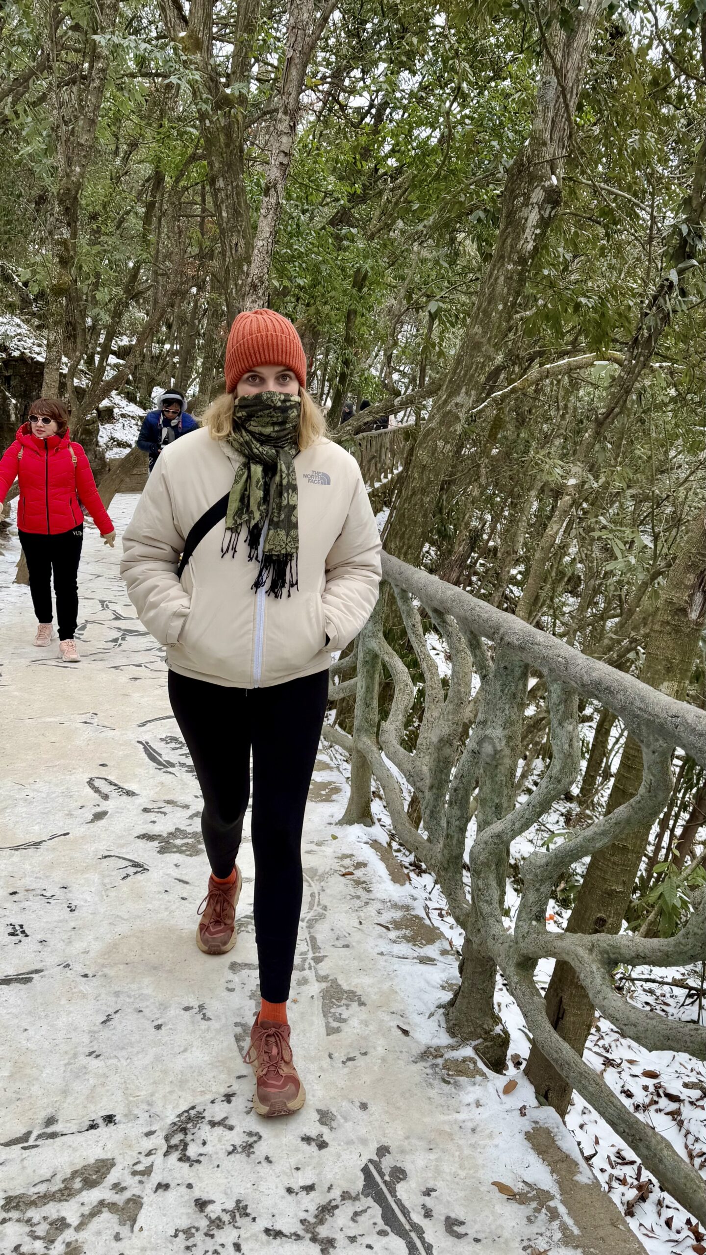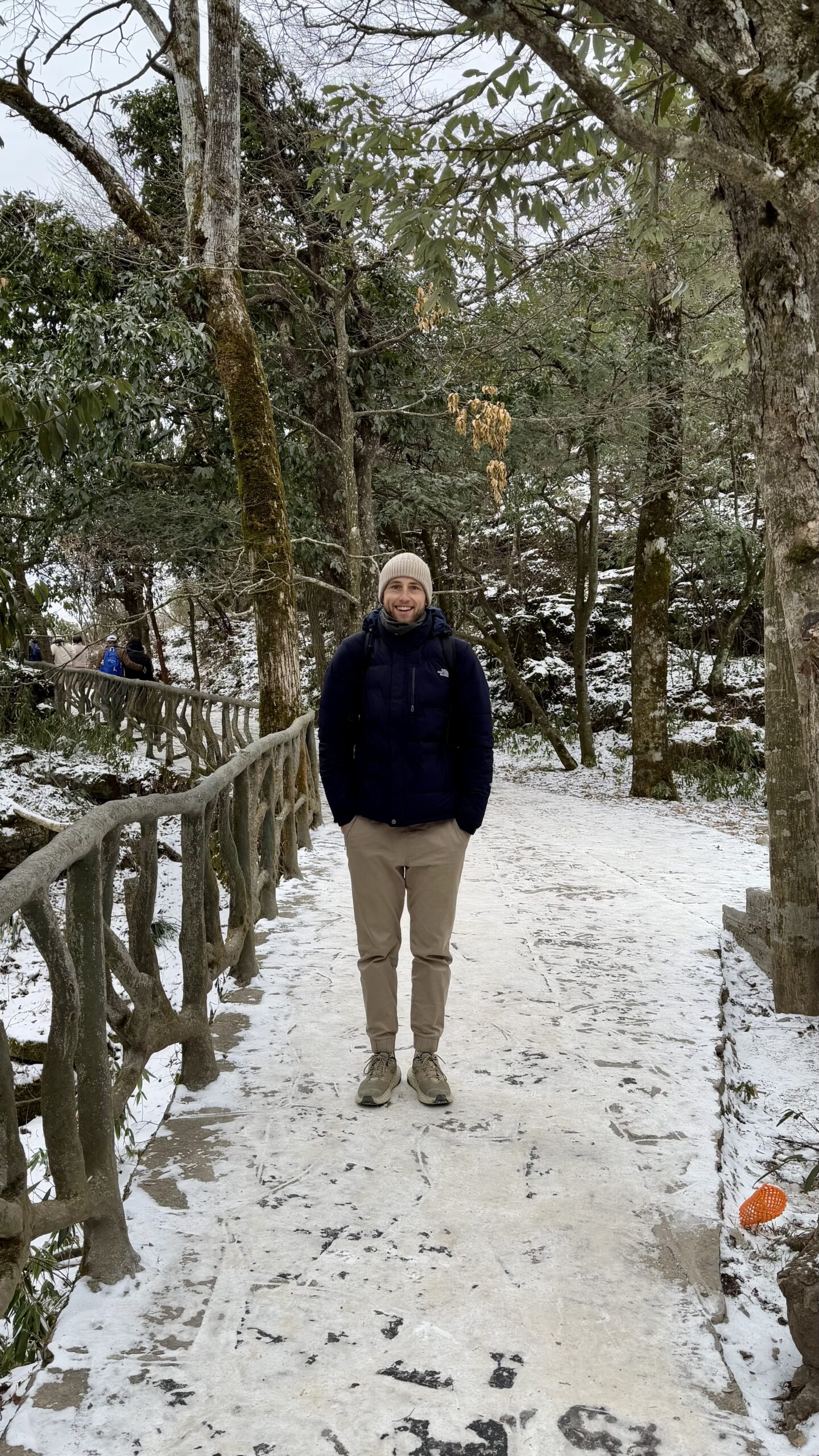 So standen wir also vor der Brücke – ohne Ticket. Neben uns zwei junge Chinesen, Anfang 20, die erst die Kontrolldame und dann uns ansahen, lachten und den Berg wieder hinaufliefen, um ein Ticket zu kaufen. Wir folgten ihnen, wenn auch etwas langsamer und vorsichtiger – wegen des besagten Glatteises. Kurz vor dem Ticketstand kamen uns die beiden Jungs schon wieder entgegen, wedelten aufgeregt mit ihren Tickets und drückten sie uns prompt in die Hand. Auch wenn sie kein Wort Englisch sprachen, war sofort klar: Sie hatten uns einfach den Eintritt von 1,50 € bezahlt!