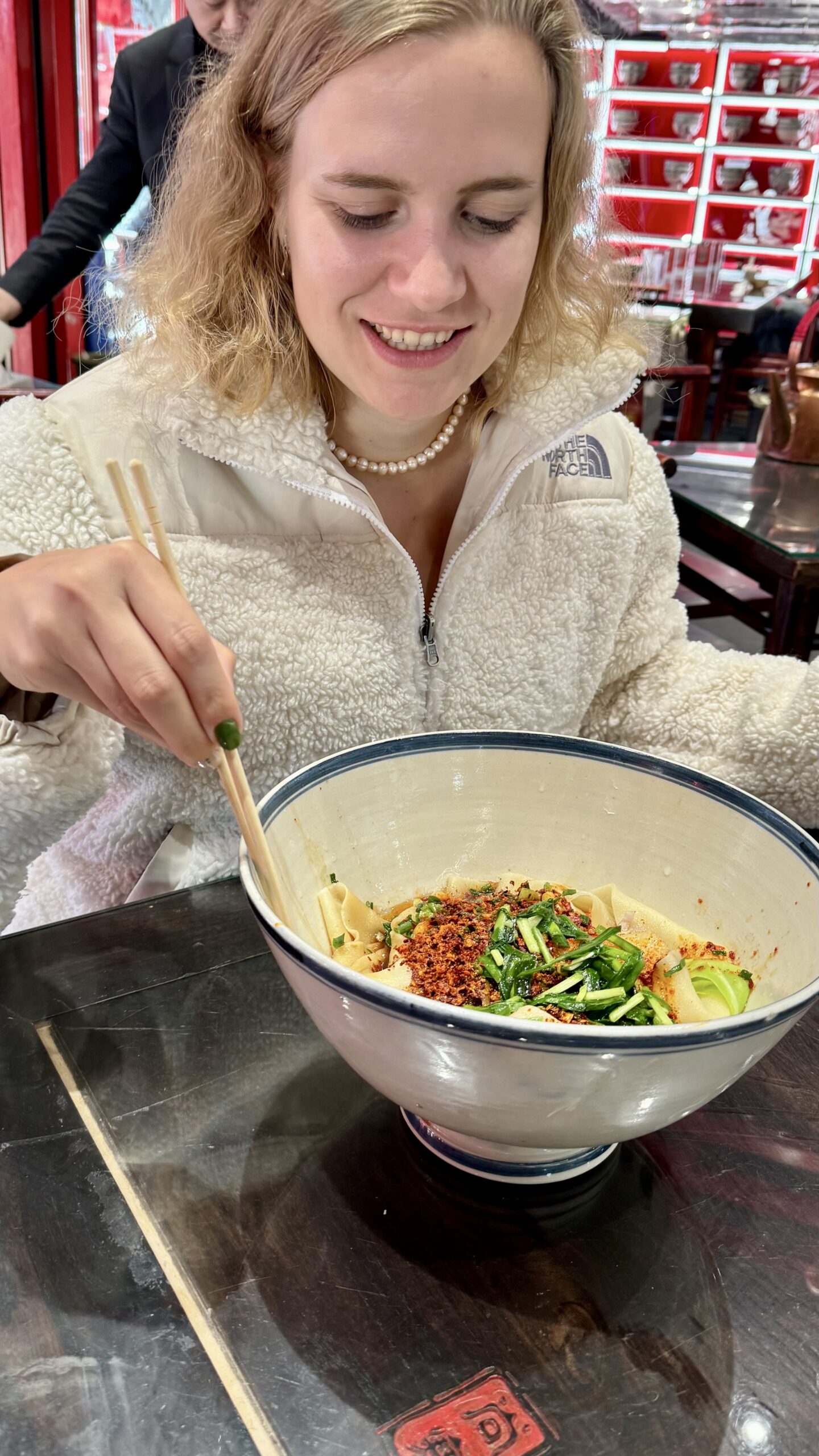 Als kleines Dankeschön für ihre Gastfreundschaft luden wir sie kurzerhand zum Essen ein. Natürlich versicherten sie uns gefühlt tausendmal, dass sie uns das zurückzahlen würden – doch wir winkten lachend ab. Schließlich hatten sie uns so viel von der Stadt und den vielen Facetten Chinas gezeigt, dass wir keinen besseren Weg sahen, uns zu revanchieren, als mit einem gemeinsamen Essen.