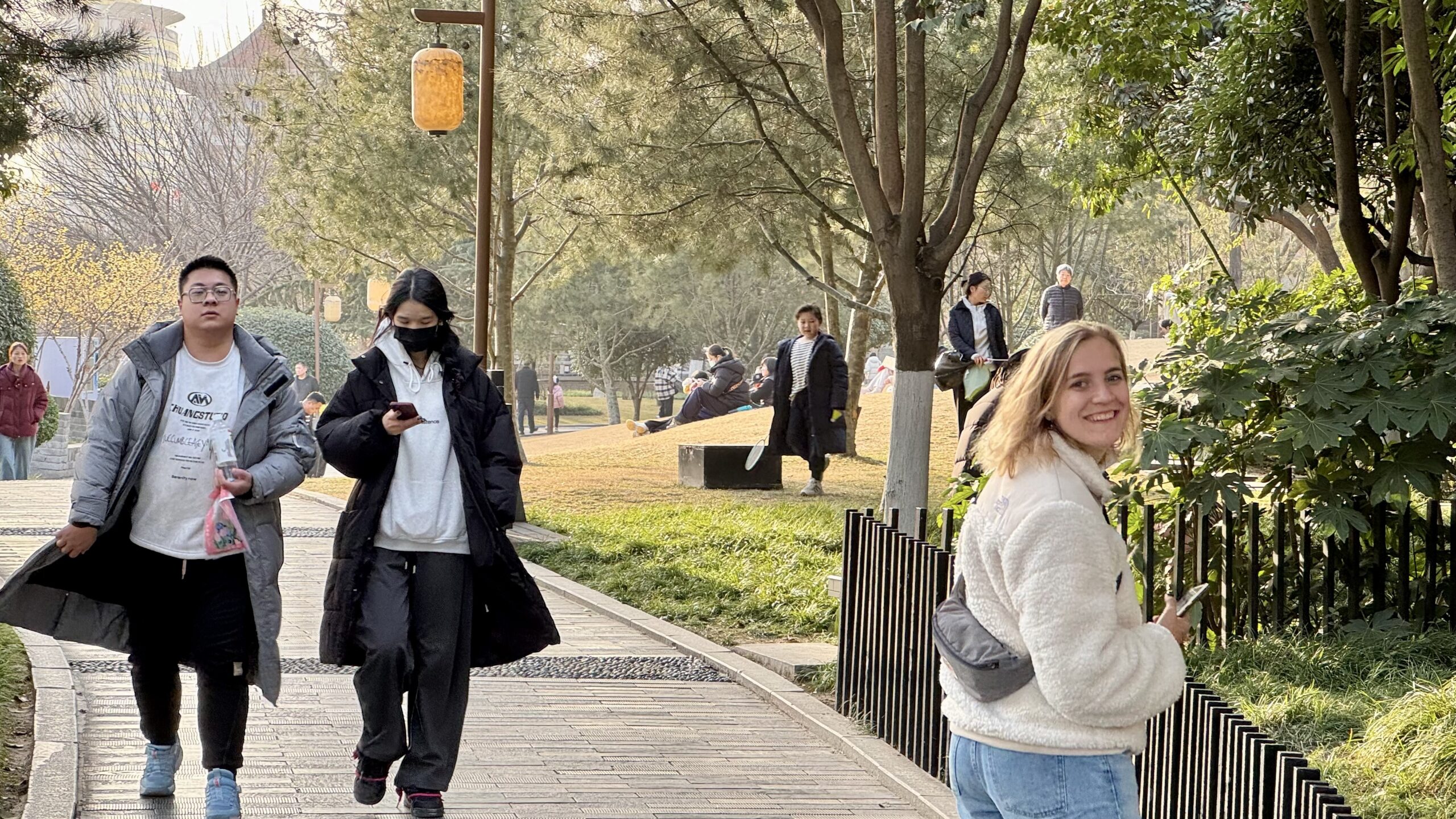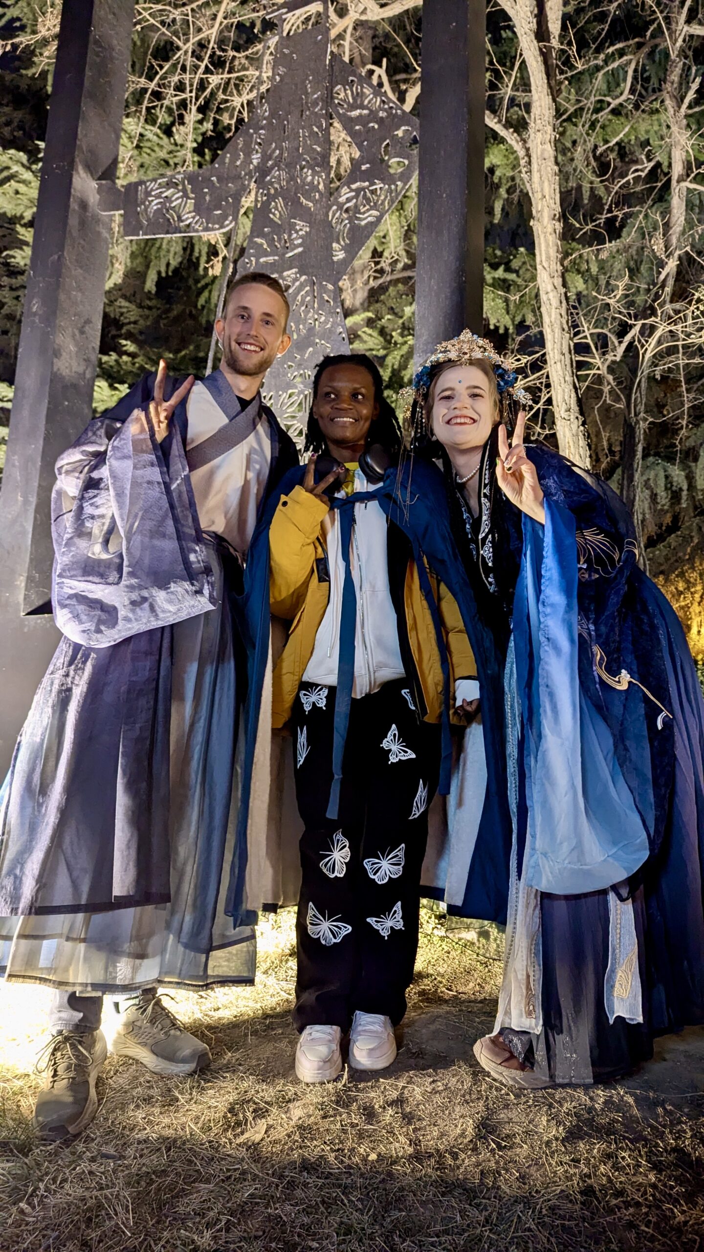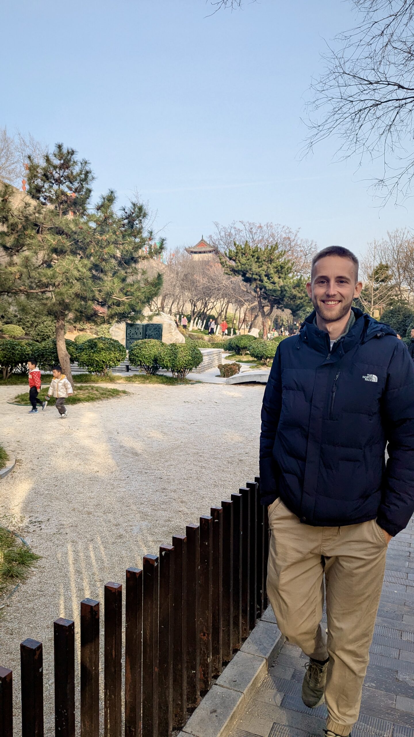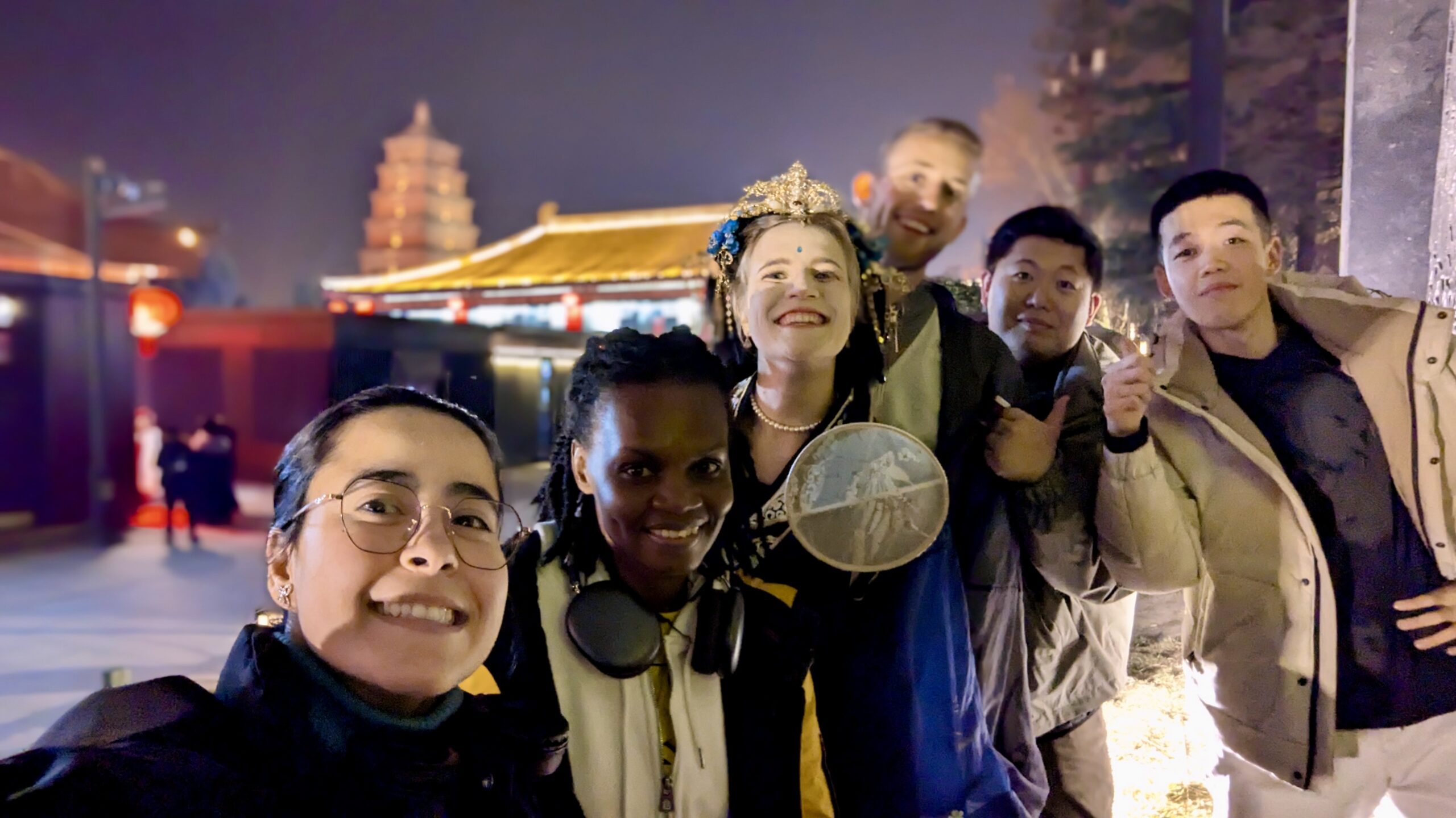 Ein Fotograf führte uns zu verschiedenen Fotospots und lichtete uns in unterschiedlichen – manchmal für unseren Geschmack etwas zu albernen – Posen ab. Azza, Jasmine, Wang und Xinyang waren dabei unsere größten Anfeuerer und trugen geduldig unsere Jacken und Taschen mit sich herum. Natürlich durfte ein gemeinsames Foto am Ende nicht fehlen! Mehr als einmal wurden wir auch von anderen in traditionelle Hanfus gekleideten Menschen nach gemeinsamen Bildern gefragt.