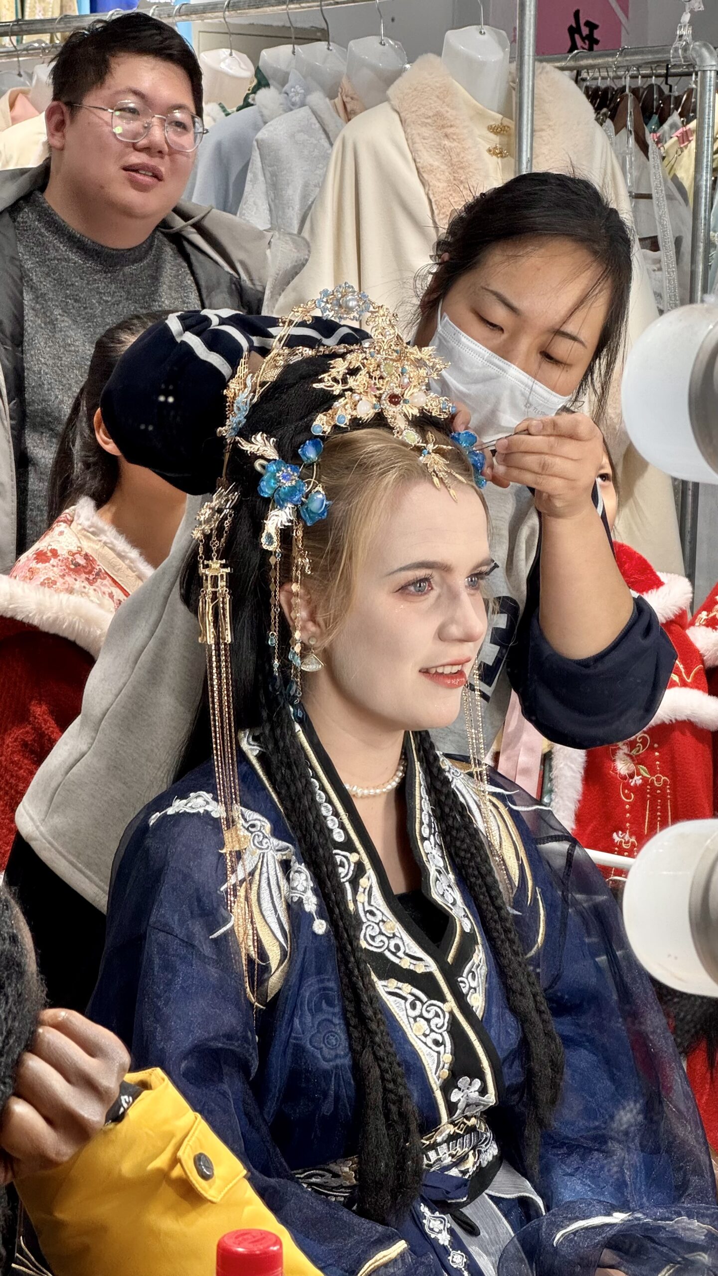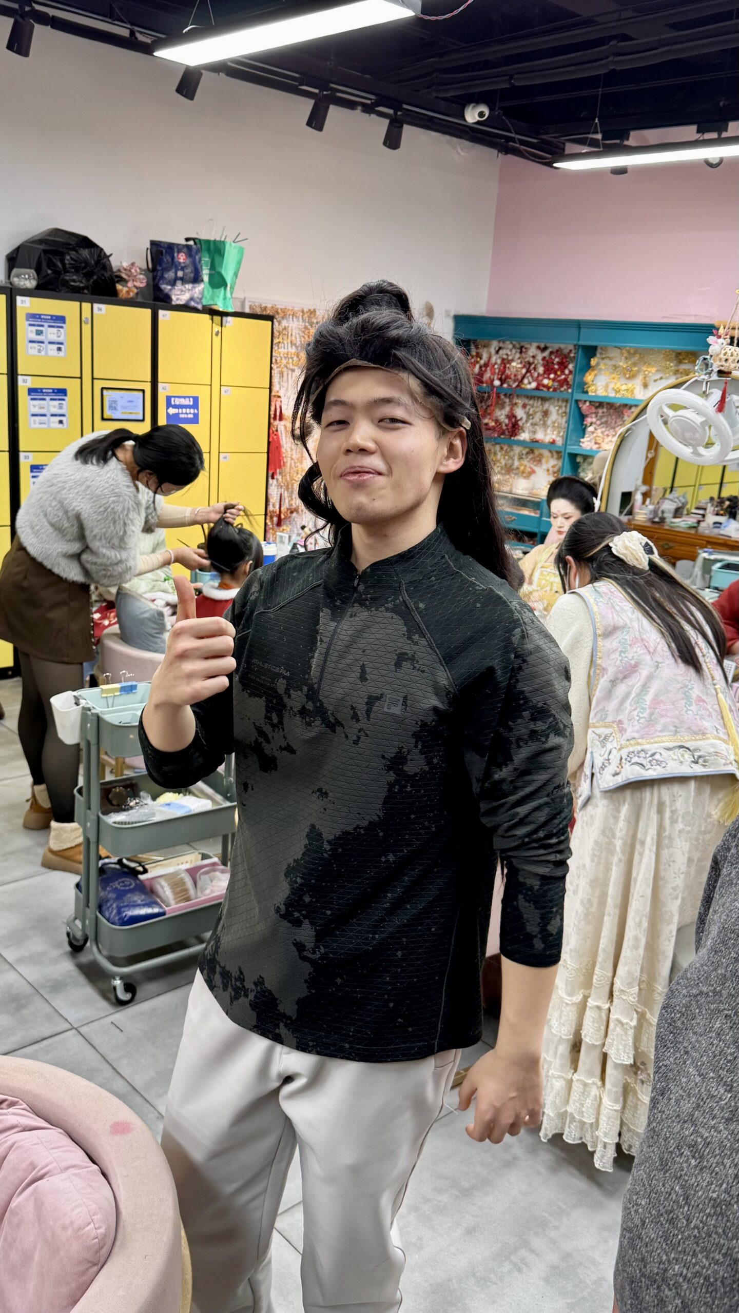 Schon in Chengdu hatte ich viele junge Frauen in traditionellen Hanfu-Gewändern gesehen, die vor Wahrzeichen posierten. Und irgendwie wollte ich das auch mal ausprobieren. Wang kannte zum Glück einen guten Laden, in dem man sich Hanfus aus verschiedenen Dynastien aussuchen und sich dazu passend stylen lassen konnte.