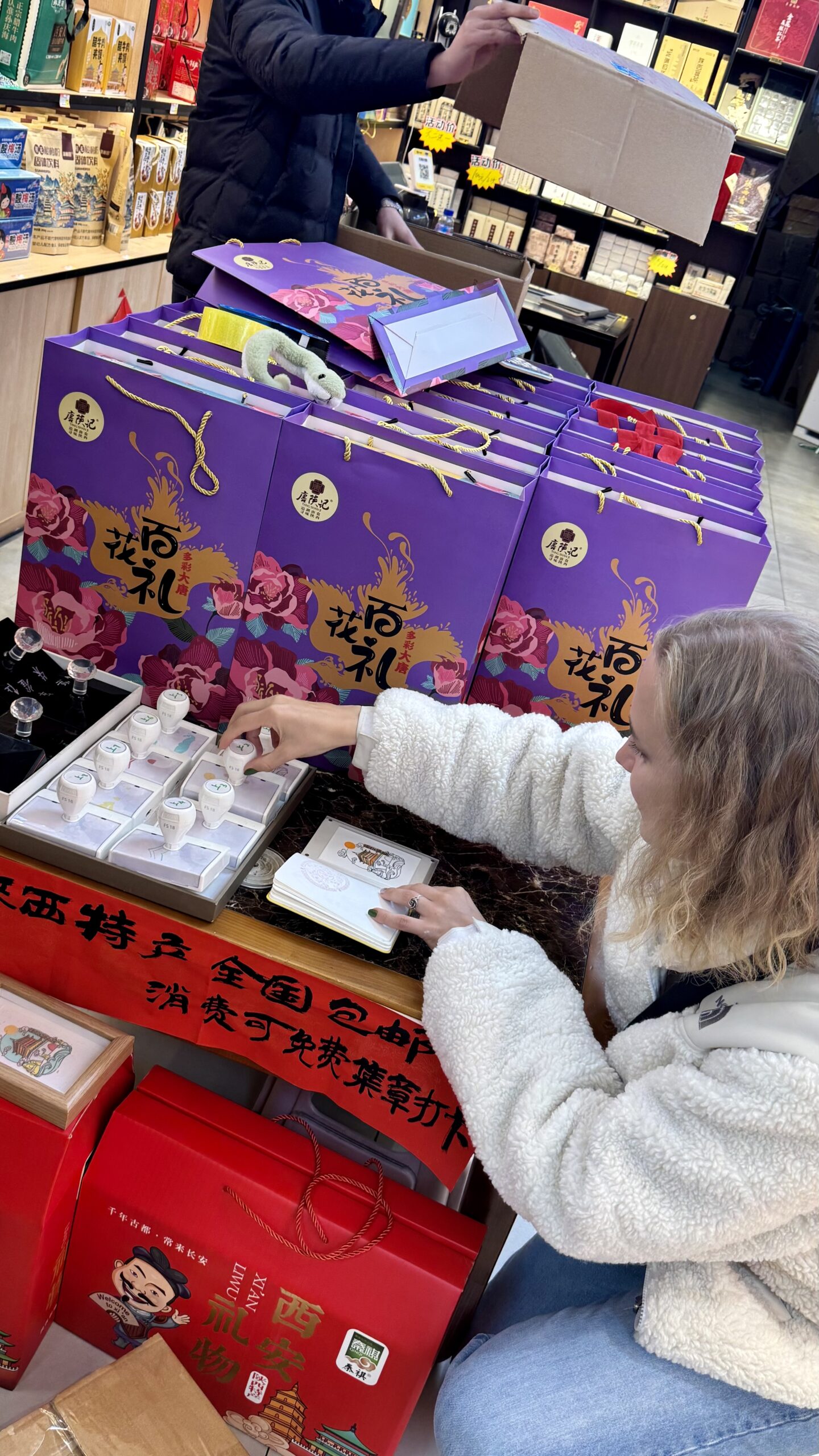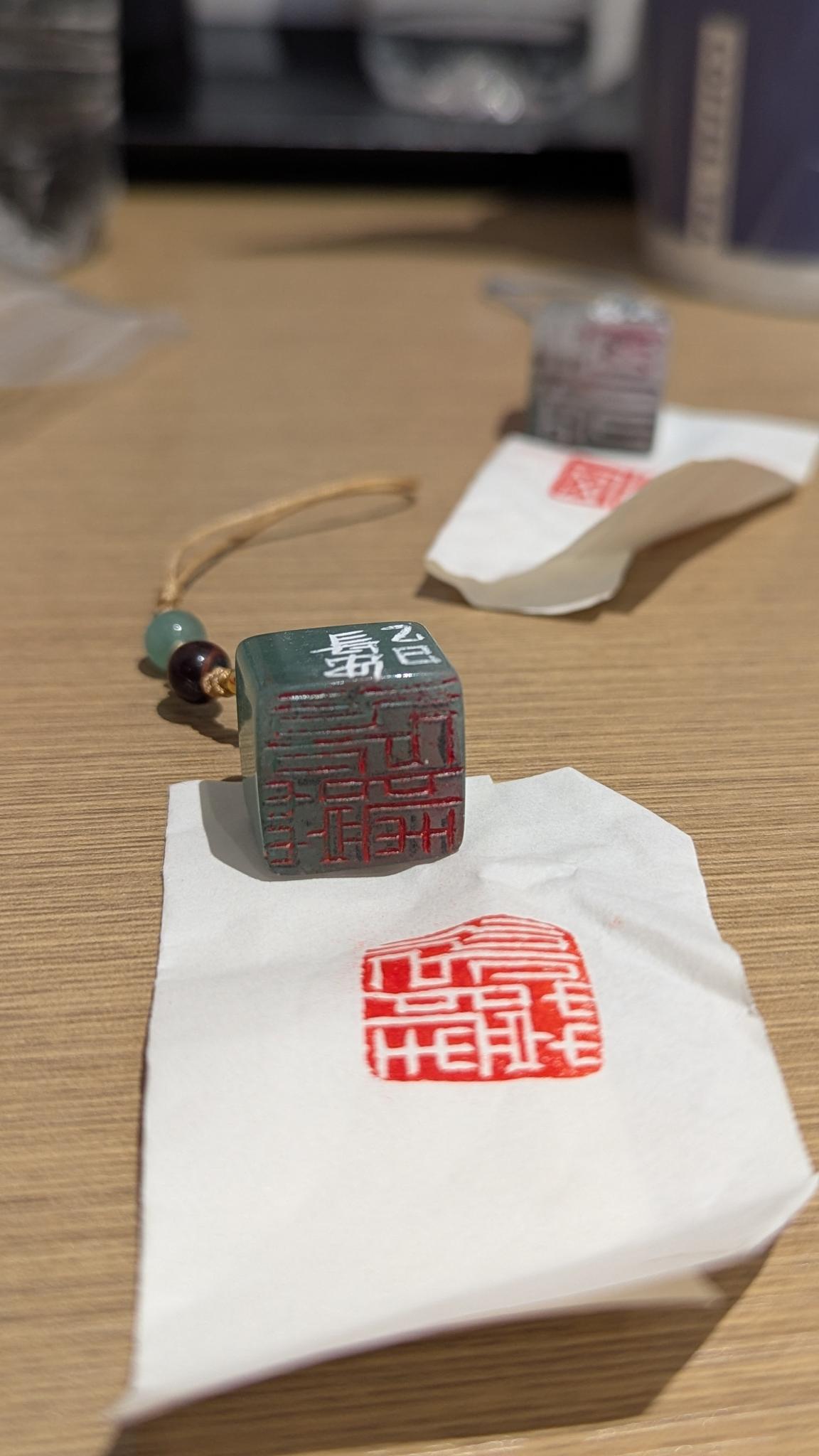 Xinyang fand schließlich einen Laden, in dem man Stempel aus Stein mit individuellen Gravuren anfertigen lassen konnte. Er suchte einen schönen Stempel für seine Freundin aus und fragte uns dabei nach unserer Meinung. Als Sascha und ich ihm zwei besonders schöne Stempel zeigten, nahm er sie kurzerhand beide – nicht für sich, sondern für uns. Dann bat er Jojo, unsere chinesischen Namen auf Papier zu schreiben, denn er wollte uns die Stempel als Erinnerung an diese wundervollen drei Tage in Xi’an schenken. Wir waren gerührt und suchten gemeinsam mit Jojo unsere chinesischen Namen heraus, bevor es hieß, dass wir in 60 Minuten wiederkommen sollten.