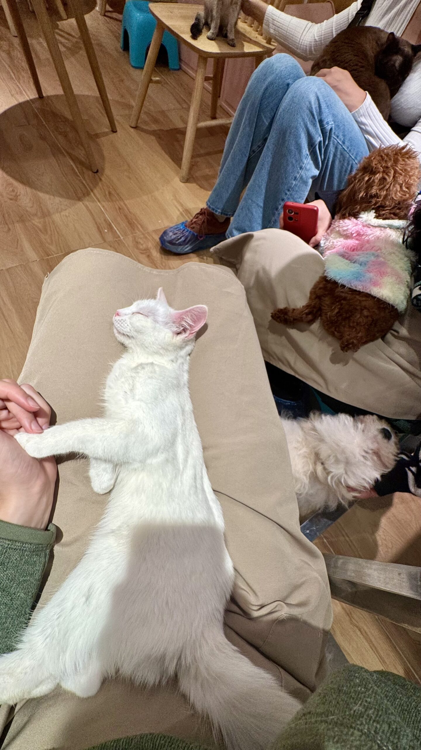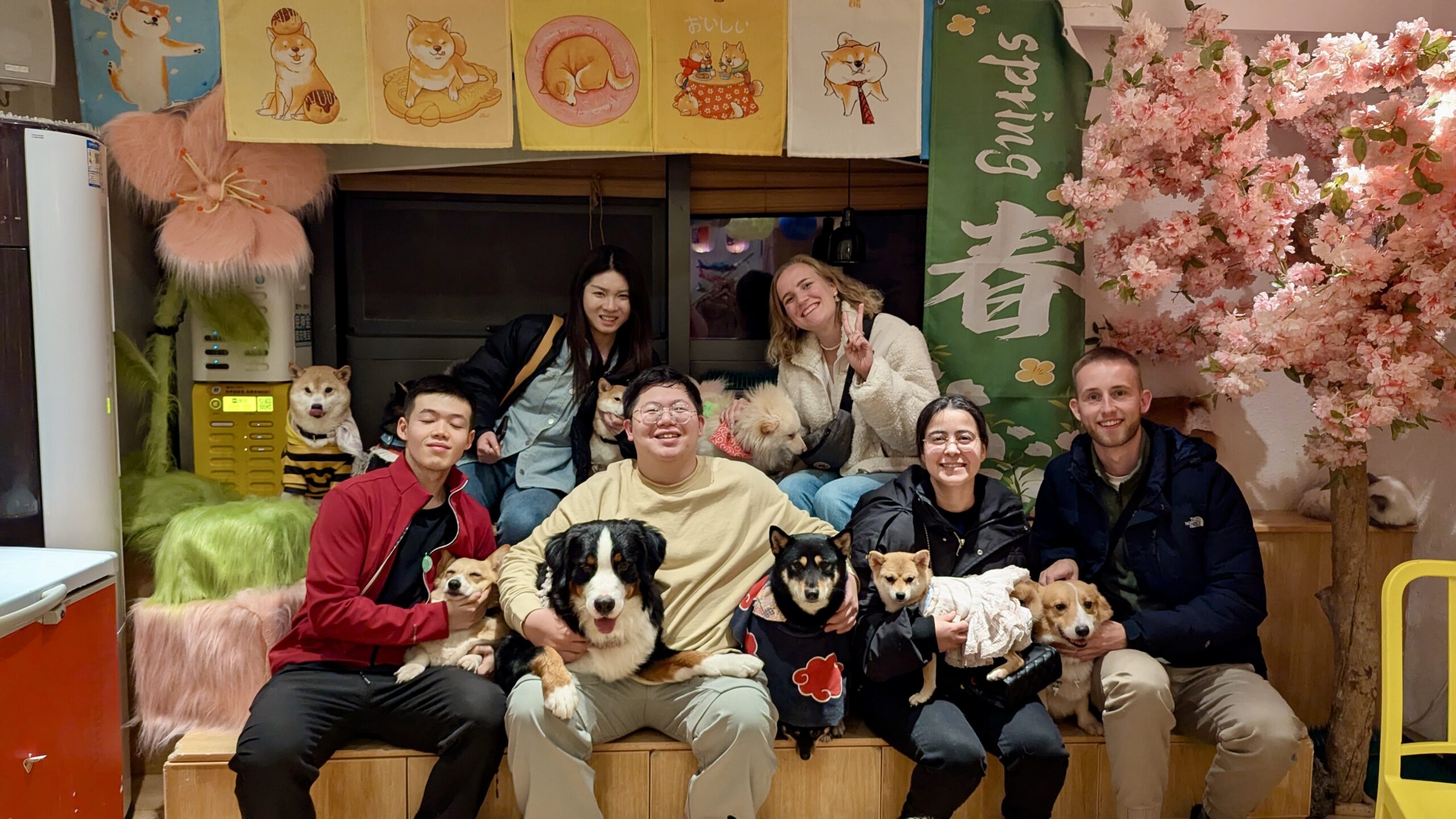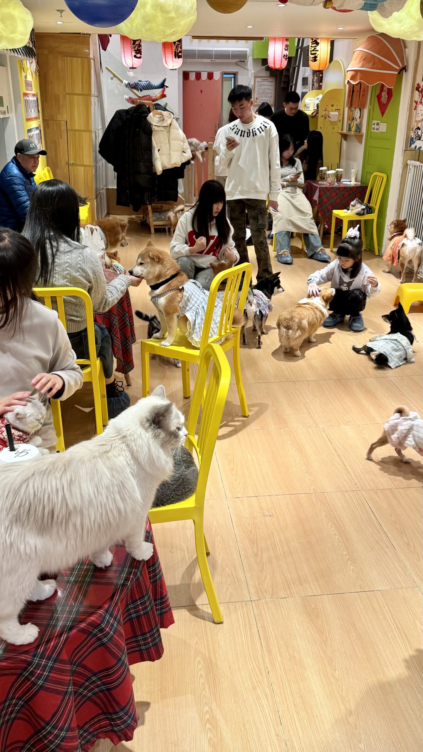 Unsere Verabredung führte uns in ein Hundecafé. Wang brachte heute noch Jojo mit, eine Freundin von ihm, die nach einer frischen Trennung ein wenig Ablenkung brauchte. Und was könnte da besser sein als zwei deutsche Touristen, die kein Wort Chinesisch sprechen, und ein paar süße Hundebabys?