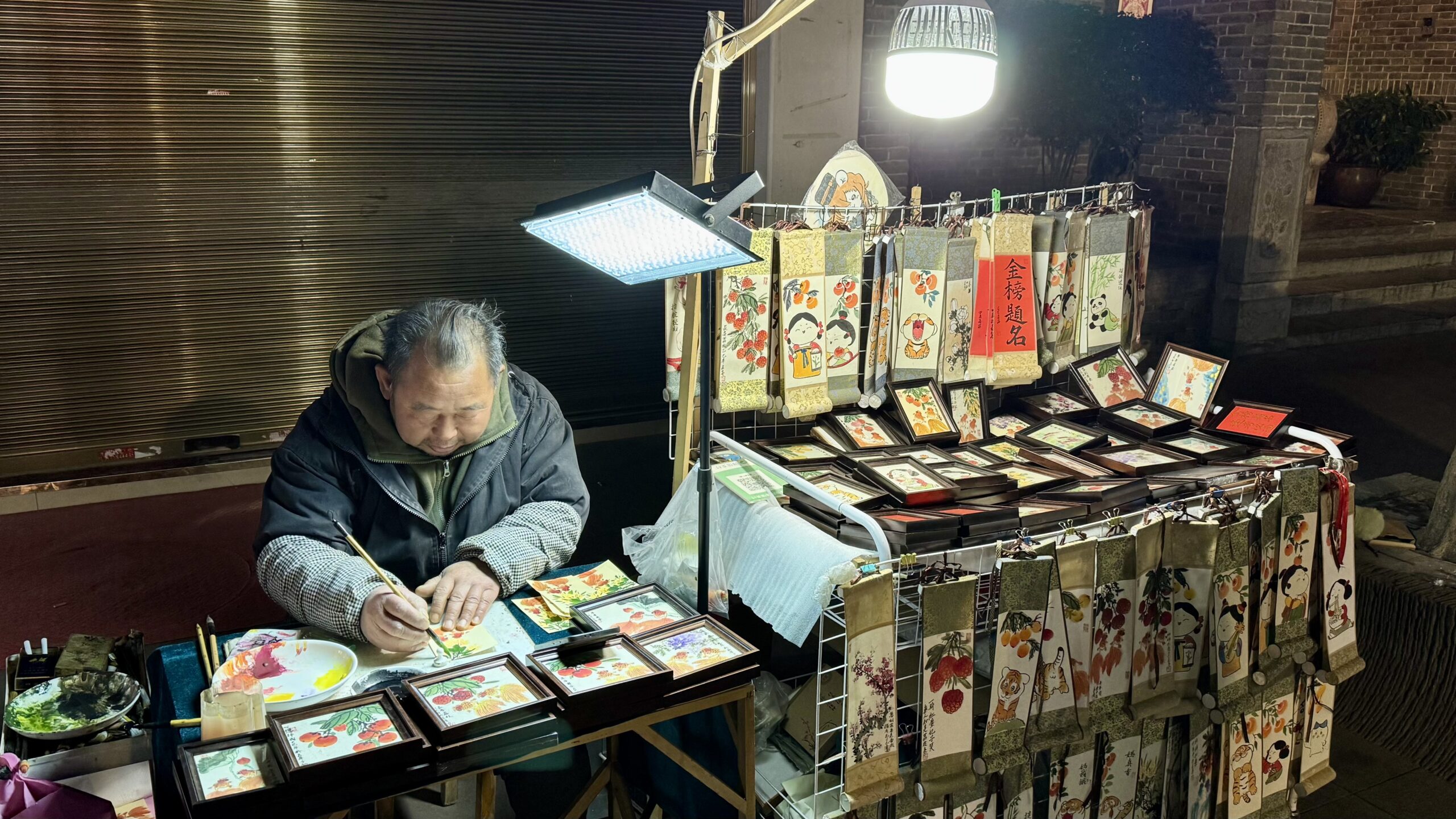 Während wir noch überlegten, was wir am Abend unternehmen könnten, nahm Xinyang uns die Entscheidung kurzerhand ab: Er brauchte noch ein zweites Geschenk für seine Freundin und wollte ins Künstler- und Bücherviertel von Xi’an. Da wir beim letzten Mal nur die geschlossenen Läden gesehen hatten, waren wir sofort dabei!