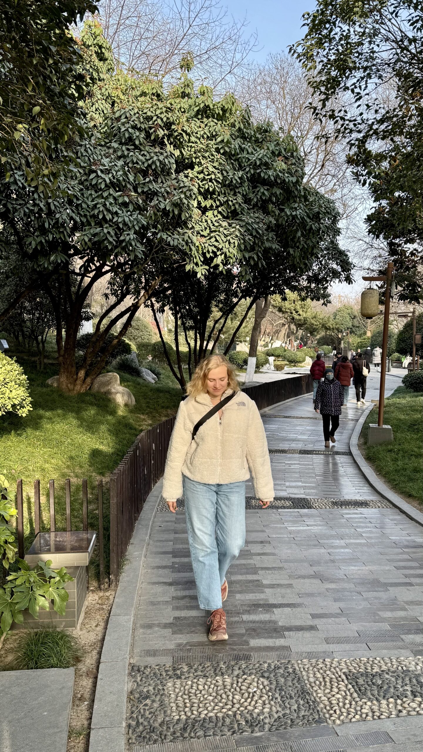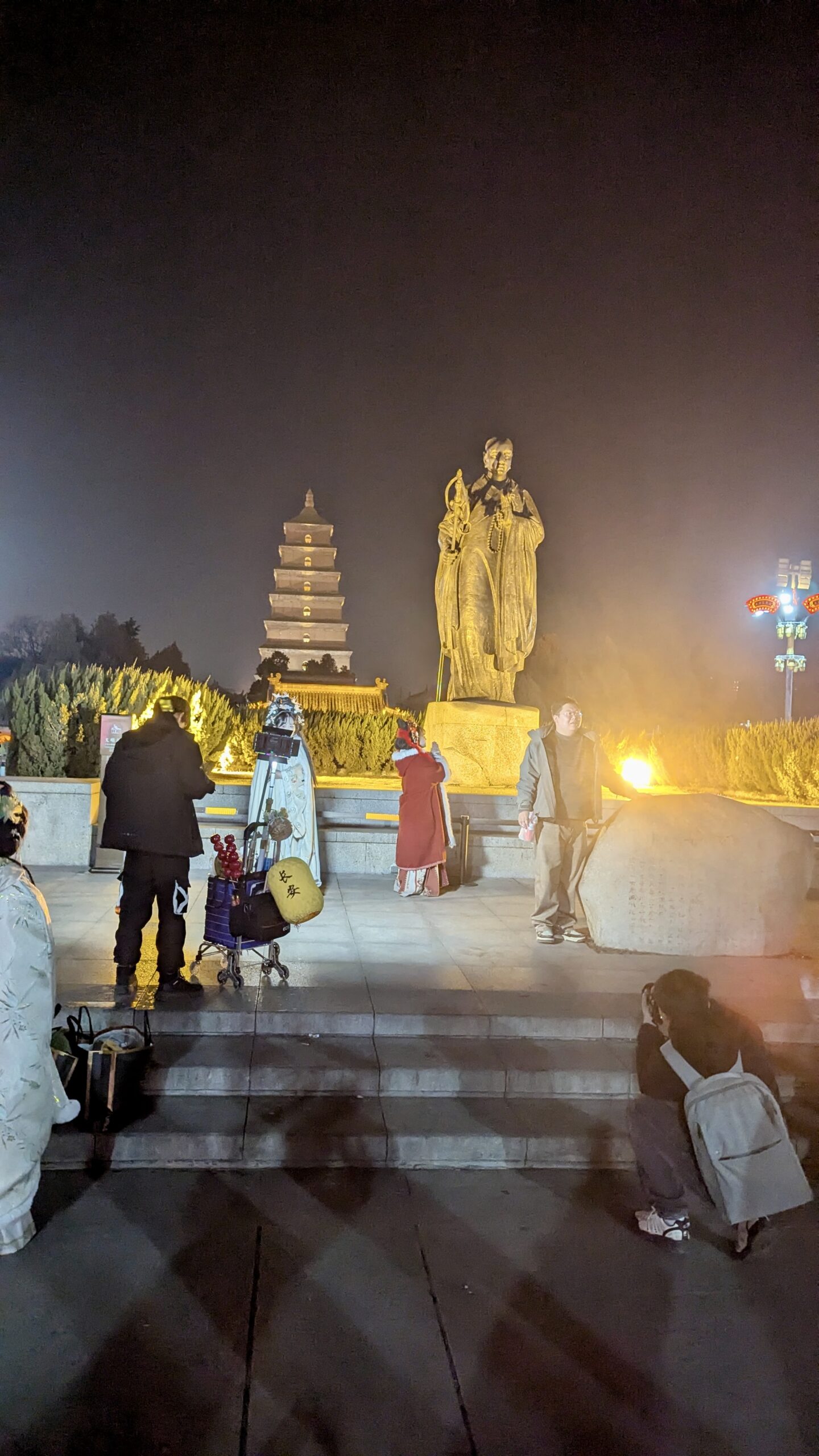 Nachdem Azza und Jasmine zurück zur Uni mussten, nahmen Wang und Xinyang uns in Beschlag. Wieder in unseren normalen Klamotten – wenn auch ich noch mit dem ganzen Make-up im Gesicht – führten sie uns durch die Stadt und zeigten uns die berühmten Anfänge der Seidenstraße.