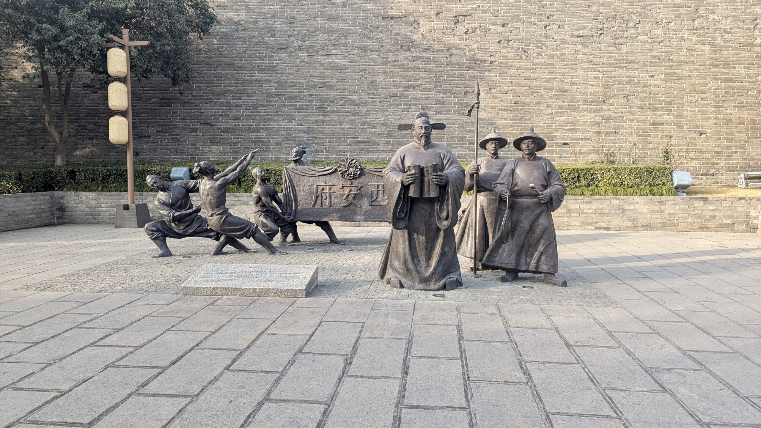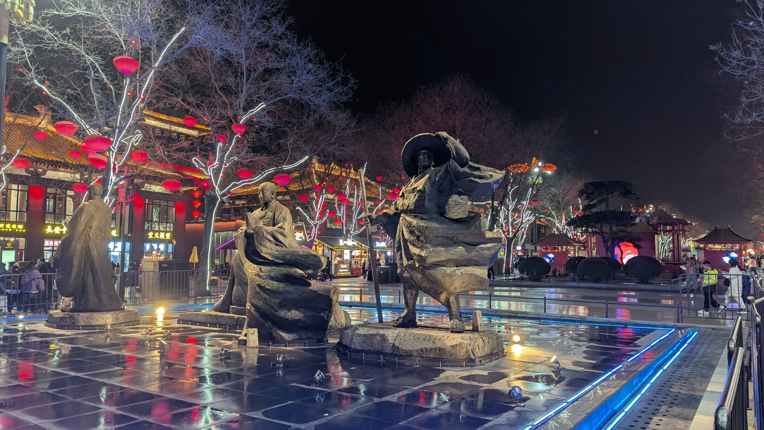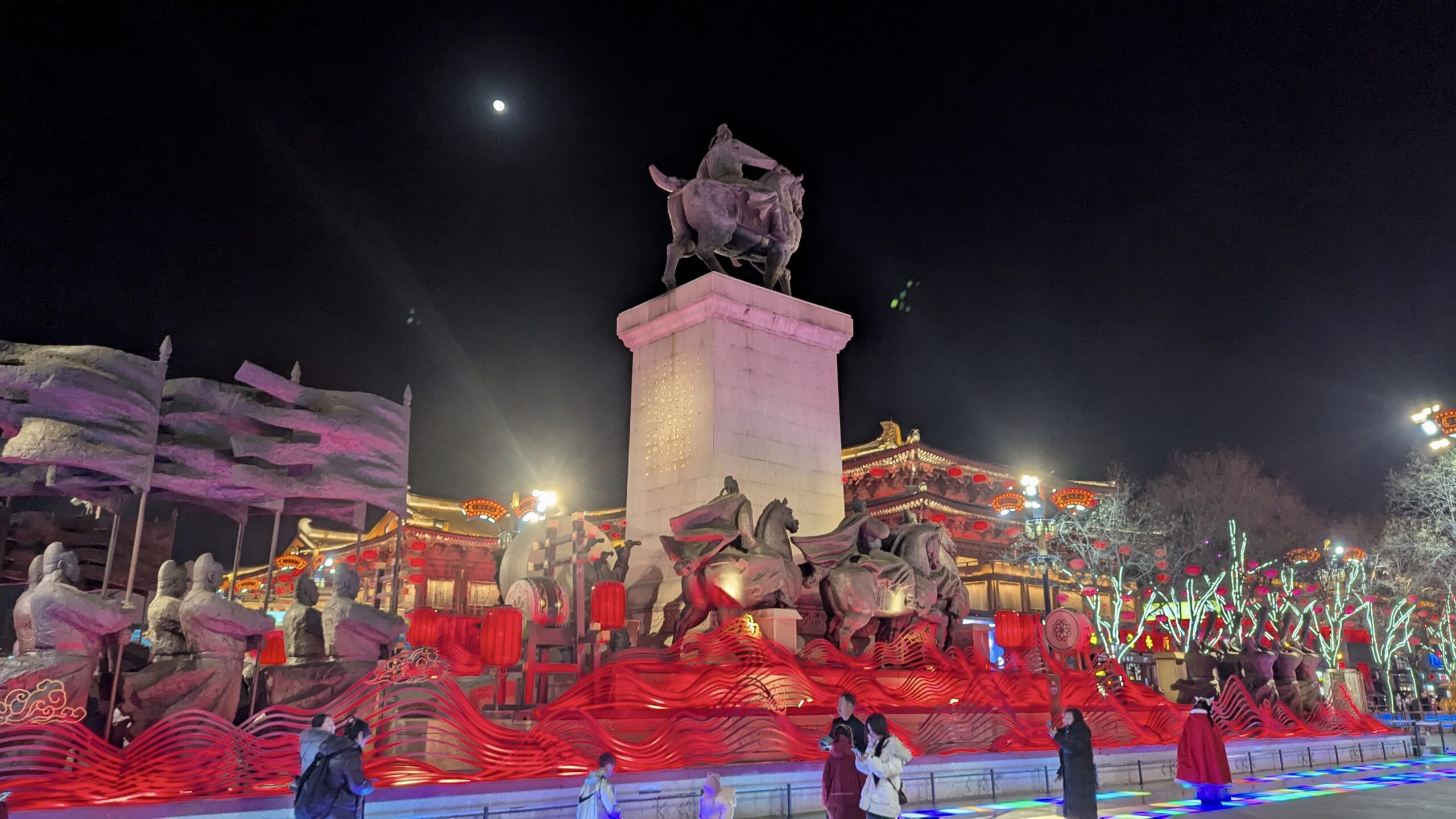 Die Seidenstraße erstreckte sich über mehrere Tausend Kilometer und verband China mit dem Römischen Reich. Sie war nicht nur eine Handelsroute für Seide, Gewürze, Edelsteine und andere wertvolle Güter, sondern auch ein kultureller Korridor. Religionen, Technologien und Ideen reisten mit den Karawanen – so gelangte beispielsweise der Buddhismus über diese Route nach China und beeinflusste Kunst und Gesellschaft nachhaltig. Hier in Xi’an nahm die Seidenstraße einst ihren Anfang, und noch heute zeugt eine kunstvoll gestaltete Straße davon. Entlang der gesamten Strecke stehen Figuren, die Händler aus verschiedenen Epochen und Regionen darstellen – von chinesischen Kaufleuten über zentralasiatische Reiter bis hin zu persischen, arabischen und europäischen Reisenden. Diese Darstellungen verdeutlichen die kulturelle Vielfalt und den internationalen Austausch, der die Seidenstraße so einzigartig machte.