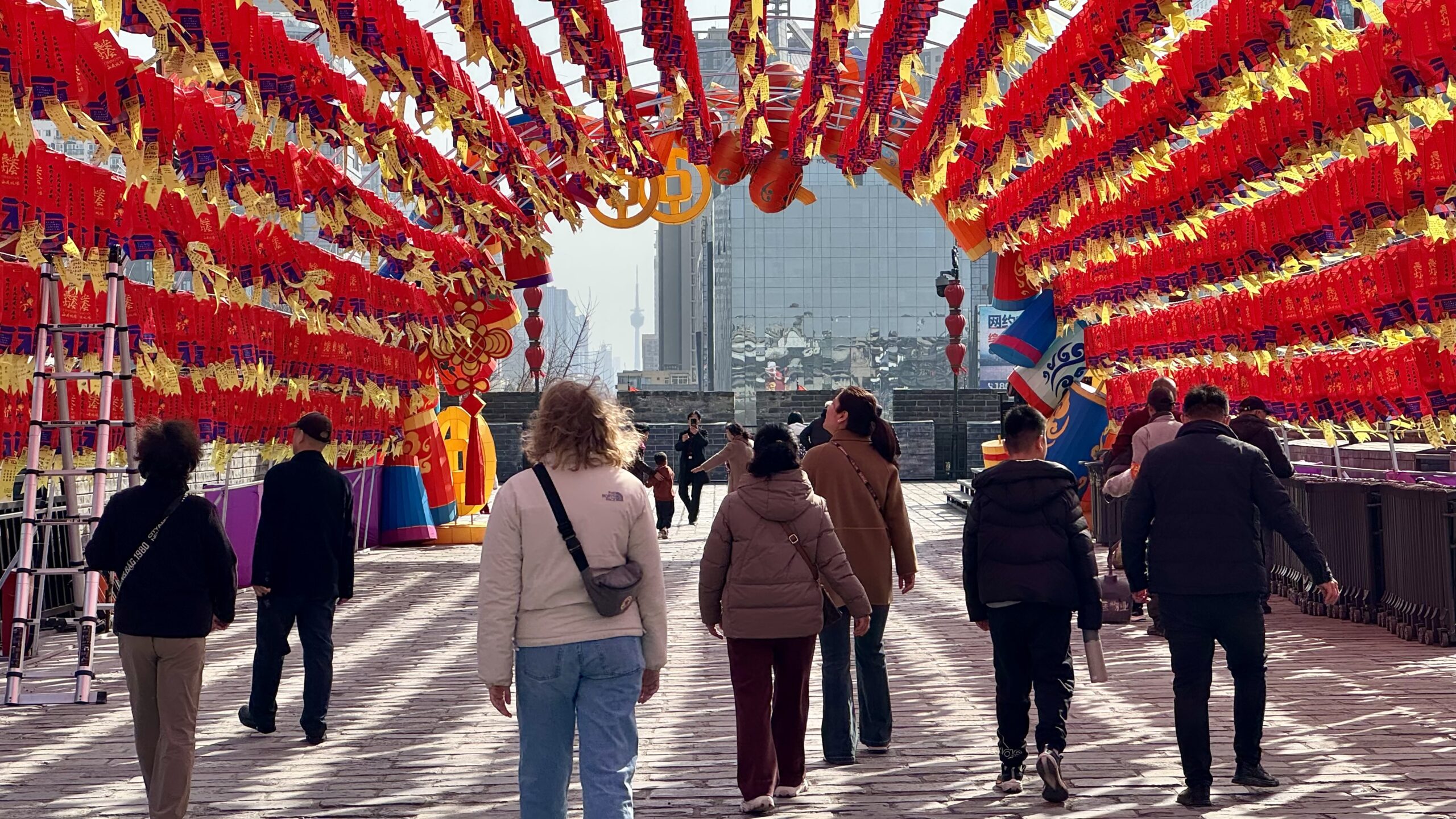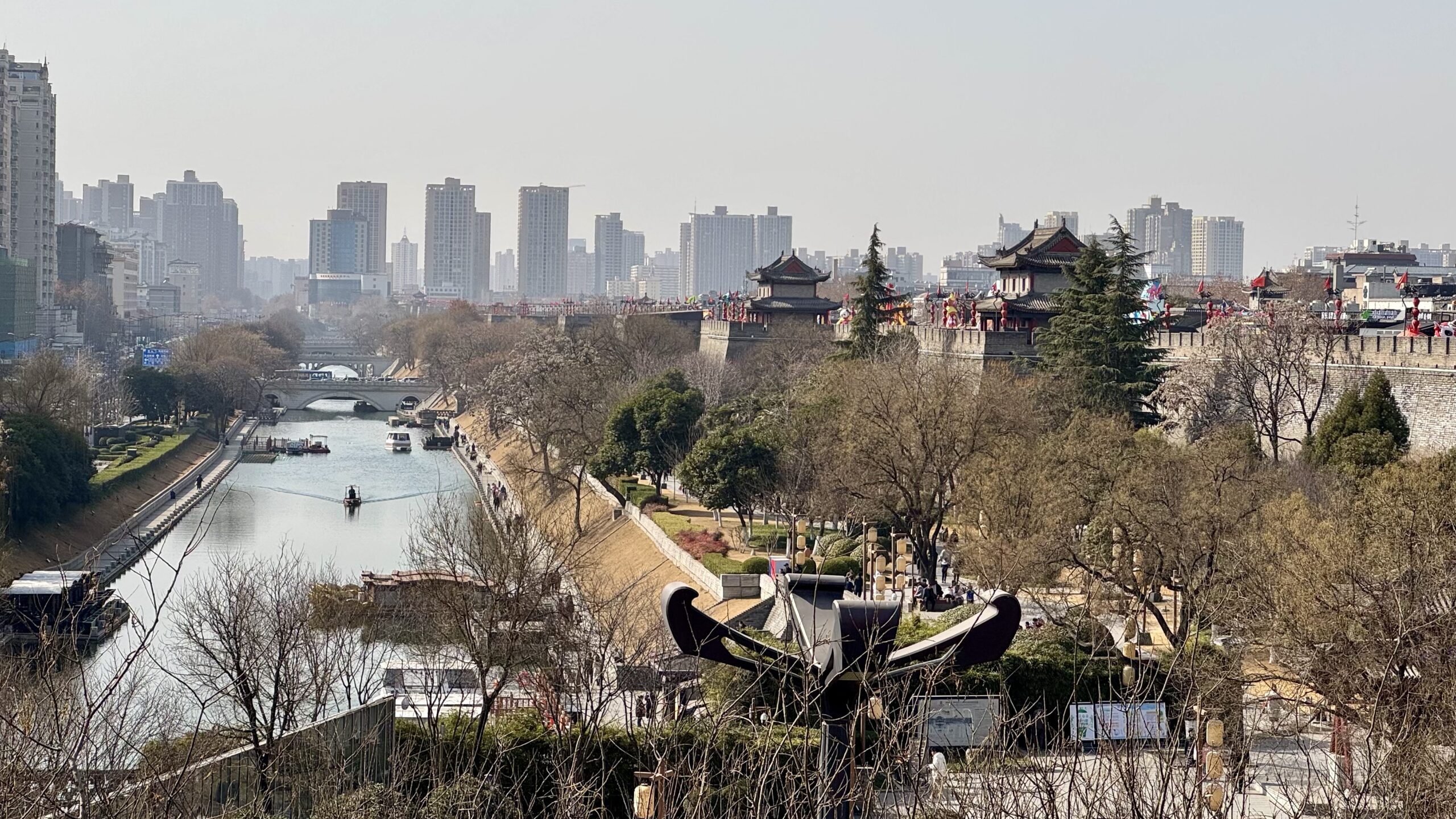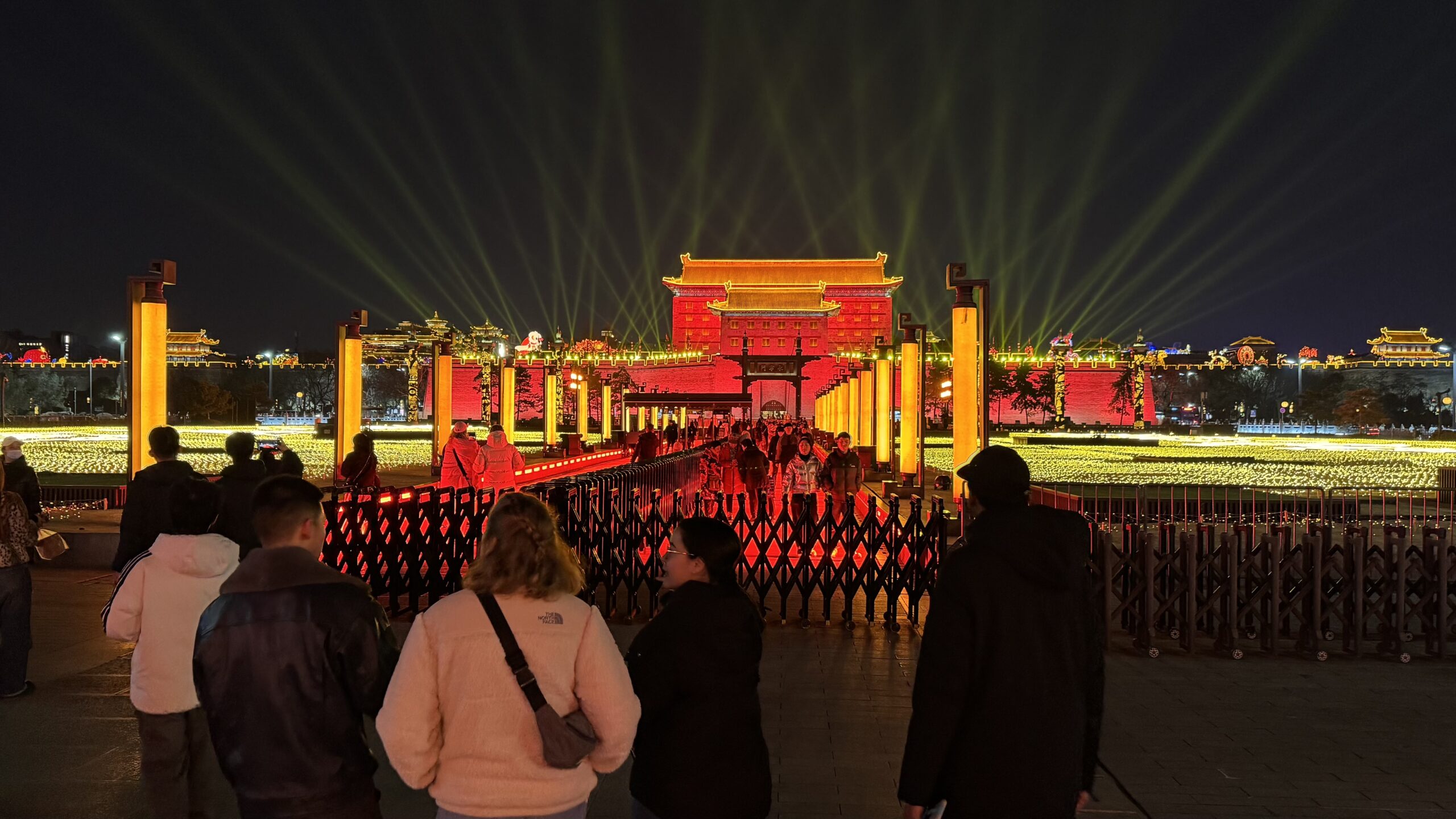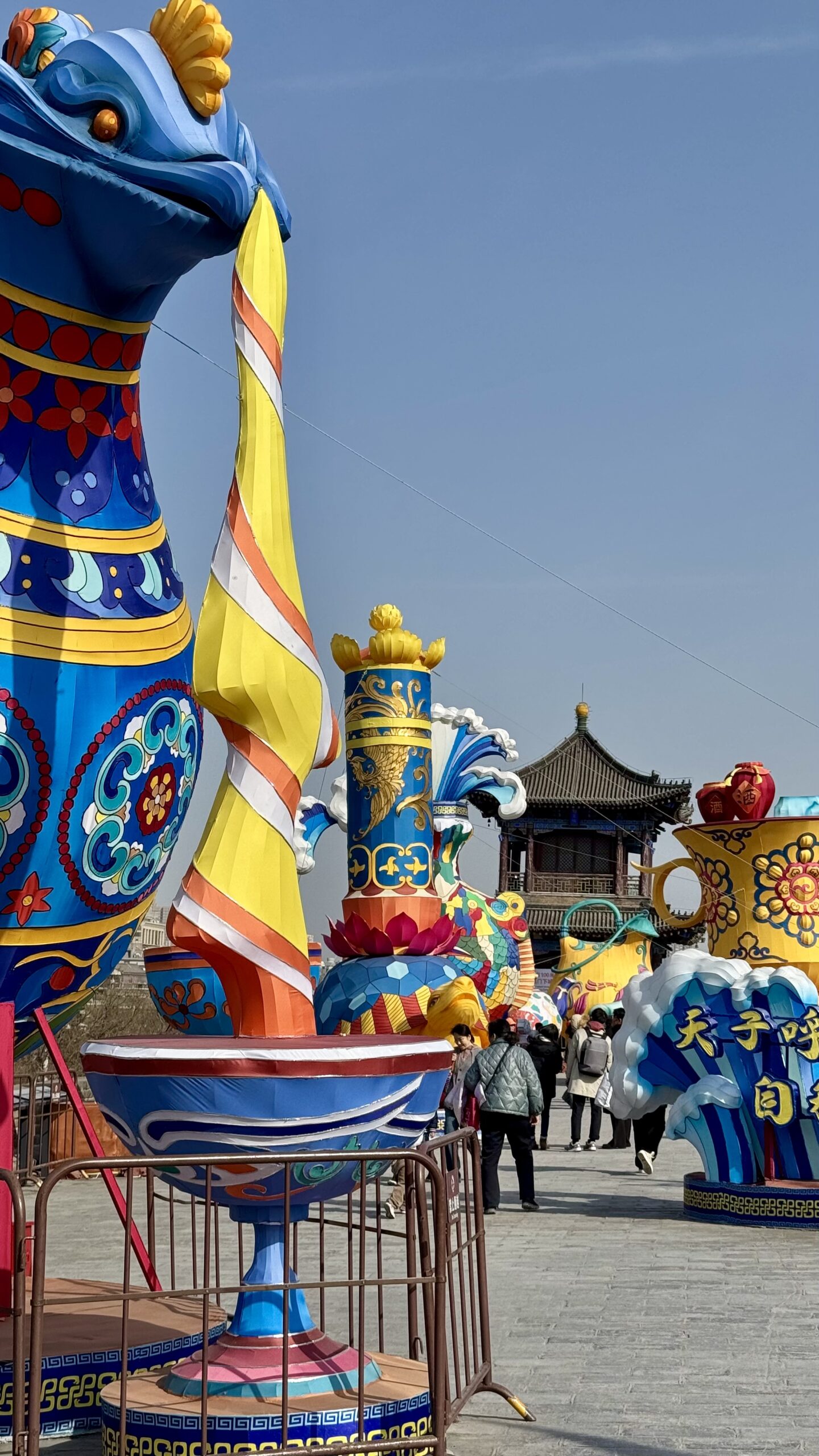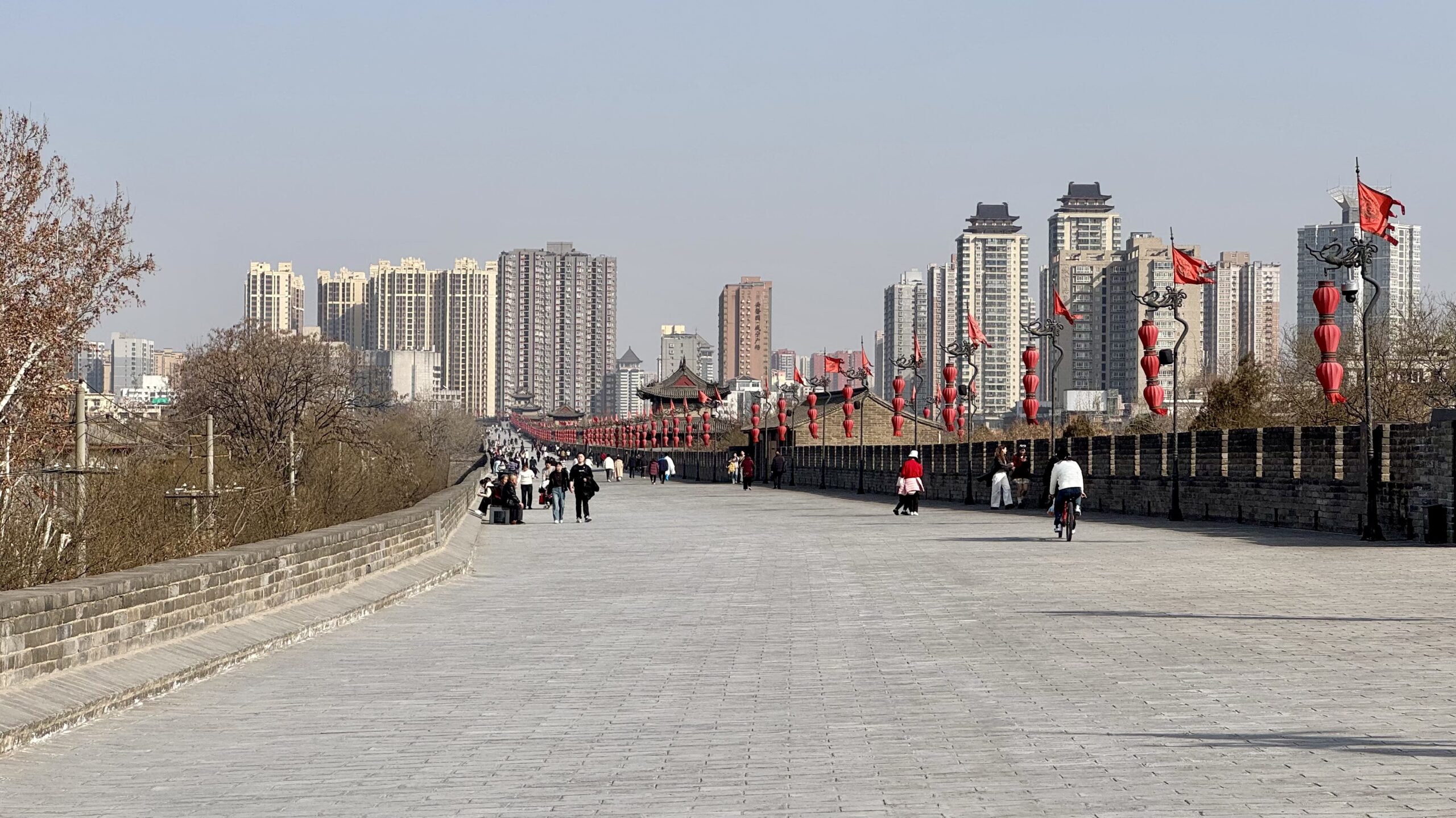 Unseren letzten Tag in Xi’an wollten wir entspannt angehen. Gegen Mittag machten wir uns zur Stadtmauer auf, zahlten überteuerten Eintritt (26 €), weil noch alle Aufbauten vom Laternenfest standen, und liefen ein gutes Stück entlang dieser endlos erscheinenden, schnurgeraden Mauer. Man kann hier oben auch Fahrräder leihen und die gesamte Mauer umrunden (ca. 13 km), aber da der Fahrradverleih fast genauso viel kostete wie unser Eintritt, entschieden wir uns für eine kürzere Strecke. Nach knapp 2 km, ein paar coolen Fotos mit den Laternen und einer Stunde Spaziergang verließen wir die Mauer wieder, um uns mit den anderen zu treffen.