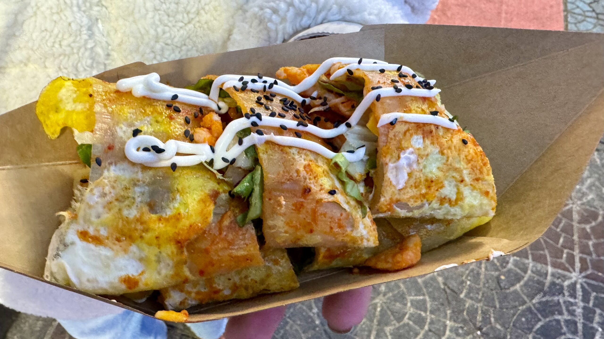 Er führte uns schnurstracks ins Muslimische Viertel, das nur so vor Leben pulsierte. Überall gab es kleine Läden und Stände, zu denen er uns führte und uns mehr als einmal einlud, indem er uns das Essen kaufte und hinhielt. Wir probierten uns durch so viele verschiedene Gerichte – das kann man sich kaum vorstellen.