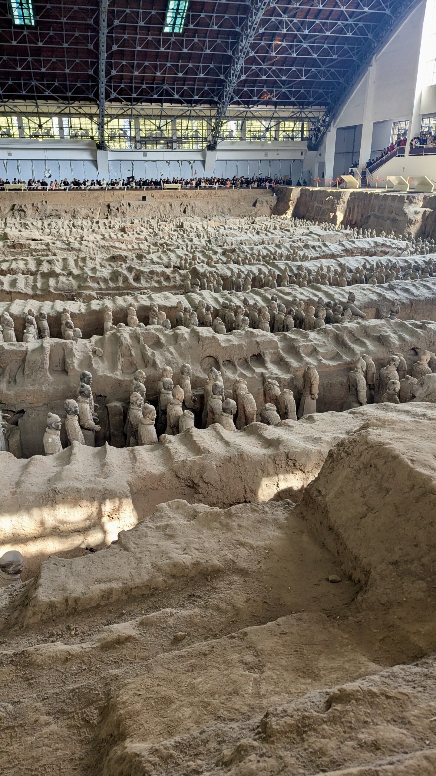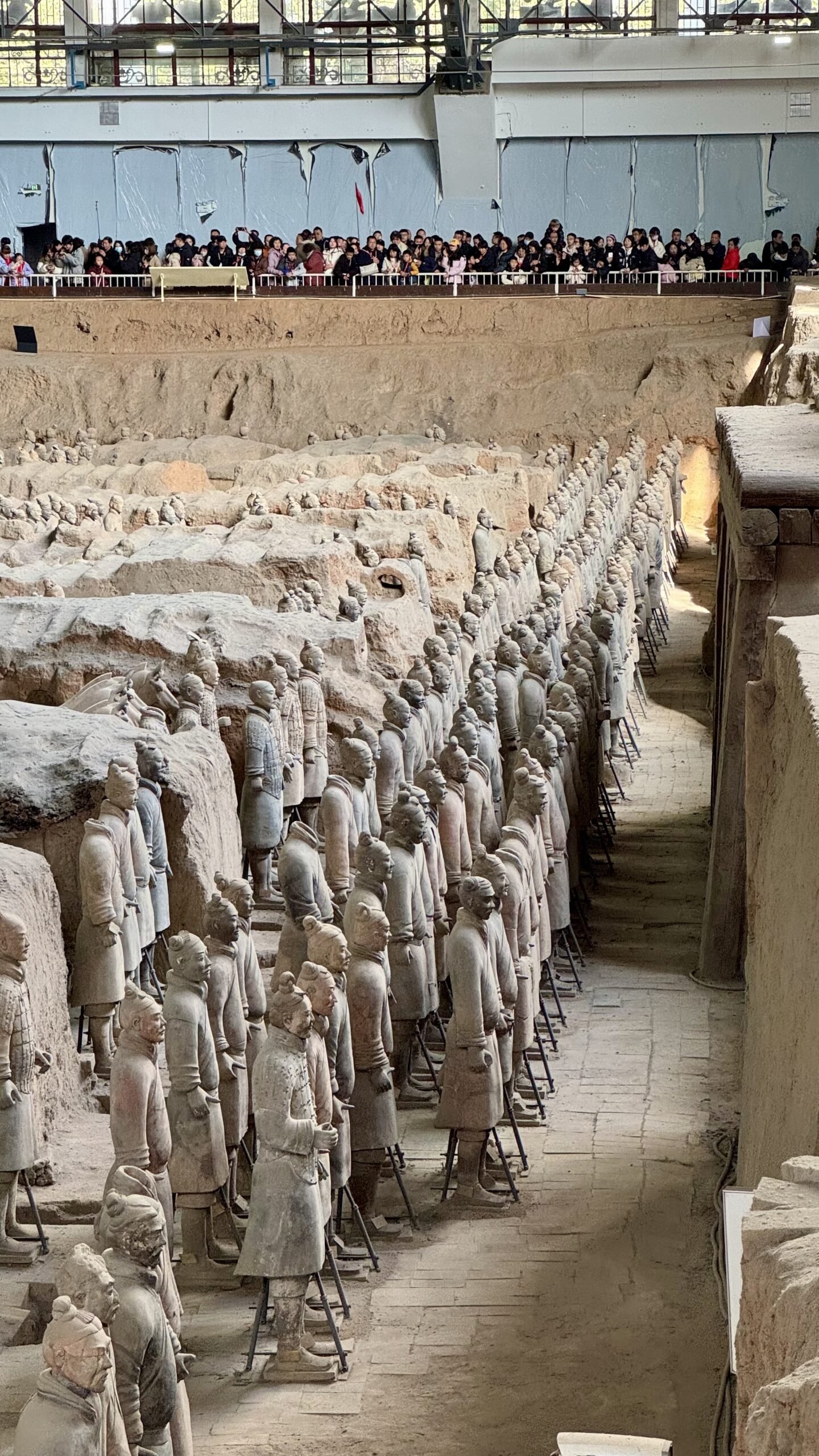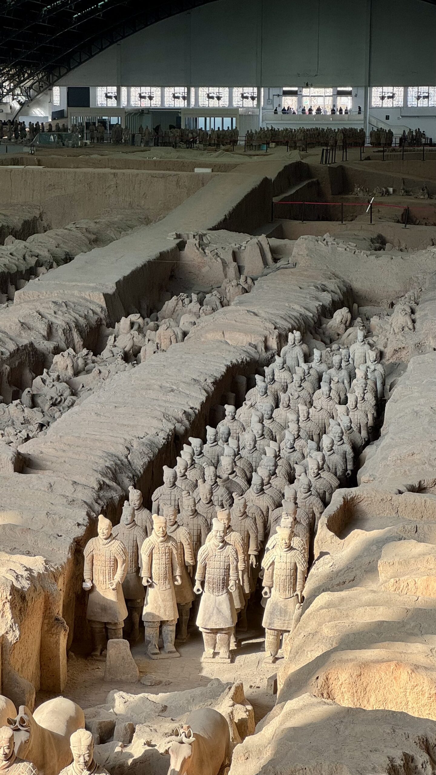 Es gibt insgesamt drei Hauptgruben, die sogenannten Pits. Pit 1 ist die bekannteste und größte – hier stehen Tausende von Soldaten in Kampfformation, genau so, wie sie vermutlich einst aufgestellt wurden. In Pit 2 wurden verschiedene Spezialeinheiten wie Bogenschützen, Kavallerie und Streitwagen entdeckt, während Pit 3 vermutlich das Hauptquartier war, da dort hochrangige Offiziere standen.