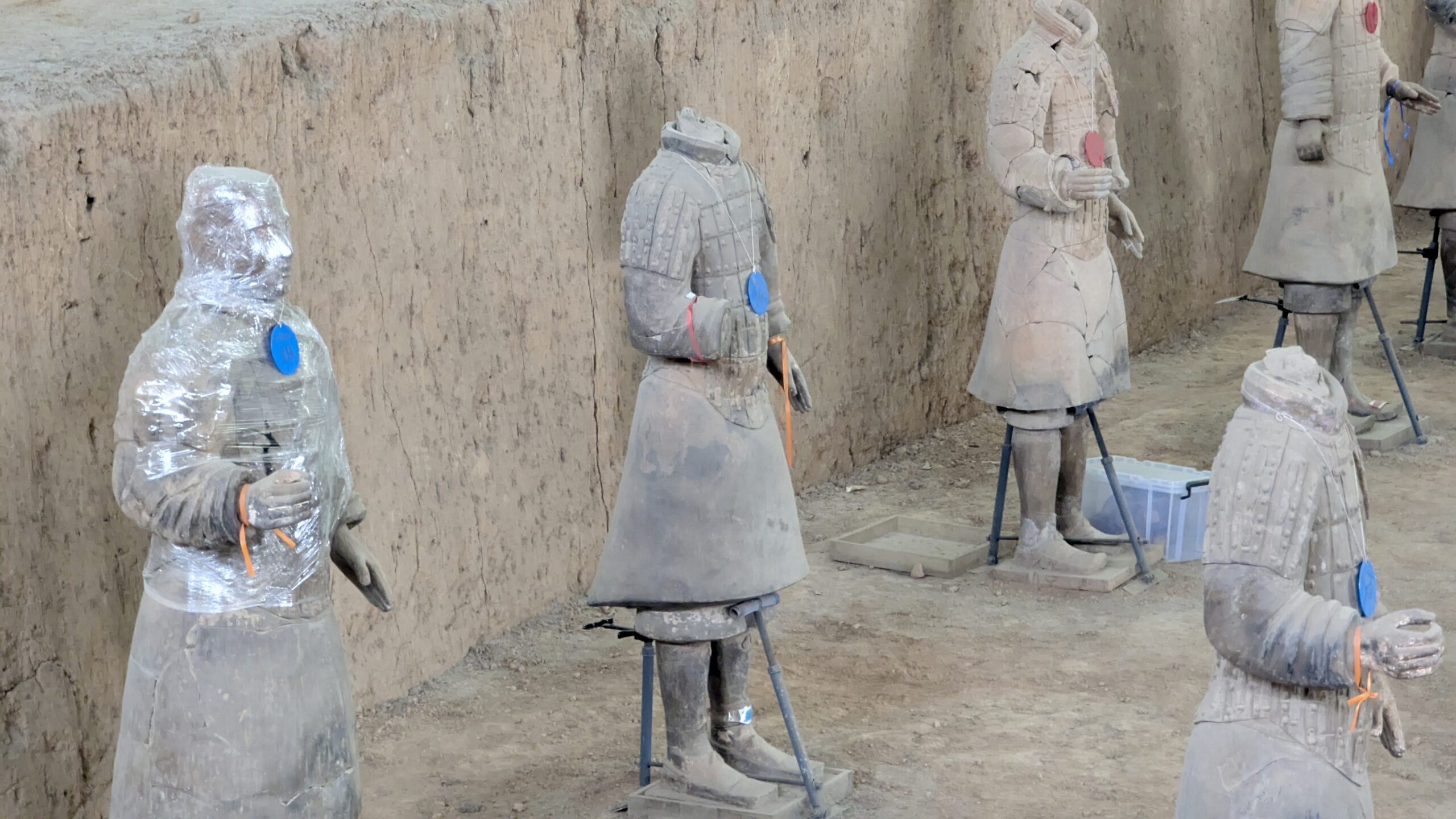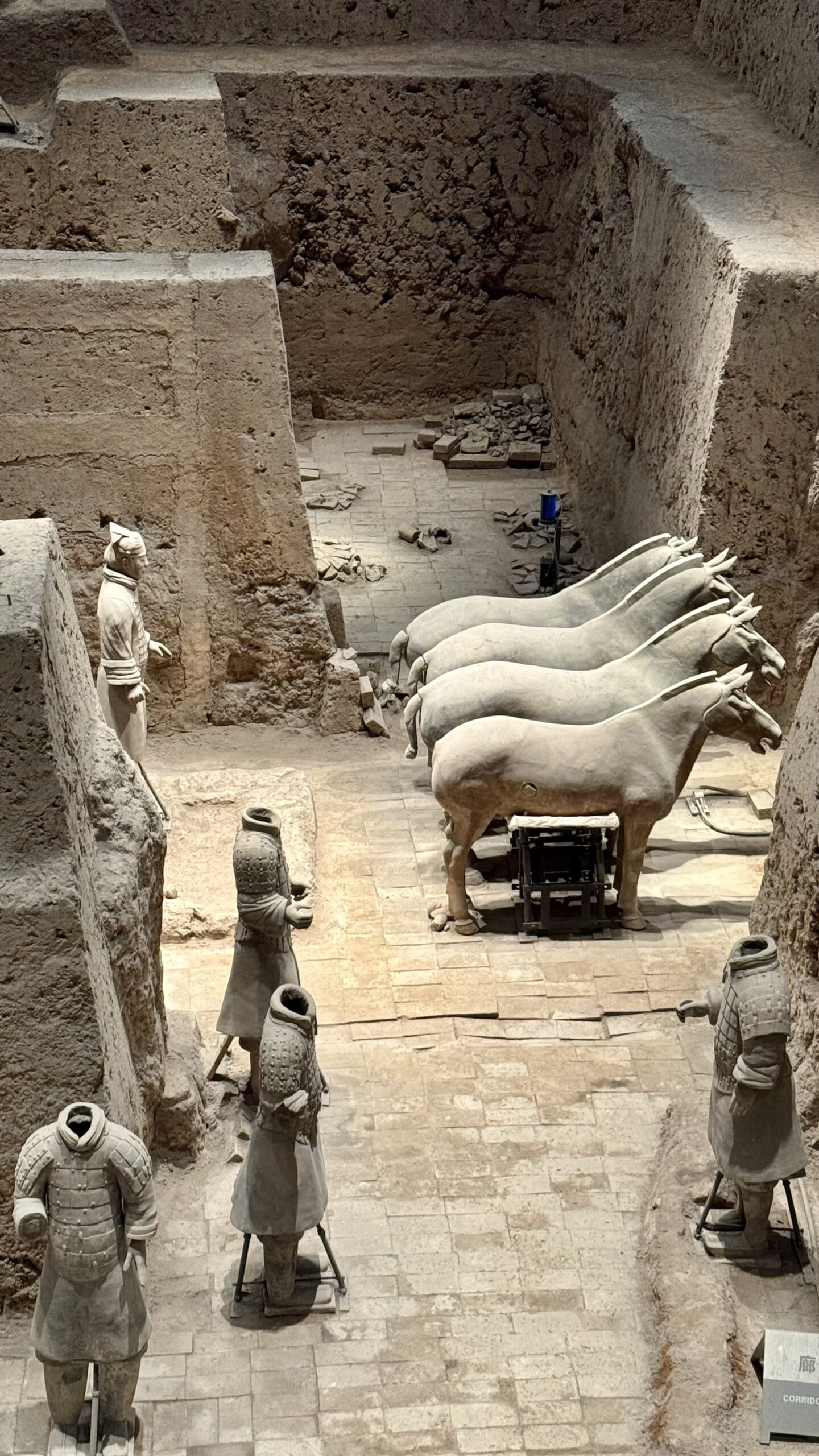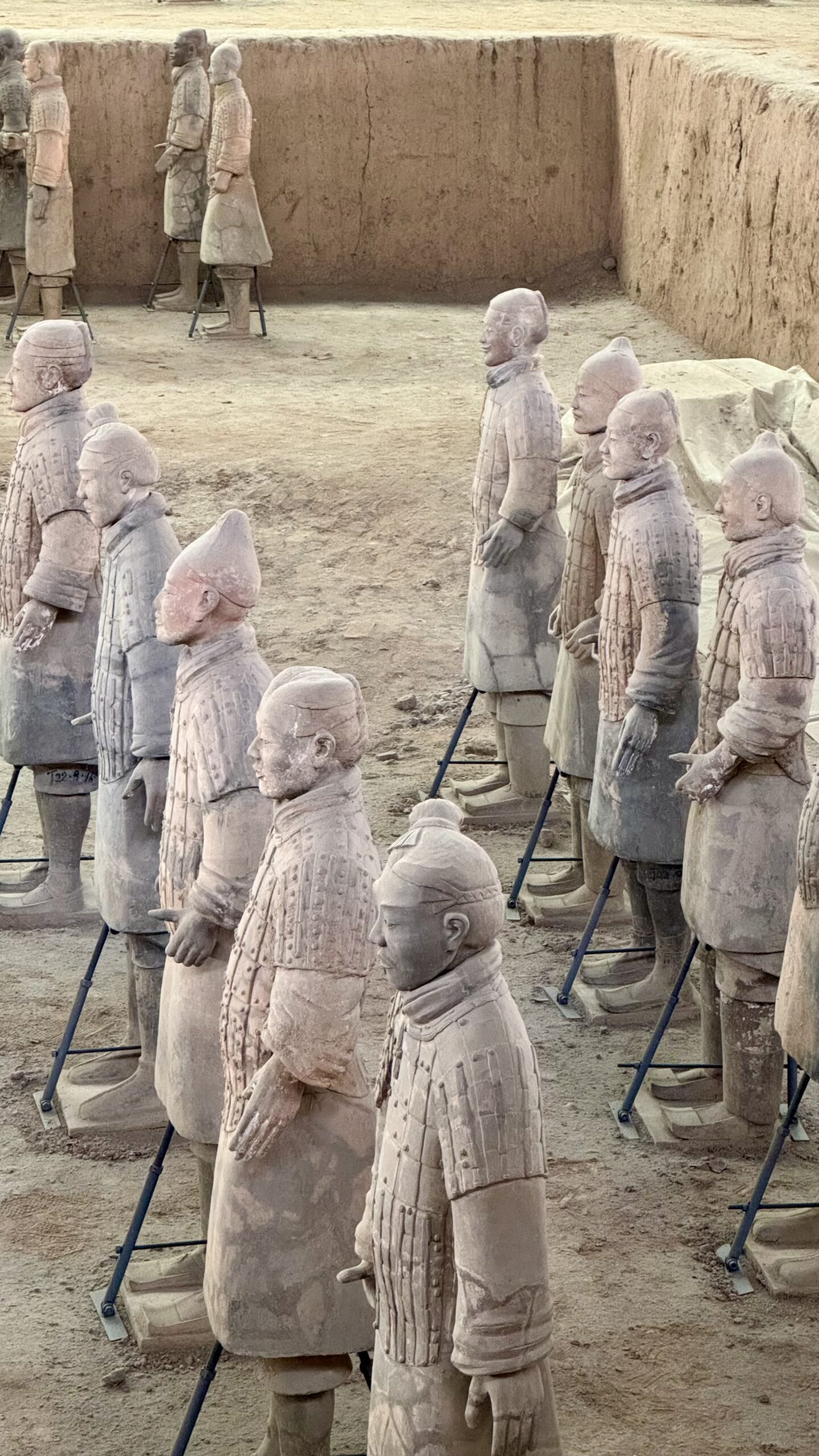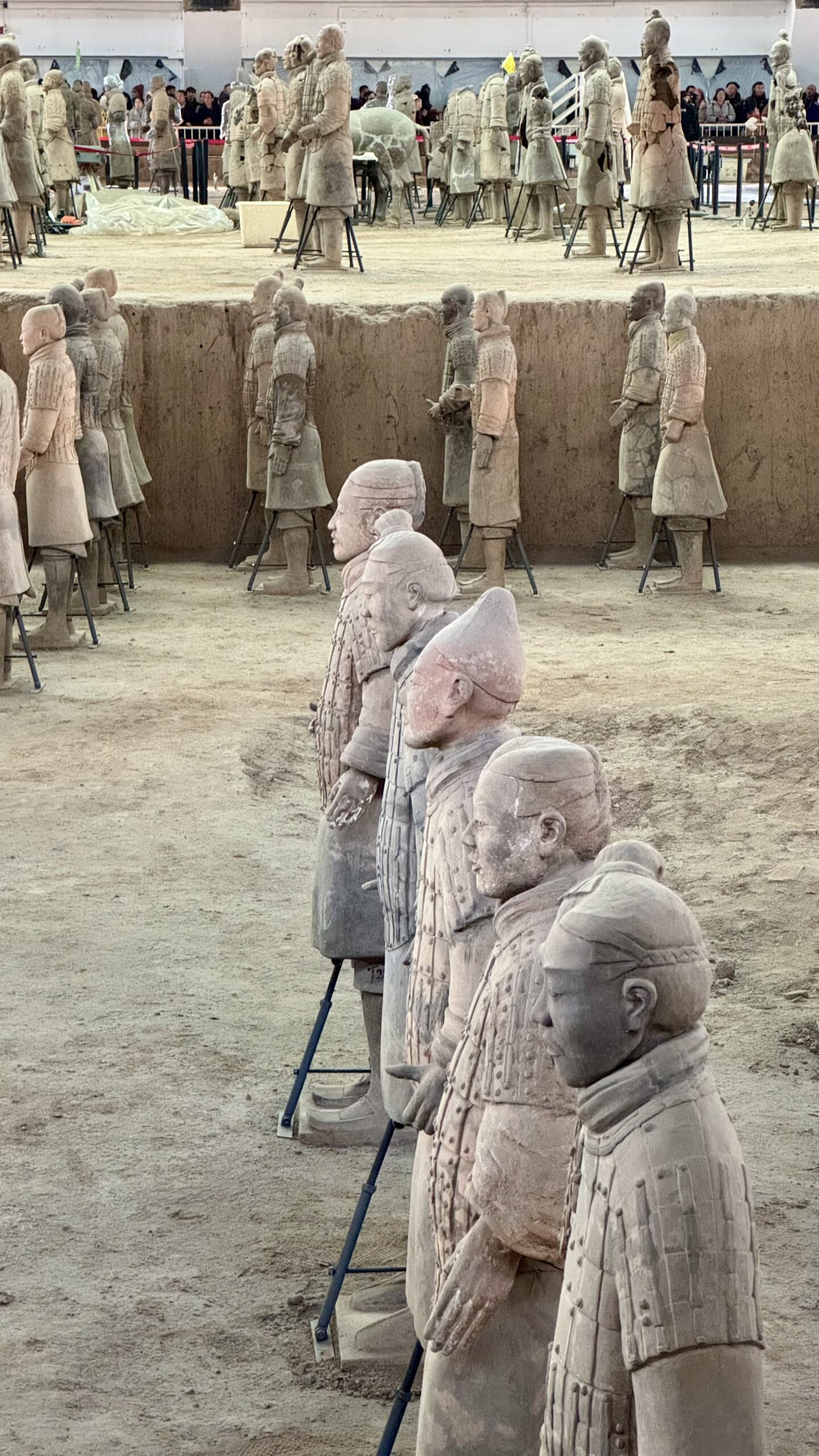 Es gibt insgesamt drei Hauptgruben, die sogenannten Pits. Pit 1 ist die bekannteste und größte – hier stehen Tausende von Soldaten in Kampfformation, genau so, wie sie vermutlich einst aufgestellt wurden. In Pit 2 wurden verschiedene Spezialeinheiten wie Bogenschützen, Kavallerie und Streitwagen entdeckt, während Pit 3 vermutlich das Hauptquartier war, da dort hochrangige Offiziere standen.