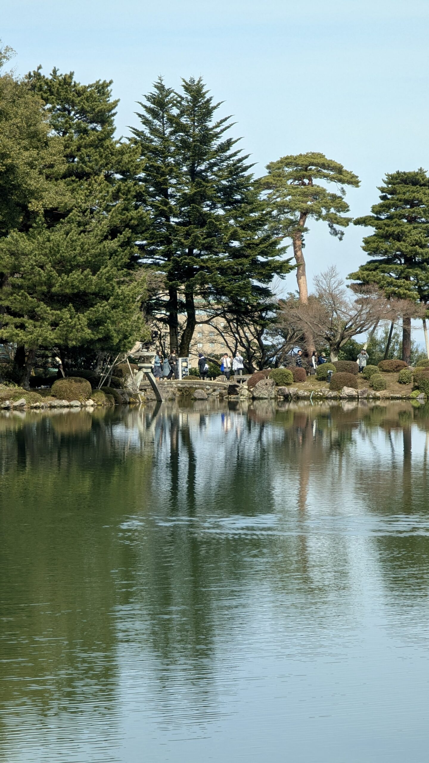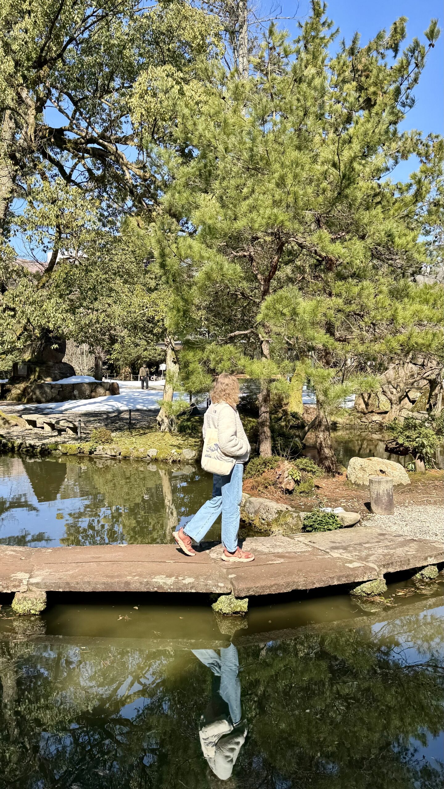 Von hier aus ging es weiter zu den berühmten Kenroku-en-Gärten, die als eine der schönsten Gartenanlagen Japans gelten. Für eine kleine Gebühr kann man sie besichtigen. Wenn alles blüht, ist es bestimmt noch atemberaubender, aber selbst jetzt im Winter sah es wunderschön aus.