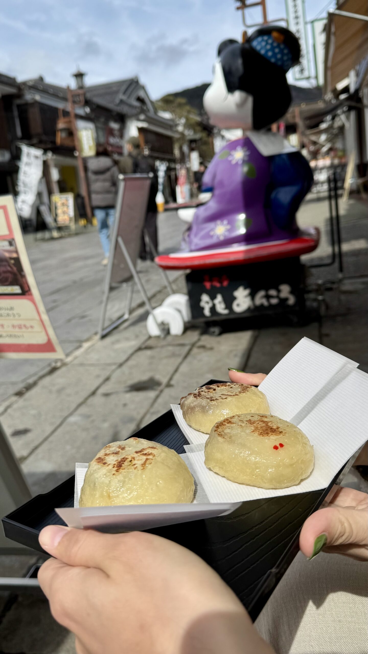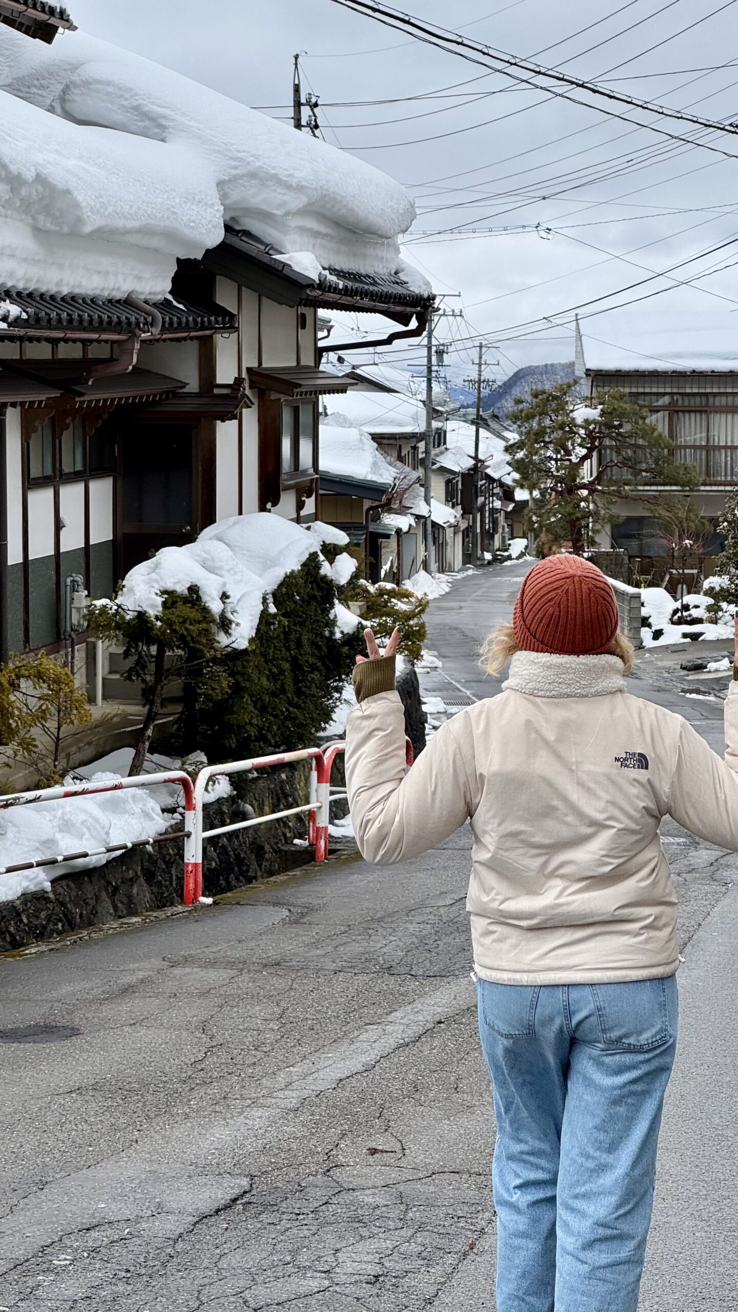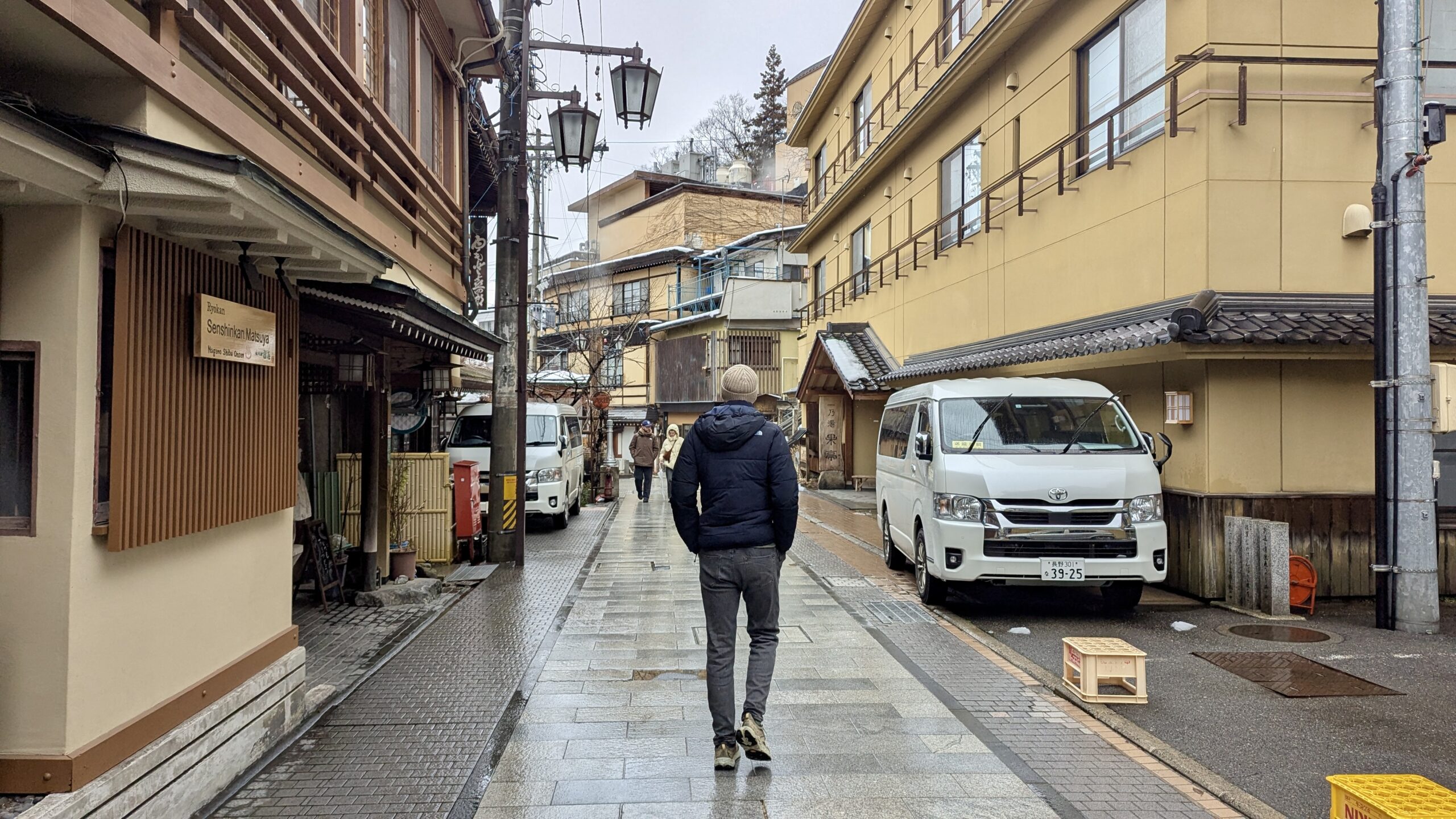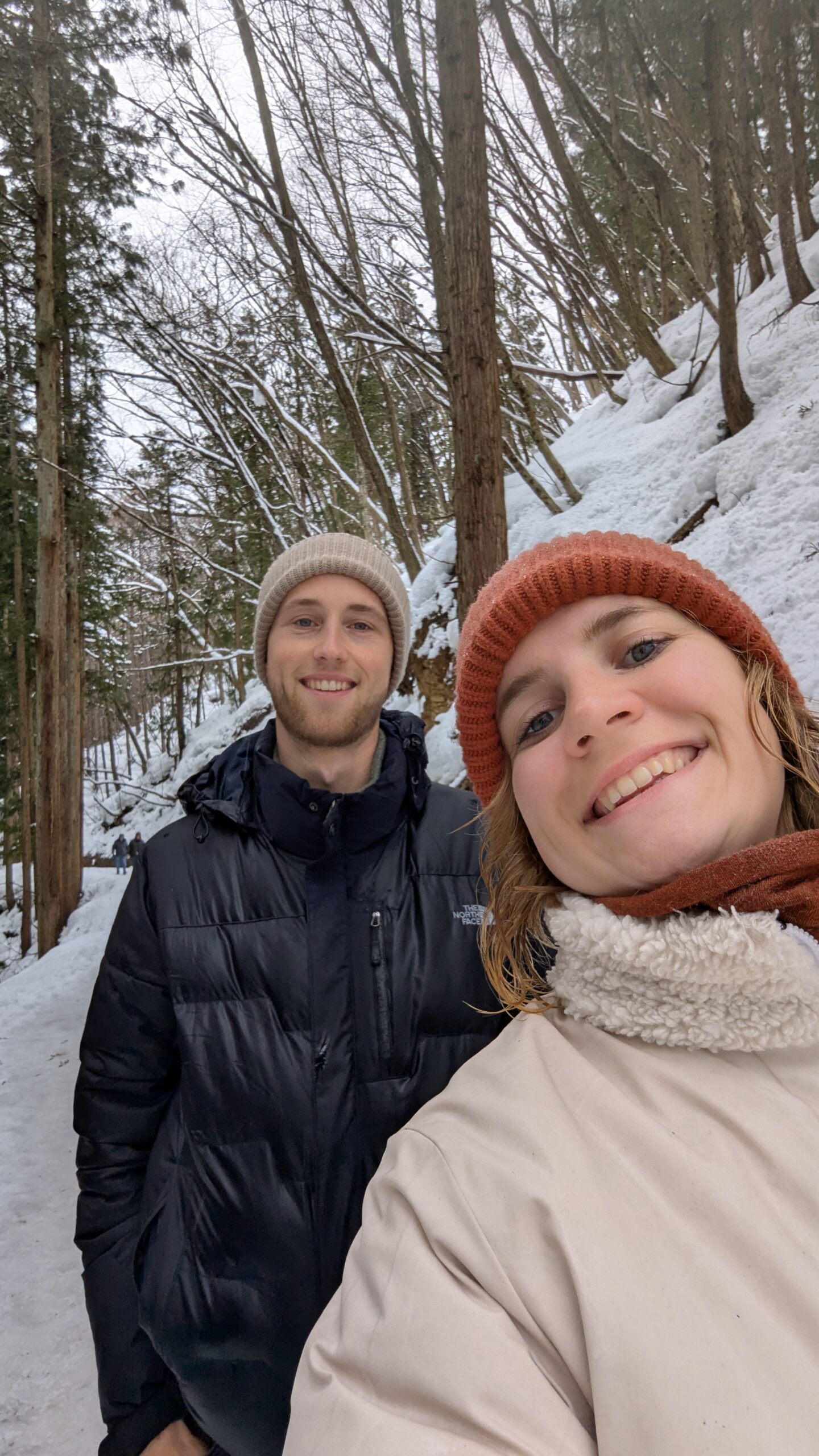 Es war wirklich sehr schön! Wir durchquerten zwei alte Dörfer, überall waren Onsens, in die man hätte gehen können, um sich aufzuwärmen. Aber wir wollten nur zum Zug. Und ja, der Zug hatte eine sehr pünktliche Abfahrtszeit, und vermutlich trödelten wir beim Durchqueren der Dörfer oder beim Stempel sammeln an den kleinen Tempeln ein bisschen zu sehr. Am Ende rannten wir, weil der Zug nur einmal pro Stunde fuhr.