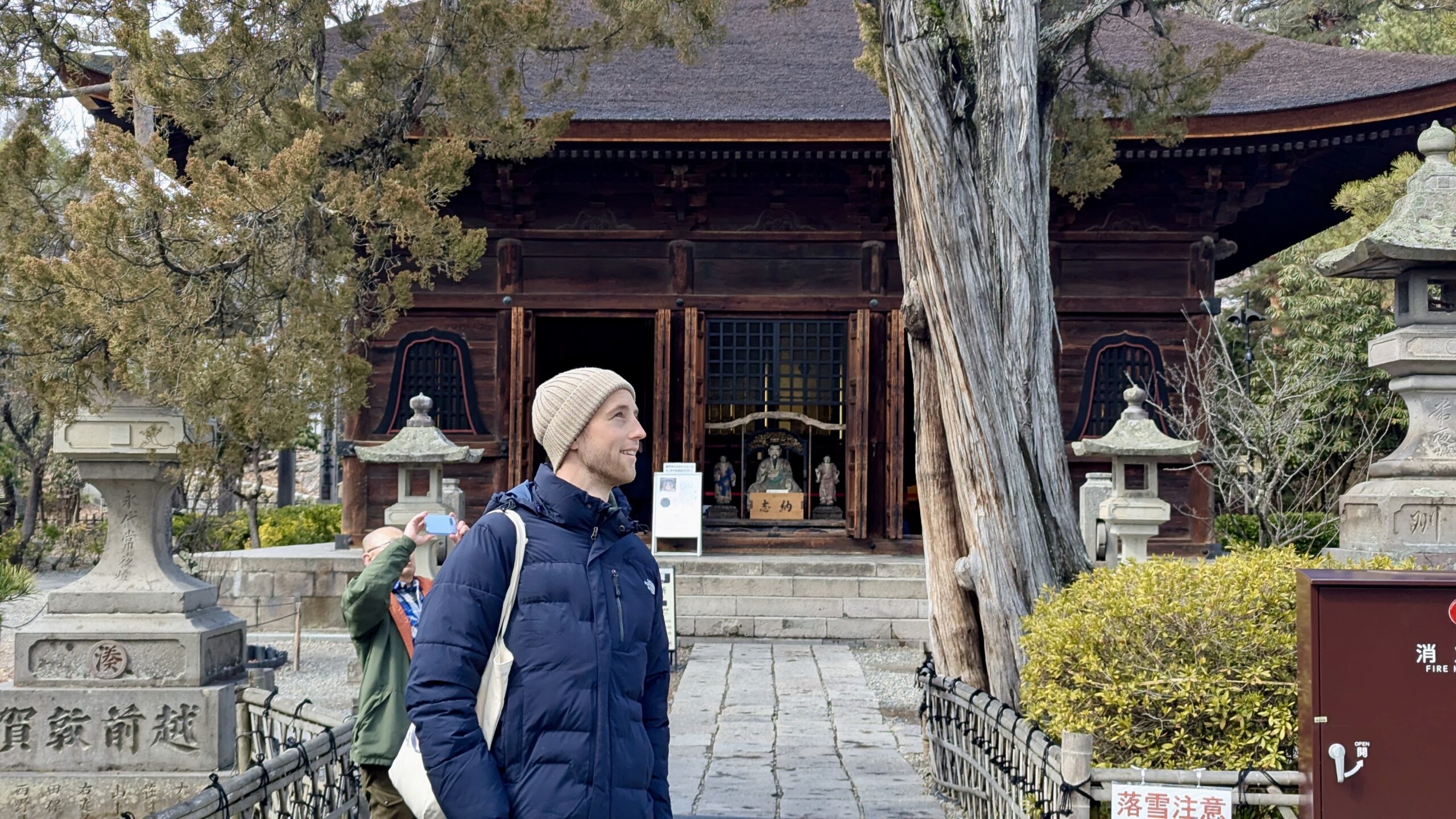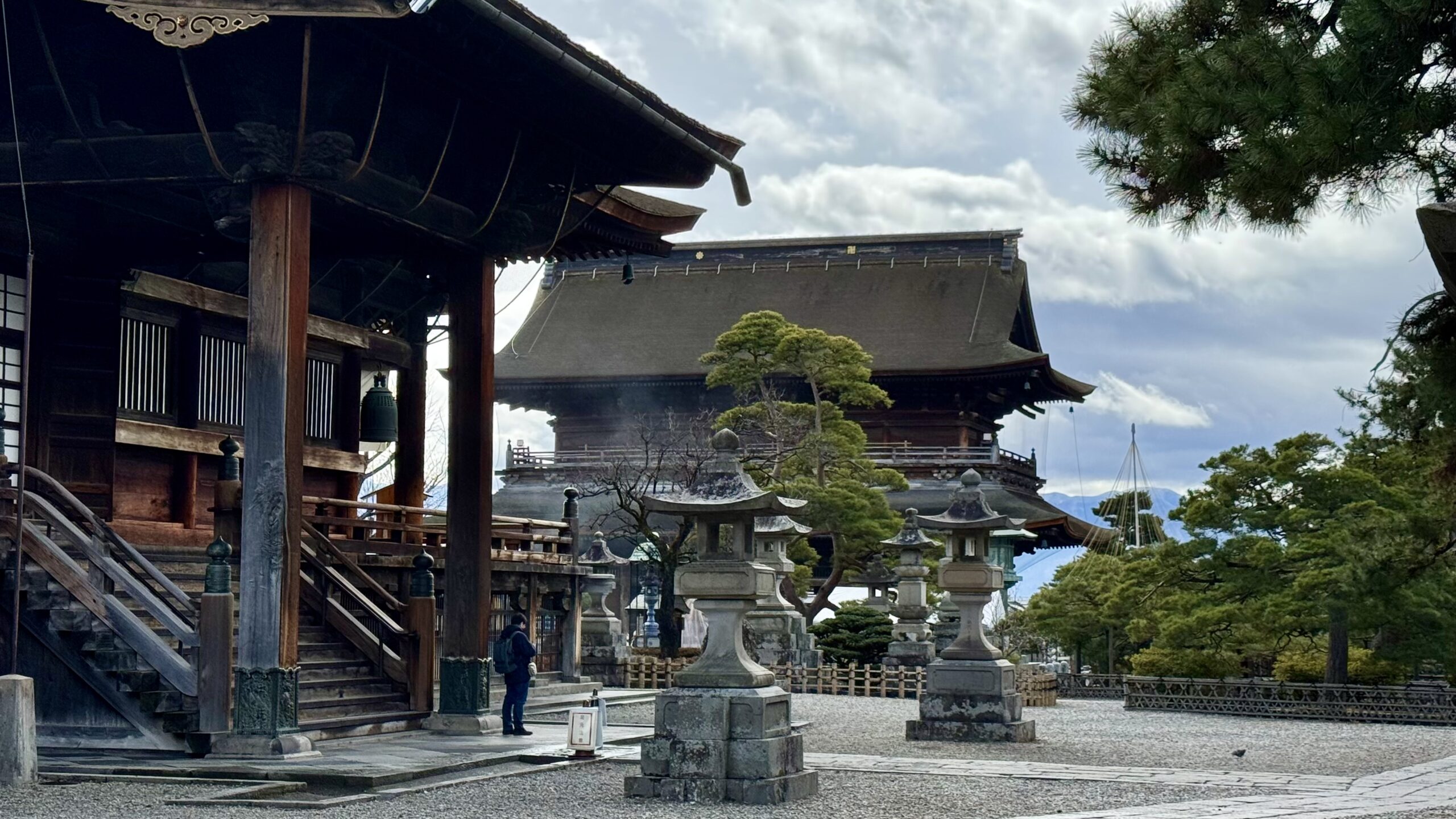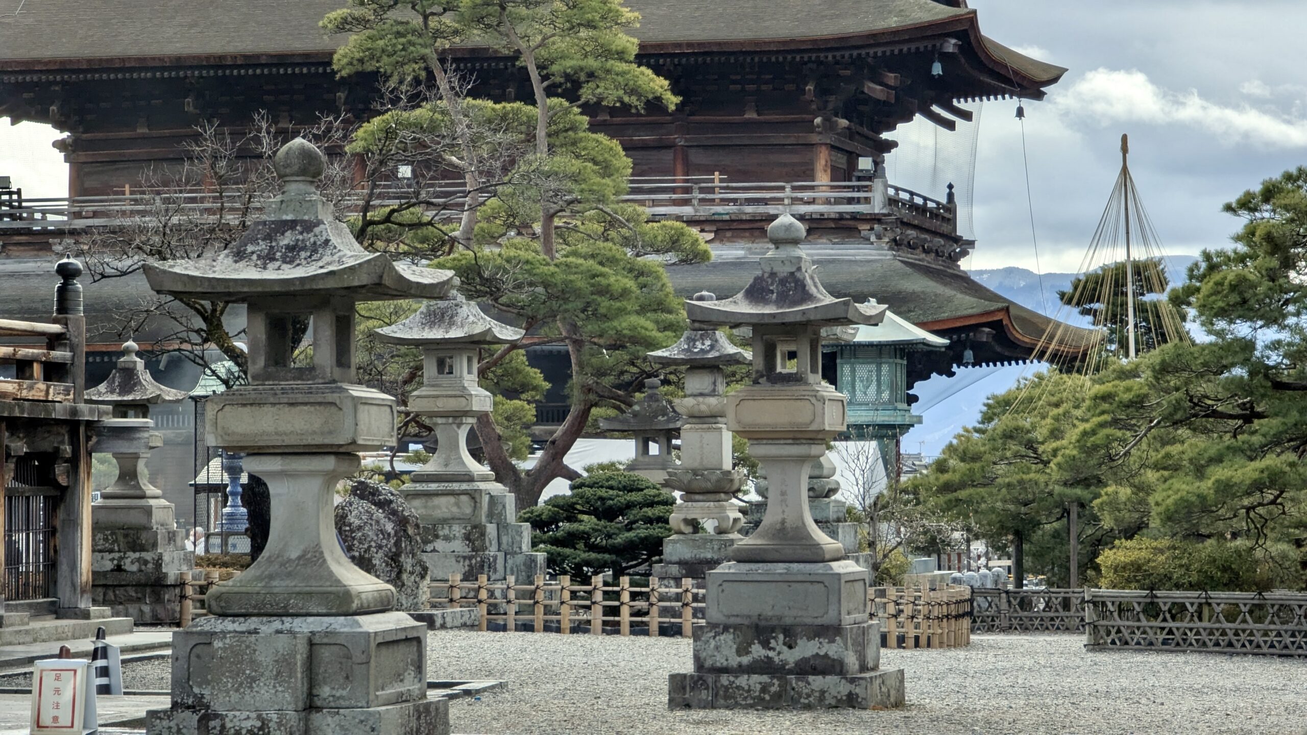 Unseren letzten Tag verbrachten wir in Nagano selbst, da es am Vortag geregnet hatte, aber heute blieb der Regen aus. Also besuchten wir den örtlichen Tempel und erkundeten die Umgebung. Auch hier sammelte ich wieder ein paar Stempel, wir fanden leckere kleine Snacks, die wir genossen, und besuchten danach ein Einkaufszentrum, als sich der Himmel wieder zuzog und der Regen einsetzte.